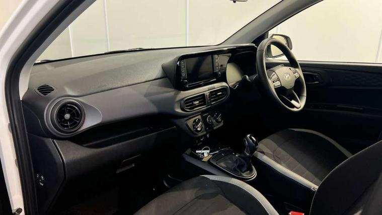 8" Touchscreen satellite navigation including mapcare and LIVE services, Apple car play/Android Auto, Bluelink mobile remote connectivity, Bluetooth connectivity with voice recognition, Cruise control, Driver attention alert system, eCall emergency call system, Forward Collision-Avoidance Assist (FCA) - Pedestrian/Cyclist, Full-width 4.2" LCD instrument cluster, Intelligent speed limit assist, Lane departure warning system with lane keep assist - LKAS, Lane follow assist, PAS, Rear parking sensors, Rear view camera with guidelines, Roadside assistance, Start/Stop function, Tailgate, Trip computer, 2 front/2 rear speakers, Front and rear USB-C ports, Front USB connection, Leading vehicle alert (LVA), Steering wheel audio, phone and cruise controls, 1 speed non intermittent rear windscreen wiper, Black finish on B pillars, Body colour door handles, Body coloured bumpers, Body coloured door mirrors, Electric front windows, Electric rear windows, Electrically adjustable and heated door mirrors, Flat metal emblem, Front grille in matte black, Front intermittent wipers, Halogen headlights, Headlights inner with Black Blade design, Heated rear window, High beam assist, Indicator light on door mirrors, LED daytime running lights, Rear roof spoiler with integrated LED brake light, Rear side wing doors, 12v power outlet - front, 3 seat bench in 2nd row, 60/40 split folding flat to floor rear seats, Auto light control, Bottle holders in front/rear doors + front centre console, Cabin and luggage compartment interior lighting, Cloth upholstery, Driver + passenger vanity mirrors, Driver's seat height adjustment, Driver/passenger sunvisors with ticket holders, Floor mats, Front door pockets, Front Head Restraints - Vertical and Horizontal Adjustment, Glove compartment, Height adjustable steering column, Isofix child seat preparation, Leather wrapped steering wheel and gear knob, Manual air conditioning, Rear door pockets, Single front passenger seat, Vertical adjustment rear head restraints, 3x3 point rear seatbelts, Airbags - front, front side and curtain airbags, Anti-lock brake system (ABS), Autonomous emergency braking (AEB) with forward collision warning system, Brake assist function, Childproof rear door locks, Electronic stability control, Front and rear seatbelt reminder, Front seatbelt pretensioners, Hill start assist control (HAC), Passenger airbag deactivate switch, Traction control, Tyre pressure monitoring system, Immobiliser, Perimeter alarm, Rear occupant alert, Remote central locking, Second remote key, Speed sensitive auto door locking, 15" Alloy wheels, Temporary mobility kit (TMK),