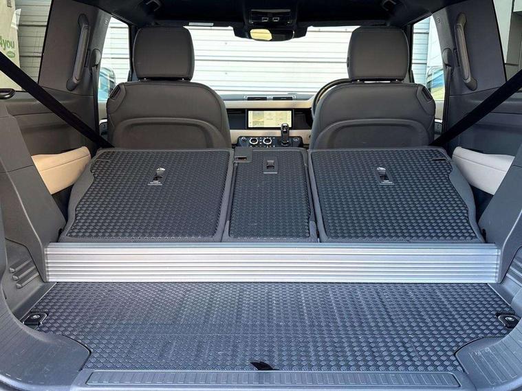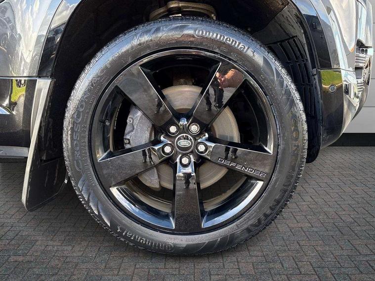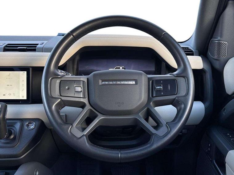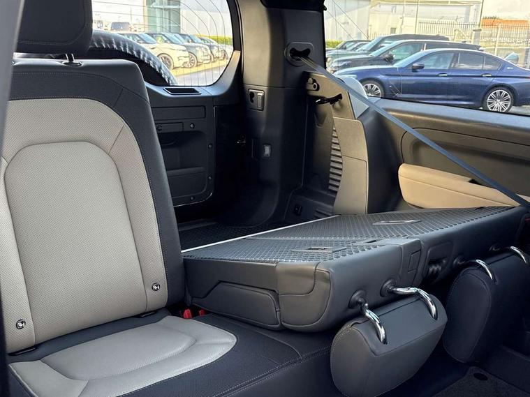 360 degree parking aid, 3D Surround Camera with 360 View, 180 Rear View, Front Traffic Detection, Forward Vehicle Guidance, Tow Hitch Assist and clear sight Ground View, Android Auto, Apple CarPlay, Assisted tailgate with soft close, Blind spot assist, Bluetooth system, Brake pad wear indicator, Clear exit monitor, Connected navigation pro, Driver condition monitor, Electric power assisted steering (EPAS), Lane keep assist, Push button start, Rear traffic monitor, Traffic sign recognition with adaptive speed limiter, Trip computer, Wade Sensing, 8 speed automatic transmission, All wheel drive system, Twin speed transfer box, DAB Radio (Digital Audio Broadcasting), Meridian 400w sound audio system with 11 speakers and subwoofer, Pivi pro connected, Automatic headlight levelling, Automatic headlights, Centre high mounted stop light, Electric heated/power fold door mirrors with approach lights and auto dimming driver side, Electric windows with one touch open/close and anti-trap, Follow me home lighting, Front fog lights, Heated rear window with timer, Heated windscreen, LED tail lights, Panoramic rear side glass, Privacy glass, Puddle lights, Rain sensing windscreen wipers, Rear fog lights, Rear wiper, Side hinged tailgate, Trailer stability assist, X-Dynamic badge, 12V power socket in loadspace, 3 seat bench in 2nd row, Alpine lights, Durable rubber cabin flooring, Durable rubber loadspace flooring, Footwell lights, Loadspace cover, Loadspace Hook, Multifunction steering wheel, Overhead stowage for sunglasses, Premium cabin lighting, Rear headrests, Rear ISOFIX, Rear reading lights, Single front passenger seat, Standard seat configuration, Storage glovebox, Sunvisors with illuminated vanity mirrors, Online pack with data plan - Defender, 5 x 3 point seatbelts, ABS, Brake hold function, Cornering brake control (CBC), Customer configurable autolock, DSC - Dynamic Stability Control, EBD - Electronic brakeforce distribution, Electric parking brake (EPB), Emergency brake assist, Emergency braking, ESP + traction control, Front airbags with passenger seat occupant detector, HDC - Hill descent control, Hill launch assist, Low traction launch, Remote for (e-Call, Optimised assistance call, InControl app, Climate, beep and flash and door), RSC - Roll stability control, Seat belt reminder, TPMS (Tyre pressure monitoring system), Alarm, Immobiliser, Intrusion sensor, Keyless entry, Locking wheel nuts,
