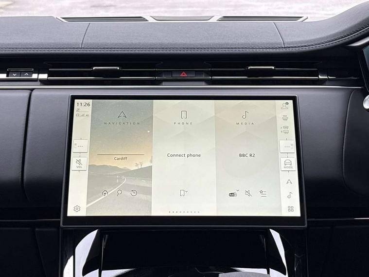 13.1" Touchscreen, 3D 360 degree surround camera with wade sensing, Adaptive cruise control with steering assist, Android Auto, Apple car play, Blind spot assist, Bluetooth connectivity streaming, Driver monitoring and response, Eco mode, Front and rear parking aid, Interactive Driver display instrument cluster, Lane departure warning system, Lane keep assist, Push button start, Rear collision monitor, Rear traffic monitor, Remote, Traffic sign recognition with adaptive speed limiter, Trip computer, Wireless device charging, 8 speed automatic transmission, Adaptive dynamics, All wheel drive system, Automatic access height, Terrain Response 2, DAB Radio (Digital Audio Broadcasting), Incontrol protect - SOS emergency call with automatic collision detection, optimised assistance call and Incontrol remote app essential, Pivi pro connected, USB/aux input socket, Adaptive brake lights, Automatic headlight levelling, Automatic headlights, Centre high mounted stop light, Electric heated/power fold memory door mirrors with approach lights and auto dimming driver side, Electric windows with one touch open/close and anti trap, Engine cover, Flush deployable exterior door handles, Follow me home lighting, Front and rear recovery eyes, Headlight power wash, Heated rear window, Heated washer jets, Heated windscreen, Illuminated aluminium treadplates with Range Rover script, LED tail lights, Metal load space scuff plates, No badges, Rain sensing windscreen wipers, Rear animated directional indicators, Rear fog lights, Rear side wing doors, Rear wash/wipe, Remote window closing, Side repeater indicators in mirror, Trailer stability assist, Winter wiper park position, 3 seat bench in 2nd row, 60:40 seats with power recline and loadthrough, Air quality sensor, Automatic air recirculation system, Bright metal foot pedals, Centre console with armrest, Customer configurable single point entry, Driver's footrest, Easy boot loading, Ebony console door armrests and seatbelts, Electric adjustable steering column, Front and rear cupholders, Front door storage space, Front head restraints, Front map lights, Front seat back map pockets, Front stowage pocket, Front/rear passenger grab handles, Heated steering wheel, Isofix child seat preparation, Loadspace cover, Loadspace Hook, Loadspace light, Loadspace mounting provisions, Lockable glovebox, Luggage tie-downs in loadspace, Multifunction steering wheel, Pollen filter, Power socket, Rear centre armrest, Rear head restraints, Rear ISOFIX, Satin chrome gearshift paddles, Single front passenger seat, Three 12V accessory power outlets, Upper secondary glovebox, Online pack with data plan - Range Rover Sport, 3 point seatbelts on all seats, Anti-lock braking system (ABS), Brake pre-fill technology, Configurable autolock, Cornering brake control (CBC), DSC - Dynamic Stability Control, EBD - Electronic brakeforce distribution, Electric parking brake, Electronic traction control, Emergency braking, Front seatbelt pretensioners, Front side airbags, Height adjustable front seatbelts, Hill descent control, Hill launch assist, Low traction launch, Occupant protection assist, Passenger seat occupant detector with front airbags, Power operated child locks, Roll stability control, Seatbelt warning, TPMS (Tyre pressure monitoring system), Immobiliser, Intrusion sensor, Keyless entry, Locking wheel nuts, Perimetric and volumetric anti theft alarm, Remote locking,