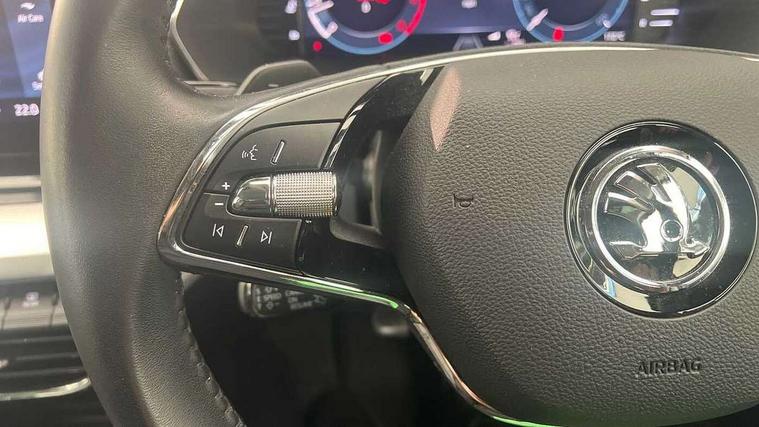 1x USB Type C port in rear view mirror (charging only), 2x USB Type C ports in rear of front centre armrest (charging only), Bluetooth system, Boot lid release from inside vehicle (electrically), Columbus satellite navigation with 10" touchscreen display, Driver fatigue sensor, eCall emergency system, Electro-mechanical power steering, Front and rear parking sensors with manoeuvre assist, Front assist system, Speed limiter, Turn Assist, Virtual Cockpit - 10.25" digital display, Voice control system, Wireless SmartLink for Apple Car Play, 2x USB Type C ports (for charging and data transfer), 8 Speakers, DAB Digital radio, Aero front windscreen wipers with intermittent function, Auto dimming rear view mirror, Body colour door mirrors and handles, Chrome grille surround, Chrome strip in lower front bumper, Chrome window surround, Electric adjustable/heated/folding door mirrors with driver side auto dimming, Electric front and rear windows, Headlight washers, Heated rear windscreen, High level third brake light, Ice scraper in fuel cap, Rain and light sensors, Rear fog light on one side, Rear privacy glass, Rear side wing doors, 3 rear headrests, 3 seat bench in 2nd row, 4 foldable roof handles, Chrome inner door handles, Front centre armrest, Front head restraints, Grey headlining, Heated front seats, Height adjustable driver and front passenger seat with lumbar support, Illuminated glovebox, Leather trimmed gearshift lever, Luggage compartment lighting x1 light, Microsuede cloth upholstery, Parcel shelf - folding, Satin black microsuede with grey stitching in padded dash panel, Single front passenger seat, Sunglasses storage, Textile floor mat set, Ticket holder, Two-spoke leather multi function steering wheel with paddles, Umbrella in door panel, Unsplit rear bench seat and split folding backrest, 3 point front/outer rear seatbelts+pre-tensioners, Alarm with interior monitoring, tilt sensor and back up horn, Automatic door unlocking in case of crash, Automatic fuel cut off in case of crash, Automatic warning lights in case of emergency braking, Curtain airbags and front side airbags, Driver and front passenger airbags, Drivers knee airbag, Electronic parking brake, ESC including ABS, EBV, MSR, ASR, EDS, HBA, DSR, Front central airbag, Hill hold control, Hill start assist, ISOFIX on front passenger seat and outer rear seats, Manual rear child locks, Passenger airbag deactivate switch, Pro active services, Rear disc brakes, Two tone horn, Tyre pressure monitor, Visual and acoustic seat belt reminder, Warning reflectors in front door, Door locks with immobiliser, Keyless entry and start/stop including rear doors, Remote central locking, Chrome air vent surrounds, Silver squares haptik decorative inserts,