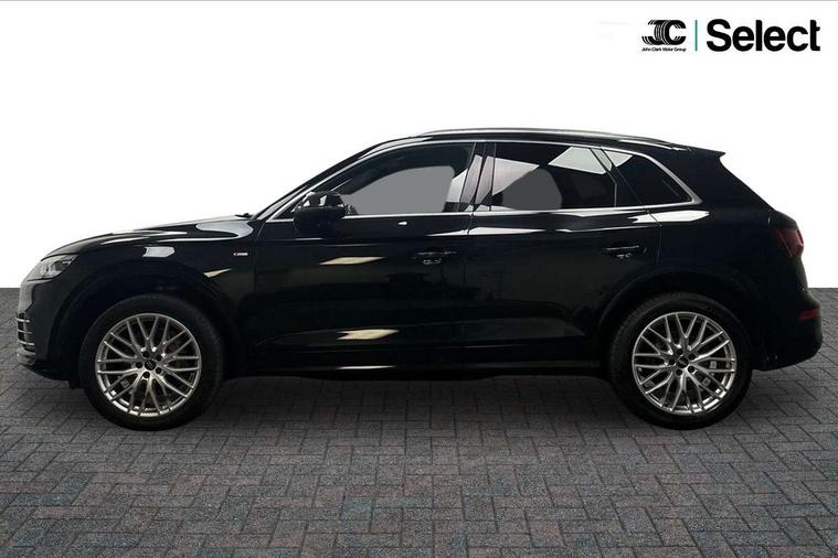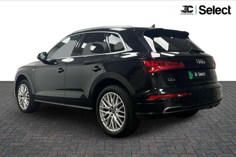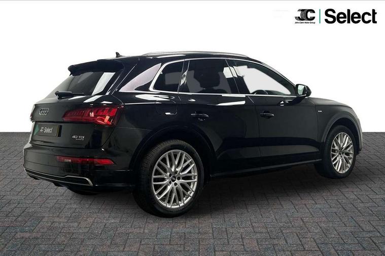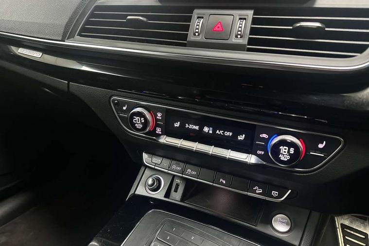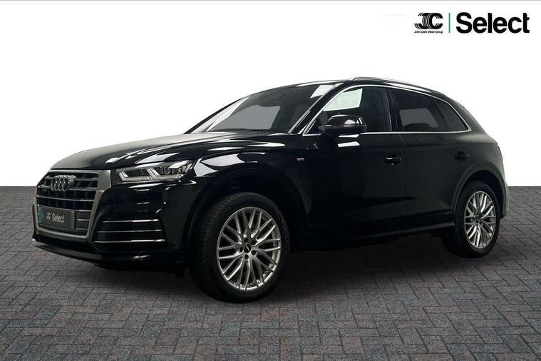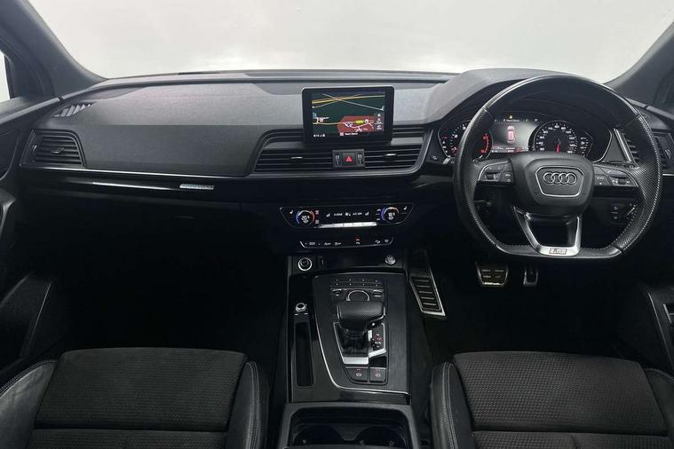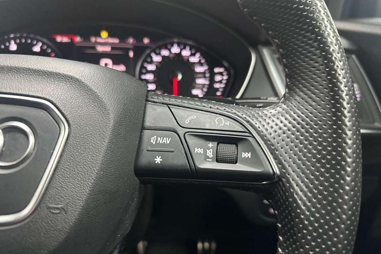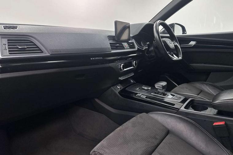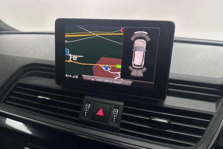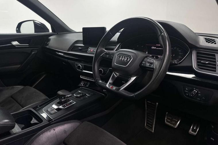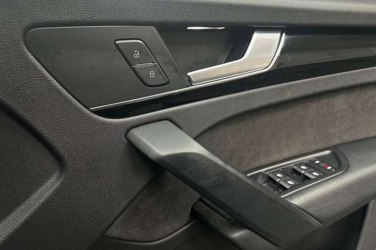 7" Colour driver information system, Audi connect safety and service (e-call), Audi drive select, Audi parking system plus with front and rear sensors, Audi Pre sense collision avoidance, Audi smartphone interface, Automatic start-stop system with coasting functionality and efficiency programme, Cruise control + speed limiter, Electro - mechanical power assisted steering, MMI Navigation, Mobile telephone preparation - bluetooth interface, Power tailgate, Service interval indicator, Voice control system, Diesel particulate filter, Dynamic suspension, Quattro on demand, 2 x USB charging port with aux input socket, 2x SD card slot, CD player, DAB Digital radio, MMI radio plus with 7" colour MMI screen and MMI controller, Acoustic windscreen, Air inlets in matt titanium black with blades in matt aluminium silver, Aluminium roof rails, Auto dimming rear view mirror, Automatic headlight levelling, Body colour bumpers, Body colour door mirrors, Body colour rear diffuser with matt aluminium silver surrounds, Body colour S Line side skirts, Body colour underbody protection, Chrome exhaust tailpipe, Electric adjustable/heated/folding door mirrors, Front and rear electric windows, High beam assistant, LED headlights with LED rear lights + dynamic rear indicators, Light and rain sensor for auto activation of lights and windscreen wipers, Loading sill protector in stainless steel, Privacy glass with front acoustic glazing, Rear wiper, S front and rear bumpers, S Line badges on the front wings, S Line rear spoiler, Twilight grey matt radiator grille with matt aluminium horizontal chrome struts, 3 rear headrests, 40:20:40 split folding rear seat with rear centre armrest, Black cloth headlining, Contrast stitching on seats, steering wheel and gear lever gaiter, Deluxe 3 zone electronic climate control, Front centre armrest, Front sport seats with S embossed logo, Front/rear floor mats, Heated front seats, Height adjustable front head restraints, Height/reach adjustable steering column, Illuminated door sill trims with S logo, ISOFIX child seat mounting and top tether, Luggage compartment carpet, Manual seat adjustment with 4-way electric lumbar support, Perforated leather gearknob, Removable luggage compartment floor, Stainless steel pedals, Sunvisors with vanity mirrors, Trunk roller cover, High gloss pack - Q5, LED interior light pack - Q5, Non Smokers pack, 3 point seatbelts on all seats, 6 airbags - Driver, front passenger, curtain and side airbags, Electromechanical parking brake, Electronic stabilisation control including ABS, ASR and EDL, Front passenger airbag deactivation, Hill descent control, Hill hold assist, Multi collision brake assist, Pop-up bonnet for pedestrian protection, Pre sense city, Seat belt force limiter, Seatbelt monitoring, Tyre pressure warning, Warning triangle and first aid kit, Anti theft alarm, Anti-theft wheel bolts, Keyless Go access/ignition system, Remote central locking, Matt brushed aluminium inlays, Tool kit,