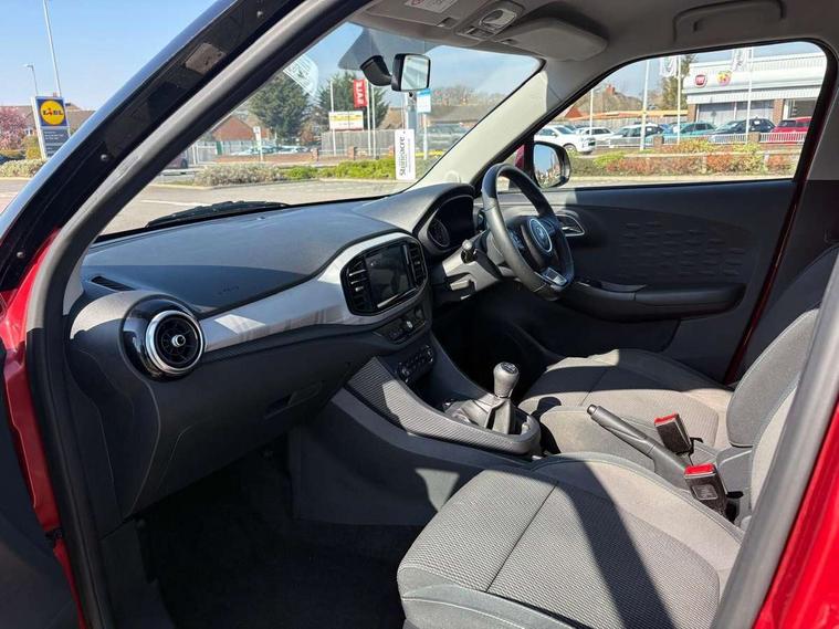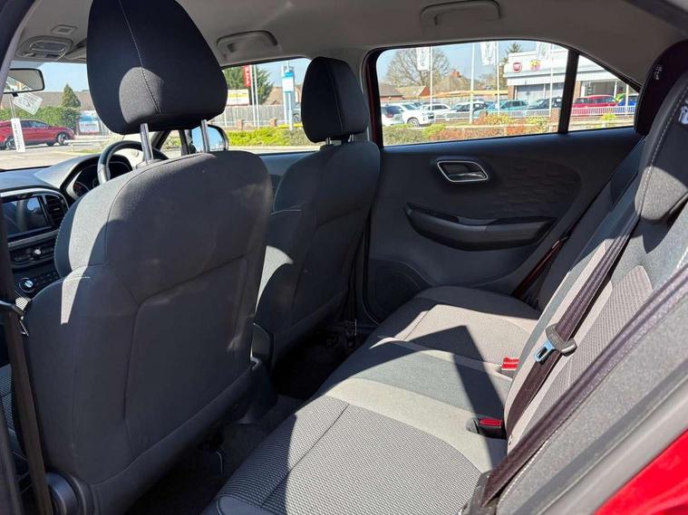 8" colour touch screen, Apple car play, Headlamp on warning buzzer, Multi function trip computer, PAS, Remote fuel flap release, Reverse parking sensors, 4 front speakers with woofer (2 main and 2 tweeters), Bluetooth telephone and audio streaming, DAB radio + AUX/USB, Remote audio controls on steering wheel, Auto dimming rear view mirror, Body colour bumpers, Body coloured door handles, Body coloured electrically adjustable heated door mirrors, Body coloured rear spoiler, Body coloured side sills extension, Electric front/rear windows/one touch facility, High mounted stop lamp, LED daytime running lights, LED headlamps with "follow me home" feature, Programmed rear wash/wipe, Solar reducing windscreen, Variable front intermittent wipers, 12V socket, 60/40 split folding rear seat, Air conditioning with dust and pollen filter, Boot space lamp, Driver 6-way adjustable seat, Driver's footrest, Fabric upholstery, Front cupholders x 2, Front headrests, Front interior lamp with reading lamps and time delay, Front sun visors with driver and passenger mirrors, Passenger 4-way adjustable seat, Rear headrests, Seat back pockets, Stitched leather-style steering wheel, Tilt adjustable steering column, 2 x adjustable rear head rests, 3x3 point rear seatbelts, Airbags - Twin front, side and curtain, Driver seatbelt warning indicator, Fold-away key, Front disc brakes and rear drum brakes, Front seatbelts (3-point + pretensioner + load limiter), Hill hold function, Passenger airbag cut-off switch, Passenger seatbelt warning indicator, Rear child locks, Rear ISOFIX child-seat upper tether & lower anchor, Side impact beams, Stability control system (SCS) including ABS, EBD, EBA, CBC, Tyre pressure monitoring system, Remote central door locking with deadlocks and immobiliser, Speed sensitive door locking, 16" Diamond cut alloy wheels, Tyre repair kit,
