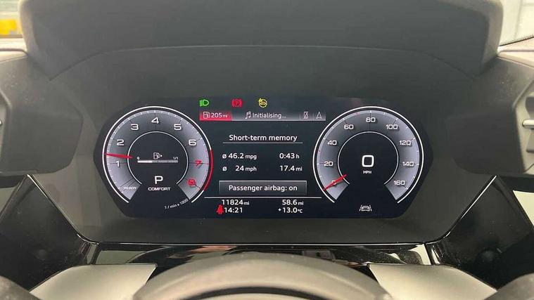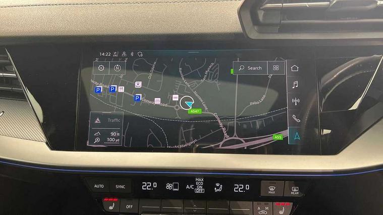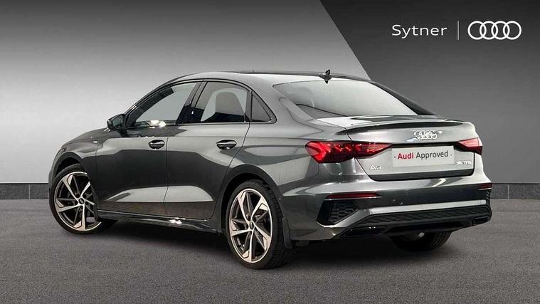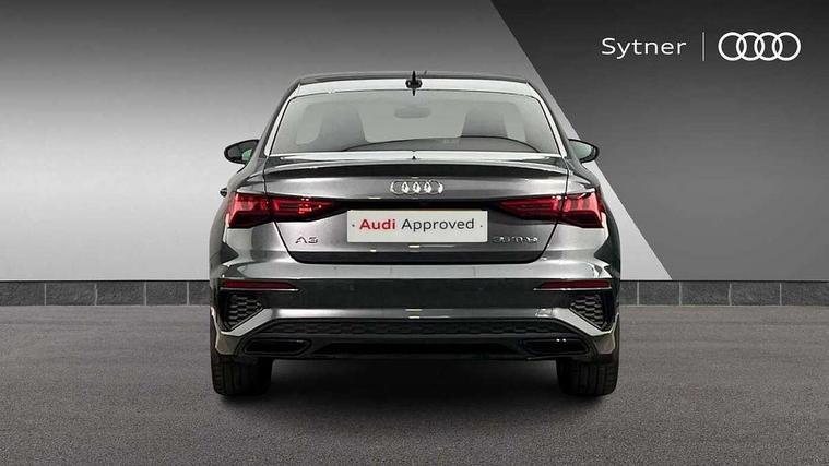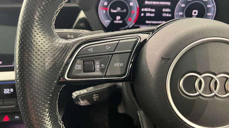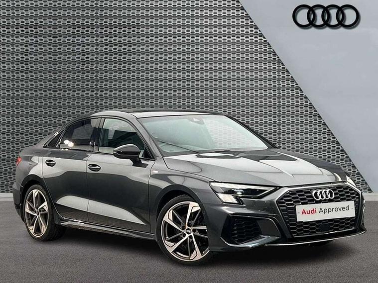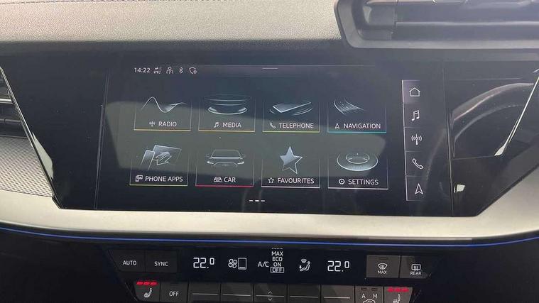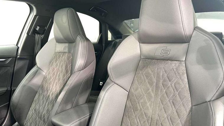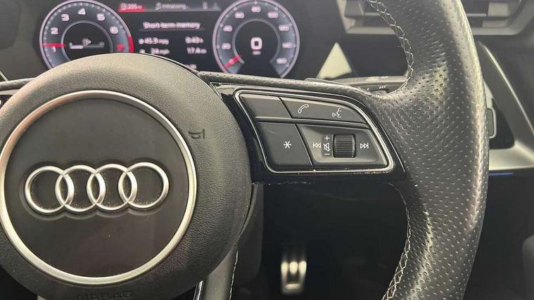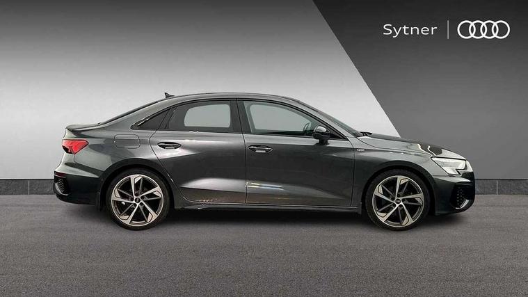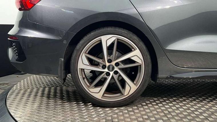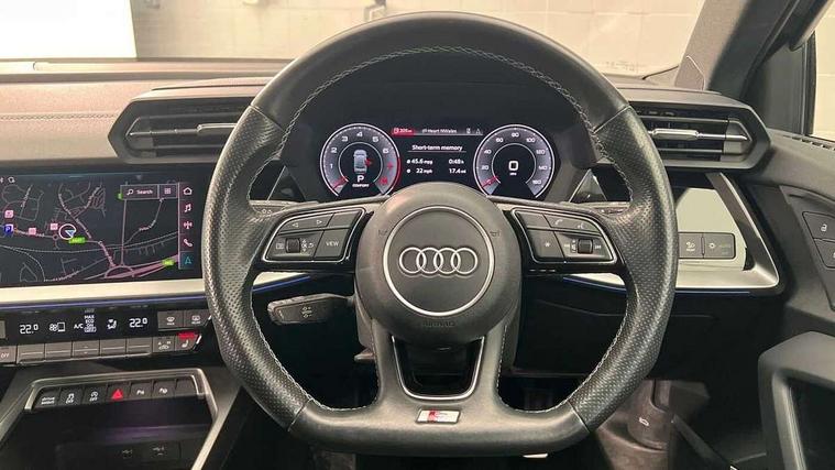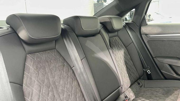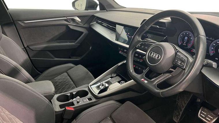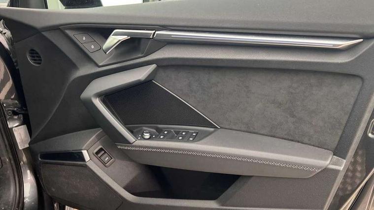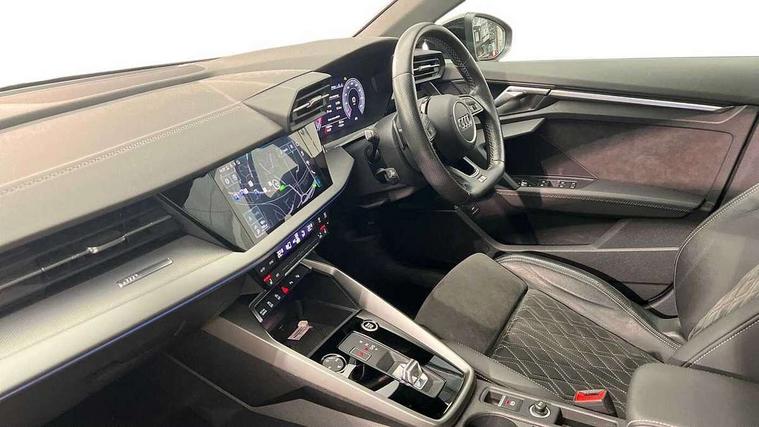 Audi connect emergency call and service, Audi drive select (Auto, Comfort, Dynamic, Efficiency and Individual), Audi smartphone interface, Audi virtual cockpit plus - 12.3" dynamic digital instrument cluster, Automatic start/stop system with recuperation, Bluetooth interface, Collision avoidance assistant, Cruise control + speed limiter, Electromechanical power speed sensitive steering, Lane departure warning system, MMI Navigation Plus with high resolution 10.1" colour touch screen display, Rear parking sensors, Service indicator, Voice control system with natural language interaction, Sports suspension, 2x USB Type C ports (for charging and data transfer), 6 passive loudspeakers, CD player, DAB Digital radio, Acoustic glass windscreen, Auto dimming frameless rear view mirror, Electrically adj heated/folding + automatically dimming exterior mirrors + automatic kerb side function for passenger side exterior mirror, Front electric windows, Illuminated door sills with aluminium inserts at the front with S logo, Integrated LED indicators in door mirrors, LED daytime running lights, Light and rain sensors, Model and engine designation badges at rear, Privacy glass - dark tinted rear window, rear door and side windows, Rear electric windows, S roof spoiler, 12V socket and storage compartment in front centre console, 3 spoke flat bottomed multifunction plus sports contour leather wrapped steering wheel with shift paddles, 4 way electrically adjustable lumbar support for driver and front passenger, 40/20/40 split folding rear seat bench with cupholder, Alcantara/twin leather upholstery with front sports seats S embossed logo, Black cloth headlining, Dual zone electronic climate control, Electrically adjustable front seats, Front and rear centre armrest in leather, Front and rear headrests, Front/rear floor mats, Heated front seats, Height and reach adjustable steering wheel, Interior lighting - glove compartment light and right hand side, Luggage compartment floor covering, Manual boot compartment lid, Seat side bolsters, Stainless steel pedals and front footrest, Aluminium interior elements pack - A3, Black styling pack - A3/S3, Extended ambient lighting pack - A3/S3 Saloon, LED interior lighting pack - A3 Saloon Edition 1/Vorsprung, Matrix LED Exterior lighting with headlight washer Pack - A3/S3, 3x3 point rear seat belts, Driver and front passenger airbag with passenger airbag deactivation, Electronic Stabilisation Control (ESC) including ABS, ASR and EDL, First aid kit with warning triangle and 2 safety vests, Front side airbags with head airbags and interaction airbag, Hill hold assist, Pre-sense front with pedestrian and cyclist detection, Seatbelt monitoring, Tyre pressure loss indicator, Anti theft alarm, Anti-theft wheel bolts, Electronically operated child lock, Immobiliser, Remote control central locking, Aluminium air vent surrounds, Aluminium trim elements, Dark spectrum aluminium inlays, accent surfaces in the dashboard and centre console in platinum grey silk effect paint finish, 19" 5 arm trapezoid design alloy wheels in titanium matt grey with diamond cut finish,
