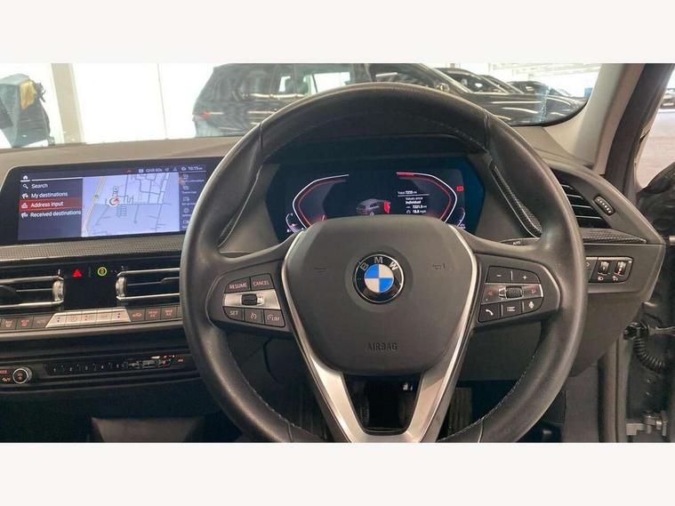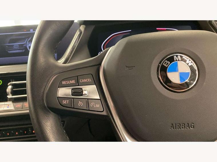 Active guard plus, Attentiveness assist, BMW ConnectedDrive online services, BMW Teleservices, Check Control warning system for monitoring of lights and door/luggage compartment open warning, Cruise control with speed limiter, Eco pro mode, Electric power steering with Servotronic steering optimised at all speed ranges, Front axle single joint with specific axle kinematics to minimise drive influences on steering + provide increased rigidity agile driving behaviour, Integrated owners handbook, Lane departure warning system, Oil sensor for level and grade, On board computer, Optimum shift indicator, Personal Profile, Pull away assistant, Rigidly mounted rear subframe - Multi link construction with separate spring / damper configuration and excellent driving characteristics, Speed limit Info including no-overtaking indicator, Aluminium lightweight construction, Anti roll bar front and rear, Balancer shaft, Double VANOS twin scroll turbocharging system, Drive Performance Control, Electronic differential lock, High precision injection, Petrol Particulate Filter, Suspension with twin tube gas filled shock absorbers with degressive characteristic curve, VALVETRONIC engine management, DAB Digital radio, Auto dimming rear view mirror, Automatic windscreen wipers and automatic headlight, Body colour door handles, Body colour mirror caps, Body colour roof trims, Chrome exhaust twin tailpipes round 90mm in left, Direction indicator side lights in exterior mirrors, Electrically adjustable exterior mirror with mirror adjustment switch on drivers armrest and aspheric on driver side, convex on passenger side, Fading support, Follow me home headlights, Front and rear bumper system with replaceable deformation elements, Front and rear electric windows with open and close fingertip control, anti trap facility and comfort closing, Front bumper in Body colour with exclusive Sport air inlets finished in High gloss Black, Front door sill finishers in black plastic with BMW designation in metallic look, Green tinted heat protection glazing, High gloss shadowline window frame, Recess cover mirror frames and B/C pillar embelisher trim, High level third brake light, Integrated front windscreen with washer jets, Kidney grille in chrome frame with highgloss black struts, LED daytime running lights, LED eyebrow turn indicators, LED front fog lights, Lightweight engineering, Manual headlight beam throw control, Manual headlight levelling, Matt black air guide grilles, Matt black wheel arch trim, Model designation on electric bootlid, Nearside reverse light in rear light cluster, Preparation for high beam assistant, Rear bumper in Body colour with exclusive Sport design elements finished in High gloss Black, Rear fog lights, Rear side wing doors, Rear window wiper, Shark fin antenna, Trailer stabilisation logic, Visible VIN plate, Welcome lighting, 12V power socket in front centre console with blanking plug, 3 rear seat head restraints, 3 seat bench in 2nd row, 3 spoke sports leather steering wheel in black leather with black stitching and decorative finisher in pearl chrome + gearshift lever knob in leather, Black boot net with lashing eyes, Cargo function on 2nd seat row, Child seat ISOFIX attachment for two outer rear seats and front passenger seat with anchorage points, Conditioned based service, Driver and front passenger backrest net on rear, Driver side folding compartment in instrument panel, Folding rear clothes hook, Four grab handles integrated in roof lining, Front and rear door pockets with bottle holders, Front and rear side armrest integrated into door trim, Front armrest, Front sports seats, Glove compartment, Height adjustable front head restraints, Luggage compartment for bag hooks on left and right, foldable luggage compartment liner and four lashing eyelets, Manual adjust steering wheel, Multi-function controls for steering wheel, Single front passenger seat, Storage compartment in centre console, Storage compartment in luggage compartment, Stowage of the parcel shelf in luggage compartment trim, Sun visors with vanity mirrors and insert tab, Two front centre console cupholders, Two zone automatic air conditioning, Type C two USB ports in rear centre console, Velour floor mats, BMW live cockpit professional pack- 1 Series, Connected pack professional - 1 Series, Interior lights pack - 1 Series, 2 tone horn, 3 point seatbelts on all seats, front pyrotechnic belt tensioners, stopper and belt force limiters, rear coded belt buckles, Airbags - Front driver/passenger, front and rear curtain head protection, front side, manual deactivation of front passenger airbag, Anti lock braking system (ABS) with brake assist, BMW emergency call, Brake drying, Braking readiness, Child proof locking system in rear door, City braking function, Comfort modes, Cornering brake control, Crash sensor activating of airbags, Unlocking doors, hazard warning lights, interior light, safety battery terminal, Driver and front passenger seat belt security check, Dynamic stability control + (DSC+), Dynamic Traction Control - DTC, Electrically operated hand brake, Front and rear disc brakes, Seatbelt warning, Side impact protection, Tyre pressure monitoring system, Warning triangle and first aid kit, Central locking switch for all doors, fuel filler cap and luggage compartment, Deadlocking function system to all doors, Drive away locking system on all doors and luggage compartment with de-activated in iDrive settings, Locking wheel bolts, Remote central locking with two Integrate key, one button for opening and closing all lock, open and close window, button for open luggage compartment, Start/stop button illuminated in centre console with keyless engine start and auto start stop deactivation button, Thatcham Cat.1 alarm and immobiliser, Wheel slip limitation close to the actuator (ARB), Contrast stitching on instrument panel, Illuminated Berlin interior trim, Electrically powered 12V compressor, Reduced rolling resistance tyres,