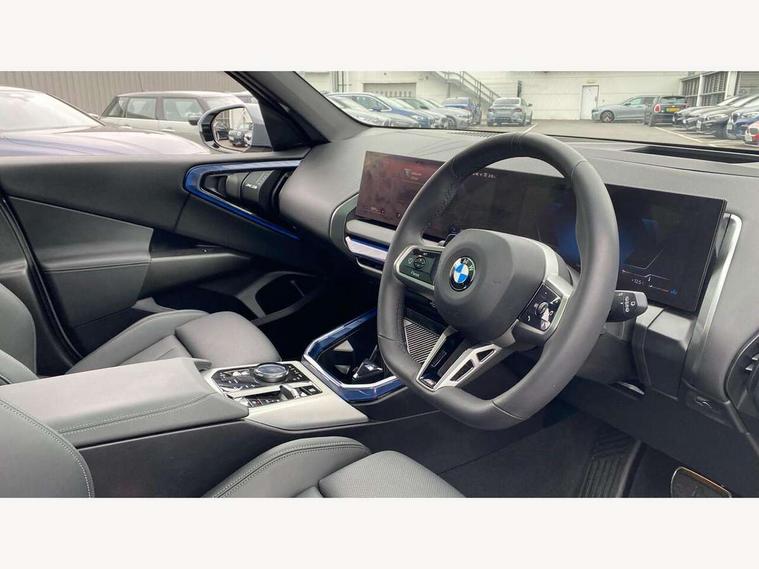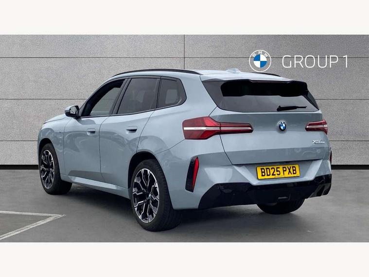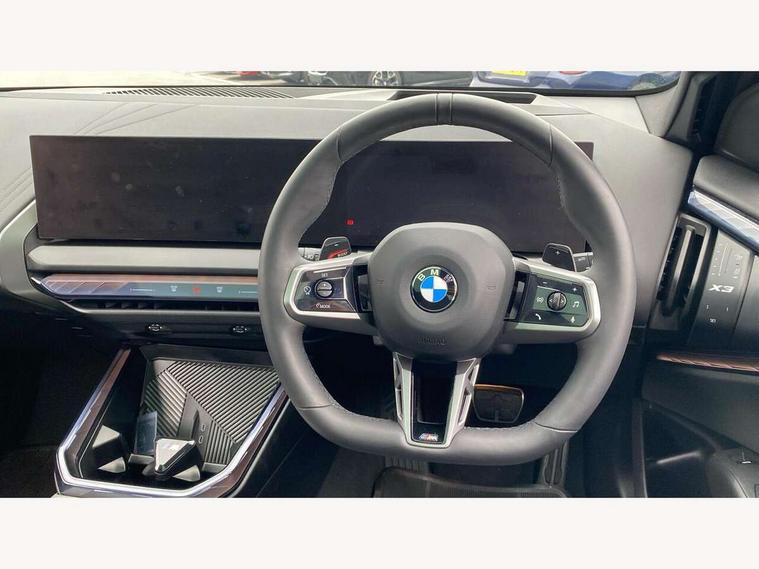 Active guard professional, Attentiveness assist, Automatic operation of tailgate, BMW ConnectedDrive online services, BMW iDrive, BMW Online services, BMW Teleservices, Brake pad wear indicator, Condition based service, Cruise control with brake function + speed limiter, Drive off assistant, Driving Assistant Plus Preparation, Flat tyre monitor, Language version English, My Mode - Personal, Efficient, Sport, Relax, Expressive, Parking assistant, Reversing assist camera, Servotronic system, Variable sport steering, Dynamic stability control, Multiple control arm rear axle, Steptronic transmission with gearshift paddles, Two-joint strut-type front axle with tension strut, DAB tuner, Personal eSim, 4 tailpipe tips, B-pillar trim panel in black high-gloss, BMW badge on front and rear, BMW M-specific front/rear bumpers and side sills, BMW M-specific radiator grille with horizontal bars in Dark Silver and M logo, Daytime running lights, Door handles flush to the surface with lock barrel on driver's side, Dynamic brake lights, Electric adjustable and heated door mirrors, Electric window trap release and convenient opening/closing feature, Headlight beam throw control, Heated rear window, Heated windscreen washer jets, High beam assistant, LED 3rd brake light, LED rear lights, LED tail lights, Locking of the doors, M high-gloss shadowline, M-specific Exterior mirrors, Mirror base and mirror blade in black high-gloss, Mirror triangle in black high-gloss, Rain sensor with automatic headlight activation, Rear side wing doors, Rear wiper, Reversing light, Side window frame in black high-gloss, Windscreen wipers, 12v power socket in front centre console and luggage compartment, 2 x USB Type C ports for charging and data transmission (front centre console) and 2 x USB Type C ports for charging (rear centre console), 3 rear headrests, 3 seat bench in 2nd row, 3 zone automatic air conditioning, 40:20:40 split folding rear seat with loading system, Ambient lighting, Anthracite headlining, Electric adjustable seats with memory function, Floor mats in velour, Footrest and pedals in black plastic, Four grab handles integrated in roof lining, Front armrest with integrated control panel, Front centre console trim in black high-gloss, Front head restraints, Front passenger seat, Front sports seats, Glove compartment, i-Size / ISOFIX attachment points on both outer rear seats, with covers in black, Luggage compartment separating net, M sport leather steering wheel, Multifunction steering wheel, Rear side armrests integrated into door trim, Selector lever with toggle operation, Steering column adjustment, Sun visors with illuminated vanity mirrors, Three upper retaining strap clips integrated into the rear panels of the seat backrests, Through loading system, Two front cupholders and two in the rear center armrest, Wireless charging tray, Connected pro package - X3, Driving assistant package - X3, Interior and exterior mirror package - X3, 3 point seatbelts, Airbag deployment is controlled with respect to the intensity and scope, Anti-lock braking system (ABS), Automatic hold function, BMW emergency call, Brake assist, Brake drying, Brake energy regeneration, Braking readiness, Central airbag, Child locks on rear doors, Cornering brake control (CBC), Crash Sensor - activation of central locking release, hazard warning light and interior lighting, Driver and front passenger front and side airbags, Dynamic brake control, Electromechanical parking brake, Front and rear disc brakes, Head airbags, Integrated braking system, Post Crash Collision Warning with braking function, Trailer stability control, Tyre pressure sensor, Warning triangle, Alarm system, Closing system with central locking, Comfort access system, Locking wheel bolts, Start/stop button with keyless motor start with acoustic drive, Tyre repair kit,