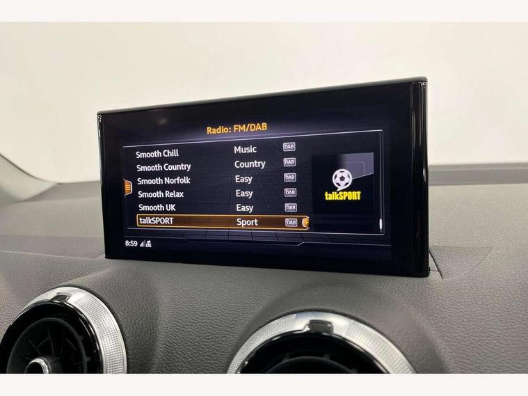 Audi connect navigation and infotainment includes innovative services, Audi connect remote and control connects your vehicle to your smartphone, Audi drive select: S tronic - power steering assistance + engine + gearshift (modes: comfort, auto, dynamic, efficiency, individual), Audi smartphone interface - Apple carplay/Android Auto, USB connect, 2xSDXC card readers, voice control for navi, telephone, music and 3rd party apps, Audi virtual cockpit, Automatic start/stop system with recuperation, Bluetooth interface includes bluetooth audio streaming, Cruise control, E-call, MMI navigation plus with MMI touch, Power operated tailgate, Progressive steering, Rear parking sensors, 6 passive loudspeakers, DAB Digital radio, Auto dimming rear view mirror, Black window trims, Body colour door mirrors, Contrast bumpers in Manhattan grey, Electrically adjustable, folding, auto dimming and heated door mirrors with integrated LED side indicators, Front windscreen with grey tinted sunband, LED daytime running lights, LED headlights with dipped beam, high beam, position lights, indicators, LED third brake light, Rear side wing doors, Rear wiper, Side skirts in manhattan grey, Variable front intermittent wipers, Wheel arch trims in manhattan grey, 12V socket in front, 3 seat bench in 2nd row, 3 spoke leather trimmed multi-function steering wheel with height and reach adjustable, 4-way electric lumbar support for front seats including manual seat height adjustment for both front seats, 60/40 split folding rear seat bench, Front and rear head restraints, Front centre armrest, Front sport seats, Front/rear floor mats, Grey cloth headlining, Height/reach adjust steering wheel, Index cloth upholstery, ISOFIX child seat mounting in front passenger and rear outer seats, Manual air conditioning, Single front passenger seat, 3x3 point rear seatbelts, 6 airbags - Front, curtain and front side airbags, Electromechanical parking brake, Electronic stabilisation control including ABS, ASR and EDL, Front passenger airbag deactivation, Hill hold assist, Pre-sense front with pedestrian recognition, Seatbelt monitoring, Tyre pressure warning light with visual and acoustic warning, Warning triangle and first aid kit, Anti theft alarm, Anti theft wheel bolts, Electronically operated child locks, Remote central door locking, Aluminium interior element, Inlays in silver grey diamond paint, Tool kit,