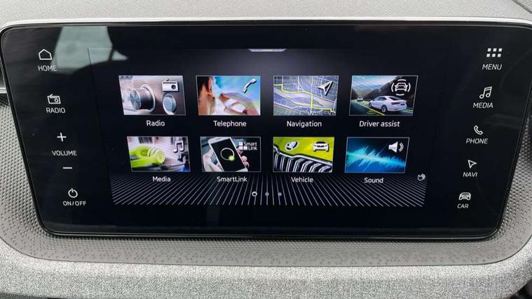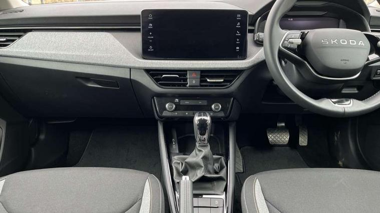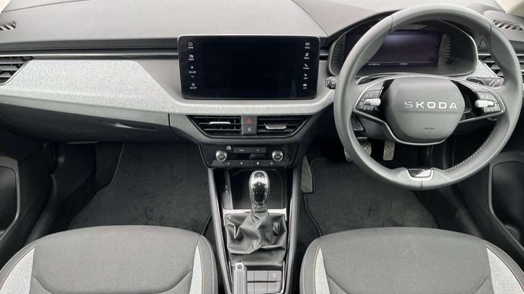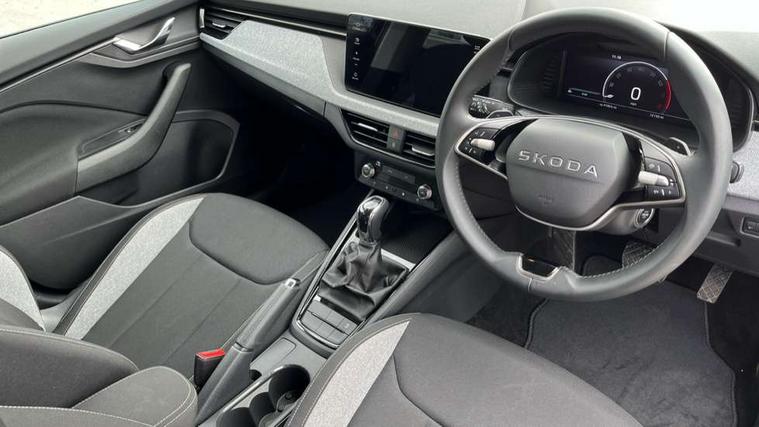 Advanced driver attention and drowsiness monitor, Bluetooth system, E-call, Front assist system, PAS, Rear parking sensors, Rear view camera, Service indicator, Speed limiter, Traffic sign recognition, Virtual cockpit with 10.25" display, Voice control system, Wireless smartlink, 4 USB C ports, 8 Speakers, 9.2" Skoda navigation display, DAB Digital radio, Auto dimming rear view mirror, Automatic headlight control with coming home and leaving home feature, Black roof rails, Body colour bumpers, Body colour door mirrors and handles, Chrome grille surround, Front and rear electric windows, Full LED headlights, Heated rear window, LED brake lights, LED daytime running lights, LED front turning lights, LED high beam, LED low beam, LED third brake light, Rear LED fog light, Rear side wing doors, Rear wiper, Ticket holder inside windscreen, 12V socket in luggage compartment, 3 seat bench in 2nd row, Black hotstamping, Cargo elements, Chrome inner door handles, Driver and passenger sun visors with vanity mirror, Dual zone climate control, Front and rear roof lights, Front centre armrest, Front head restraints, Glove compartment with illumination, Height adjustable driver seat, Height adjustable front passenger seat, Ice scraper, Inner circulation control with pollen filter, ISOFIX on front passenger seat, Isofix preparation for back seats, Krepp recycled decor inserts, Leather gearknob and handbrake lever, Loft cloth upholstery, Manual lumbar support for front seats, Net package and top tether hooks in boot space, Net under rear shelf, Overhead glasses storage compartment, Pocket on the back of both front seats include mobile phone pockets, Rake/reach adjustable steering wheel, Reading lights, Satin black door inserts, Single front passenger seat, Textile floor mats, Third rear headrest, Top tether for front passenger seat, Umbrella in driver's door, 3x3 point rear seatbelts, Airbags - driver and front passenger, Disc brakes, ESP, Extended and predictive pedestrian/cyclist protection, Front passenger airbag deactivation switch, Front side airbags with curtain airbags, Hill hold control, Manual leather parking brake, Manual rear child locks, One tone horn, Seatbelt reminder for driver an co-driver, Traction control, Tyre pressure monitor, Anti-theft alarm system with interior monitoring, backup horn, towing protection and remote central locking with SAFE system, Anti-theft wheel bolts, Electronic engine immobilizer,