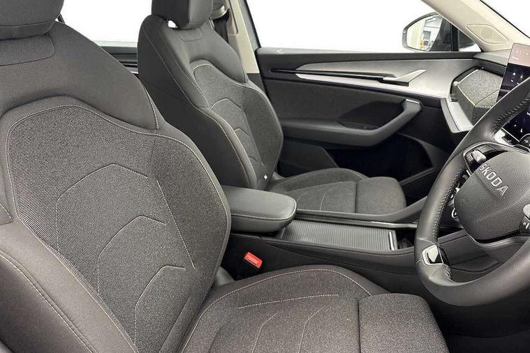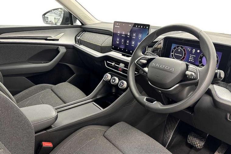 13" satellite navigation touchscreen display, Blind spot detection with door exit warning, Bluetooth system, ChatGPT functionality, Driver alert - Fatigue and drowsiness monitor, Dry display cleaner, Emergency call, Front and rear parking sensors, Front cross traffic assist, Lane assist, PAS, Rear traffic assist, Rear view camera, Tailgate unlocking from outside, Traffic sign recognition, USB C Port x 2 in front centre console, Virtual Cockpit - 10.25" digital display, Voice control system, Wireless charging for two smartphones (15W) with cooling function, Wireless SmartLink for Apple CarPlay and Android Auto, Stop/start function, 2x USB-C in the rear, 8 Speakers, DAB Digital radio, Aero front windscreen wipers with intermittent function, All weather light, Auto dimming rear view mirror, Black wheel arch surrounds, Body colour bumpers, Body colour door mirrors and handles, Cornering light and poor weather light, Electric folding /adjustable/separted heated/folding door mirrors, auto dimming with boarding sports and memory function, Electric front and rear windows, Exterior black decorative trims, Heat insulating glass in windshield, Heated rear window, Ice scraper in fuel tank cap, Invisible tailpipe, LED daytime running lights, LED front fog lamps, LED Headlights, LED rear fog light, LED rear lights, LED third brake light in rear spoiler, Light assistant with automatic headlight control and coming home feature, Logo projection in door mirrors, Rear roof spoiler, Rear side wing doors, Rear window wiper, Safety reflectors on front and rear doors, Unique dark chrome design logo on alloy wheels, Window control switches with black trim, Windscreen wipers with rain sensor, Without engine designation, 1.5l bottle holder points in all door, 1x centre rear reading light, 2 seat bench in 3rd row, 3 configurable smart dials with 32mm coloured display, 3 seat bench in 2nd row, 4 foldable roof handles with rear coat hooks, Ambient interior lighting - Dashboard, front-door stowage compartments, front and rear door panels and footwell lighting, Automatic gear selector on steering column, Chrome interior door handles, Driver/front passenger reading lights, Fabric headlining, Fixed bench 40:60:40 split folding backrests, Front and rear floor mats, Front centre armrest with jumbo box storage compartment, cup holder and 12V socket, Height adjustable front headrests, Isofix child seat fittings in outer middle row rear seats and front passenger with top tether, Manual height adjustment for front passenger seats and thigh support extender, Manual lumbar support for front passenger seat, Manually adjustable steering column, Pollen filter, Rear centre armrest with cupholders, Rear seat boot backrest release, Single front passenger seat, Skoda lettering on steering wheel, Storage pocket including mobile phone pockets on the backs of the front seats, Sunvisors with illuminated vanity mirrors, Three rear height adjustable headrests, Ticket holder on A Pillar, Tri zone climate control, Umbrella in door panel x1 made from sustainable materials, Upper and lower glovebox with card holder and coin compartment, USB C port by rear view mirror for charging only (15W), Variable boot floor, Auto door release and activation of warning lights in the event of an accident, Driver and front passenger airbag with knee airbag and front passenger airbag deactivation, Electric child locks, Electronic parking brake, ESC (incl. ABS+EMD+MSR+ASR+EDL+HBA+DSR+RBS+ESBS+MCB+TSA+XDS), Front assist with braking reaction to vehicles, pedestrians and cyclists, Front disc brakes, Fuel cut off safety device, Height adjustable front 3 point seatbelts + pretensioners, Hill hold assist, Junction assist with automatic emergency braking, Rear disc brakes, Safety vest holder in door, Seat belt reminder for all seats, Three point rear seat belts, Two tone horn, Tyre pressure monitor, Alarm with interior monitoring and tilt sensor with safe function, Anti-theft wheel bolts, Immobiliser, Remote central locking with 2 keys, Breakdown kit, Tool kit,
