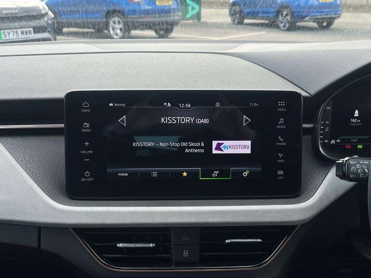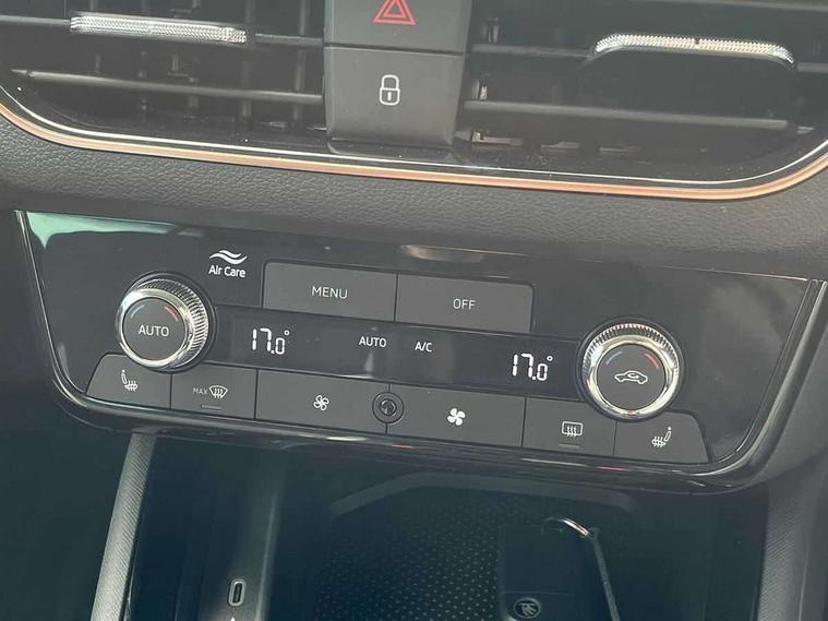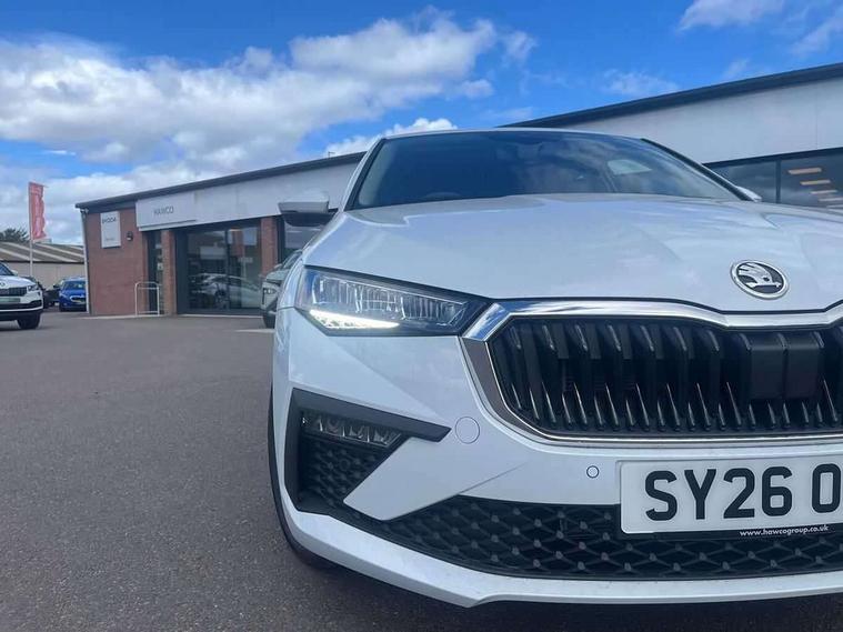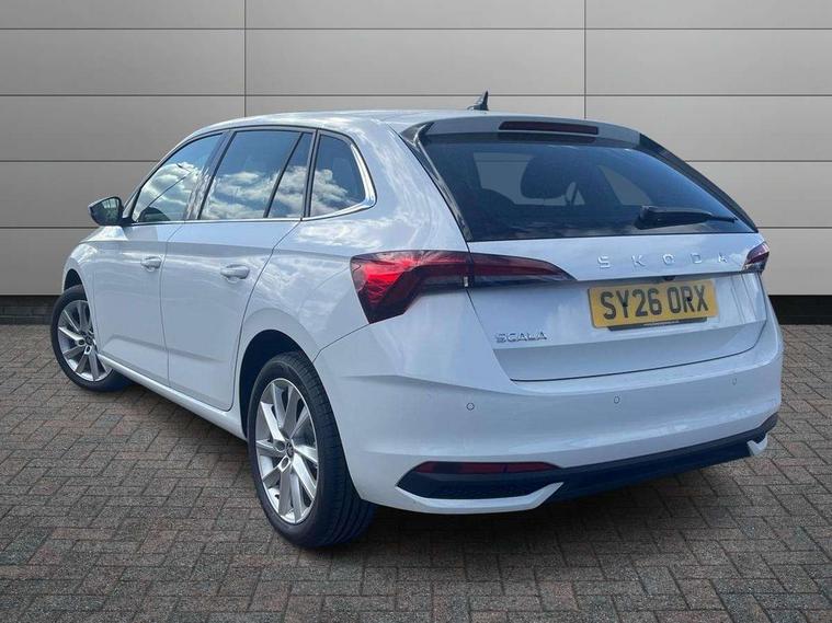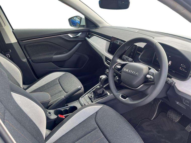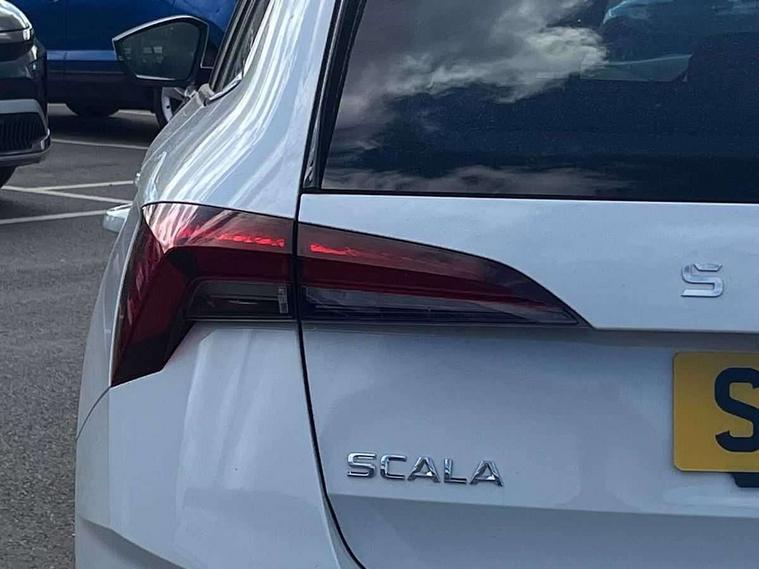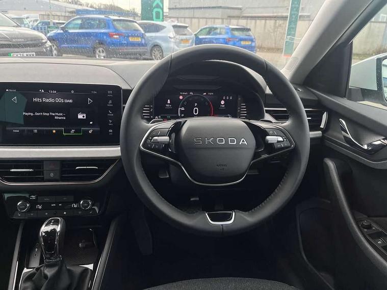 Advanced driver attention and drowsiness monitor, Bluetooth, e-Call (emergency call), Front assist system, PAS, Rear parking sensors, Rear view camera, Speed limiter, Tailgate, Traffic sign recognition, Virtual Cockpit - 10.25" digital display, Voice control system, Wireless smartlink, 4 USB C ports, 9.2" Skoda navigation display, DAB radio, Auto dimming rear view mirror, Automatic headlight control with manual coming and leaving home feature, Automatic intermittent wipers, Body colour bumpers, Body colour door mirrors and handles, Chrome moulding around grille, Chrome window frames, Front and rear electric windows, Heated rear window, LED 3rd brake light, LED daytime running lights, LED high beam, LED low beam, Light sensors, Privacy glass, Rear LED fog light, Rear side wing doors, Rear wiper, Tinted windows, Unique dark chrome design logo on alloy wheels, 12V socket in luggage compartment, 3 seat bench in 2nd row, Ambient lighting in white/red, Black / Copper armrest stitching, Cargo elements, Chrome inner door handles, Copper hotstamping, Door inserts in accent black, Driver and passenger sun visors with vanity mirror, Dual zone climate control, Front and rear roof lights, Front centre armrest, Front head restraints, Glasses storage in roof liner, Height adjustable driver seat, Height adjustable passenger seat, Ice scraper, Illuminated glove compartment, Inner circulation control with pollen filter, ISOFIX for front passenger seat, Isofix preparation for back seats, Leather gearknob and handbrake lever, Lodge cloth upholstery, Luggage net under rear parcel shelf, Manual lumbar support for front seats, Net package and top tether hooks in boot space, Pocket on the back of both front seats, incl. mobile phone pockets, Rear centre armrest, Single front passenger seat, Skoda lettering on steering wheel, Textile floor mats, Third rear headrest, Ticket holder, Top tether for front passenger seat, Umbrella in driver's door, Convenience pack without rear camera - Scala, 3x3 point rear seatbelts, ABS, Child locks, Curtain airbags and front side airbags, Disc brakes, Driver and front passenger airbags, ESP, Hill hold control, Manual leather parking brake, One tone horn, Passenger airbag switch off function, Seatbelt reminder for driver and front passenger, Tyre pressure monitoring system, Anti theft alarm system with interior monitoring, backup horn and towing protection, Anti-theft wheel bolts, Remote central locking with 2 remote folding keys, SAFE function for remote central locking, Decorative inserts,