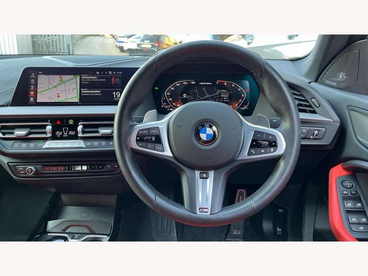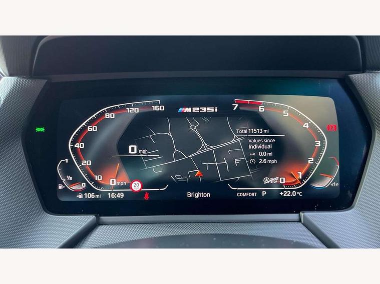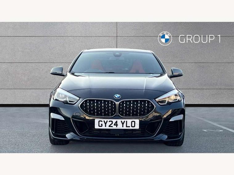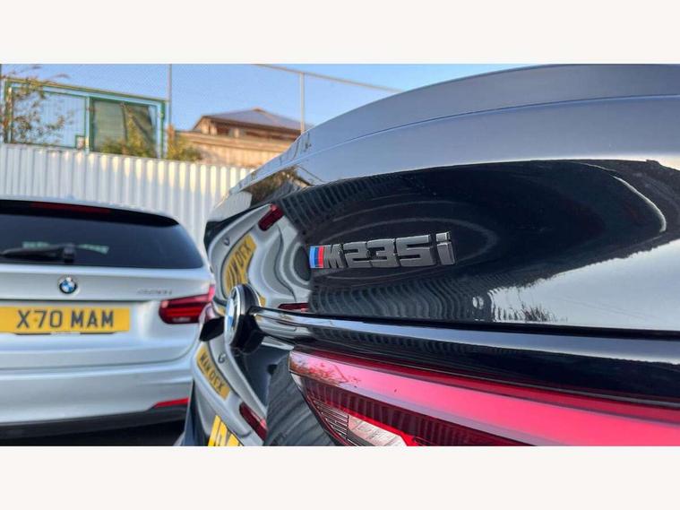 Active guard plus, Attentiveness assist, Auto start-stop, BMW ConnectedDrive online services, BMW Intelligent Personal Assistant, BMW Live Cockpit Professional with 10.25" high resolution instrument and control display, BMW Online services, BMW operating system with 7.0 mid interface, BMW Teleservices, Check Control warning system for monitoring of lights and door/luggage compartment open warning, Cruise control with braking function, Electro hydraulically controlled multi plate clutch in rear axle, Energy efficient operating strategy, iDrive controller with 7 short cut favourite buttons on centre console, Integrated navigation data with map data via USB +features such as 3D landmarks and micro city models, Integrated owners handbook, Intelligent voice assistant, Lane departure warning system, M Sport steering with M235i xDrive M performance specific settings, On board computer - average speed+fuel consumption, service interval, clock/date, odometer/trip meter, outside temperature display and ice warning, Optimum shift indicator, Personal Profile, Pull away assistant, Speed limiting function, 2 balance shafts, 8 speed sport automatic transmission with electronic selector lever, auto P function, coasting idle, race track, sport, gearchange display manual mode, Aluminium lightweight construction, BMW TwinPower twin-scroll Turbo four-cylinder petrol engine, Double VANOS, Drive performance control with ECO PRO comfort + sport mode, Electronic differential lock, Engine cover with M performance designation, High precision injection, Larger fuel tank capacity (50 litres), Launch control, M235i specific heavily de-throttled engine intake air guide, M235i specific high-performance cooling package, M235i specific larger turbocharger with integrated divert-air valve, Performance Control, Petrol Particulate Filter, Power transmission of front wheel drive on the rear axle via angle transmission on the front axle differential and two part cardan shaft, VALVETRONIC engine management, Variable, stepless and infinitely adjustable distribution of drive torque between the front and rear axles, xDrive intelligent all wheel drive with M235i specific reinforced components, 2x USB Type C ports (for charging and data transfer), 4G LTE Connectivity with hard wied 4G network sim card, DAB digital radio, MP3 players and RDS double tuner, Auto wipers, Automatically dimming rear view mirror, Body colour door handles, Direction indicator side lights integrated exterior mirrors, Electric windows - front and rear, with open/close fingertip control and trap release, Exterior mirrors - electrically folding with anti-dazzle, Fading support, Follow me home headlights, Front and rear bumper system with replaceable deformation elements, Front door sill finishers in black plastic with M235i designation, Heated, electrically adjustable exterior mirror aspheric on driver side, convex on passenger side, High gloss black B pillar finish, High gloss shadow line exterior trim, High level third brake light, LED daytime running lights, Lightweight engineering, M Performance exhaust system with valve control and minimised exhaust back pressure, M rear spoiler, Model designation on right side of tailgate includes xDrive designation onleft handside for M235i xDrive, Preparation for high beam assistant, Rain sensor with automatic headlight activation, Rear boot, Rear fog lights, Rear side wing doors, Reinforced crank drive, new pistons and adapted con rods, Reversing light in rear light cluster, Welcome lighting, 12V power socket in centre console, 2 cupholders in front centre console, 3 rear seat head restraints, 3 rear seats, 3 spoke M sports design leather steering wheel finished in nappa leather with specific M badge, Additional under floor storage in luggage compartment, Anthracite finished floor mats with contrasting surround, Anthracite headlining, Automatic two zone climate control air conditioning, Child seat ISOFIX attachment for two outer rear seats and front passenger seat with anchorage points, Conditioned based service, Driver and front passenger seat heating, Front and rear door pockets including bottle trays, Front and rear side armrests integrated into door trim, Front armrest foldable with integrated storage compartment, Front centre interior light over interior mirror and rear centre automatic interior light when door is opened/ignition switched off or via remote key, Front head restraints, Front M Sport seats, Front passenger seat, Glove compartment, Luggage compartment lighting, Manually adjustment steering wheel column, Multi-function controls for steering wheel, Shift-by-wire selector shift, Steering wheel paddles, Sun visors with vanity mirrors and insert tab, Through loading system with 40/20/40 split folding rear seat, Two lashing eyes, Additional interior lighting pack - 2 Series Gran Coupe, Connected pack professional - 2 Series Gran Coupe, Extended storage pack - 2 Series Gran Coupe, M Sport exterior styling aerodynamics pack - 2 Series Gran Coupe 235i, 2 tone horn, Airbag - Front driver and passenger, front and rear head, front side, curtain head protection, manual deactivation of front passenger airbag possible, Anti lock braking system (ABS) with cornering brake control, BMW emergency call, Brake drying, Braking readiness, City braking function, Crash sensor activating of airbags, Unlocking doors, hazard warning lights, interior light, safety battery terminal, Dynamic stability control + (DSC+), Dynamic Traction Control - DTC, Electrically operated hand brake, Integrated torsen mechanical limited slip differential on front axle, M Sport braking system in blue high gloss + blue painted brake calipers with M designation, M sport seatbelt, Rear brake discs, Rear child proof door locks, Seat belt security check for driver and front passenger, Seatbelt warning, Side impact protection, Three point seat belts on all seats including front belt stopper, pyrotechnic belt tensioners and belt force limiters, Trailer s