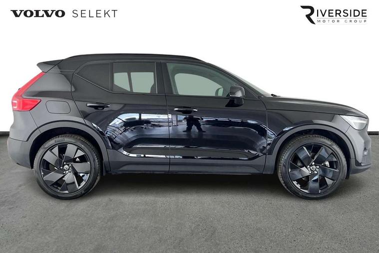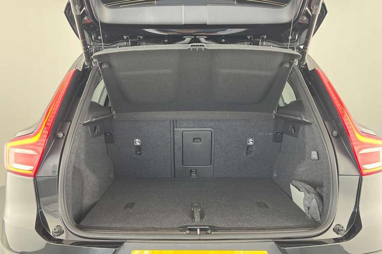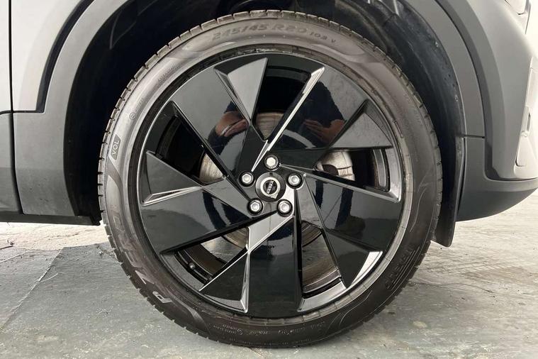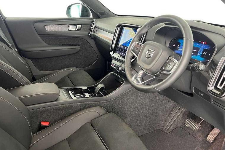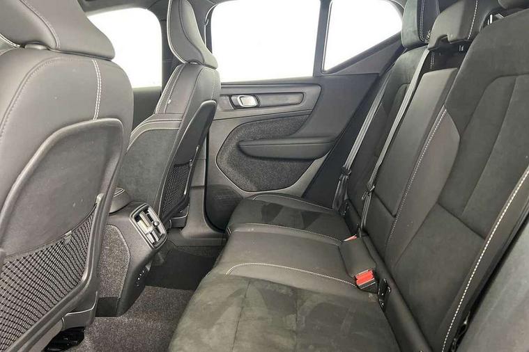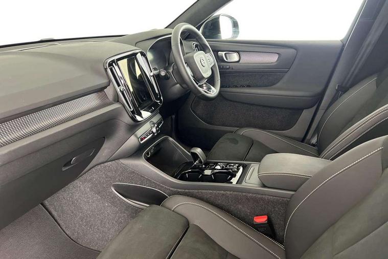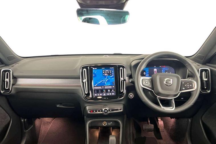 12.3" Progressive Driver Display, 9" centre console portrait touch screen, Adjustable steering wheel force, Android auto (Wired), Apple carplay (wired), Bluetooth handsfree system, Driver alert control, Driver assistance (pilot assist and adaptive cruise control), Driver awareness - Blind spot information system with steer assist, cross traffic alert with autobrake and rear collision warning and mitigation, E-call, Front park assist, Google automotive services - Enabled entertainment apps, navigation with google maps, voice recognition with google assistant, Hands free power tailgate, Intelligent speed assistance, Lane keeping aid, Oncoming Lane Mitigation, Rear park assist, Speed sensitive steering, Volvo cars services with app - Driving journal, emergency and breakdown call, engine remote start, remote door locking/unlocking and vehicle dashboard, Wireless/Inductive Mobile Phone Charging, Automatic transmission with start/stop and manual change functions, Dynamic chassis, DAB Digital radio, Steering wheel mounted remote controls, Adaptive brake lights with high level LED brake lights, Auto dimming feature for exterior door mirrors, Auto dimming interior mirror, Automatic headlamp levelling, Automatic LED Headlights + Active high beam incorporating daytime running lights, Colour coordinated auto folding and heated power door mirrors, Dark tinted windows - rear side windows and rear screen, Front aluminium tread plates, Front and rear electric windows, High gloss black front and rear skid plate, High gloss black front bumper deco, High gloss black front grille strikethrough and ironmark, High gloss black rear model, engine and volvo logo badges, High gloss black window trim, Home safe and approach lighting, Integrated roof rails in high gloss black, LED front fog lights, Puddle lights, Rain sensor with automatic windscreen wiper activation, Rear side wing doors, Rear wiper, Roof antenna, Roof spoiler, Visible VIN plate, 12V socket in front tunnel console and luggage compartment, 2-Zone electronic climate control with CleanZone air quality system and pollen filter, 3 seat bench in 2nd row, 3 Spoke tailored steering wheel with chrome trim, 60/40 versatile split folding rear seat, Centre console cupholders and storage, Charcoal headlining, Connect textile/microtech upholstery, Flexible load floor and grocery bag holder, Floor mats, Front cabin courtesy lights, Front door pocket, front cupholder, ambient front door, rear reading, rear courtesy, instrument panel and tailgate lighting, Front footwell illumination, Front headrests, Front reading lights, Front seat cushion extensions, Front side step illumination (under door), Glovebox bag hook, Heated front seats, Height adjustable passenger seat, Height/reach adjustable steering column, High gloss centre tunnel deco, Illuminated glovebox, Illuminated luggage compartment, Illuminated vanity mirrors + ticket holder, Integrated waste bin, Isofix attachments on outer rear seats, Load cover, Load protection net, Multi directional lumbar support for driver and passenger seat, Power driver seat with memory + exterior mirrors memory, Rear armrest with cupholders, Rear headrests, Single front passenger seat, Underfloor cargo storage, Climate pack without heated front seats - XC40, 3x3 point rear seatbelts, City safety with steering support with Pedestrian + cyclist + front collision warning with full auto brake and rear auto brake, Driver and passenger airbags, Drivers knee airbag, Electronic parking brake with auto hold, First aid kit, Front and outer rear seatbelt reminder and pretensioners, Front seats SIPS airbags, Hill descent control, Hill start assist, Inflatable curtain, Passenger airbag cut-off device, Power child locks on rear doors, Road sign information display, Run off Road Protection, SIPS (Side Impact Protection System), Slippery road and hazard light alert, Stability and Traction Control with Spin control, Engine Drag Control and Corner Traction Control, Tyre pressure monitoring system, Vehicle deceleration control with Anti-lock Brake System, Electronic Brake Distribution and Emergency Brake Assist, Warning triangle, WHIPS whiplash protection system - front, 2 x Key integrated remote control central locking including with deadlocking system and auto open/close windows, Anti-theft alarm including immobiliser/volume sensor + level sensor, Keyless drive includes keyless entry and keyless start, Locking wheel nuts, 20" 5 spoke high gloss black alloy wheels,