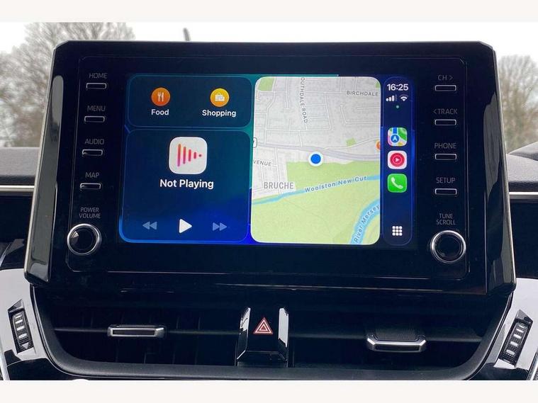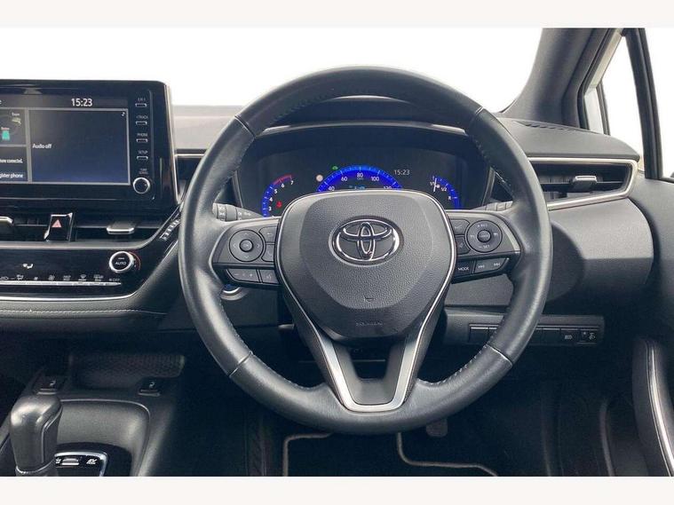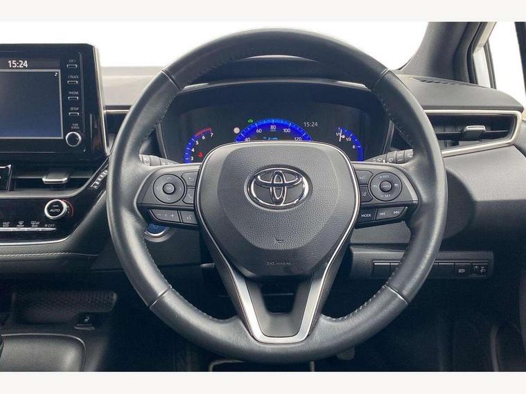 7" Multi information display screen, Bluetooth telephone connectivity, Connected car functionality upgrade, tracker, remote status and e-care, Dynamic radar cruise control (with RSA) including switch on steering wheel, E-call, Electrically assisted power steering, EV drive indicator, Lane Departure Alert (LDA) switch on steering wheel, Memory on adjustable speed limiter, Push button start, Reversing camera, Smartphone integration with Apple CarPlay and Android auto, Gasoline particulate filter, Vehicle Stability Control (VSC), 6 speakers, 8" Touchscreen with MM19 Multimedia system and voice recognition, AM/FM radio, DAB Digital radio, USB and Aux in connectors + 12V front outlet, Anti-jam protection on power windows, Auto up and down function on all power windows, Automatic headlights with high beam assist, Black metallic surround on lower front grille, Black toyota logo in front, Black window frames, Body colour rear spoiler, Body coloured bumpers, Body coloured door mirrors, Body coloured outside door handles, Follow me home headlights, LED daytime running lights, LED front fog lights, LED Headlights, LED High mounted stop light, Manual day/night rear view mirror, Power adjustable heated door mirrors, Power front windows, Power rear windows, Rain sensor, Rear side wing doors, Rear window defogger, Rear window wiper, Shark fin antenna, Time adjustment on intermittent wiper, Turning signal integrated indicators in door mirrors, Unique lower skirt, Unique side rocker with black insert, UV-filter on driver and passenger windows, 3 rear headrests, 3 seat bench in 2nd row, 3 spoke leather steering wheel + gear knob, 60/40 split folding rear seat, Adjustable speed limiter switch on steering wheel, Audio, multimedia and telephone switches on steering wheel, Boot light, Centre room light, Clean air filter, Driver and front passenger personal light, Driver and passenger assist grip, Driver and passenger sun visor with mirror and light, Dual zone automatic air conditioning with ECO mode switch, Fabric armrests, Front and rear cup and bottle holders, Front door pockets, Front head restraints, Front passenger seat, Heated driver and front passenger seats, Illuminated entry system in room lamp, ISOFIX seat fixing (2 fixings on rear outer seats), Leather gear shift with satin chrome on gear shift console, Manual height adjustable for driver and front passenger seat, Parcel shelf, Passenger seat back pocket, Pollen filter, Power adjustable lumbar support on driver seat, Power window switches with satin chrome inserts, Quilted fabric upholstery with grey stitches seats, Rear armrest with 2 cupholders, Rear passenger coat hooks (2), Satin chrome inside door handles, Shopping bag hooks in luggage compartment, Sliding armrest on centre console box, Slow opening glovebox with lights, Tilt/telescopic steering column, Voice recognition switch on steering wheel, Whiplash Injury Lessening (WIL) feature (active headrest) for seats, Toyota safety sense 2 pack - Corolla, 3x3 point rear seatbelts, Adjustable driver and front passenger seat belt extender to top anchor point, Anti lock braking system + Electronic brake force distribution, Brake assist function, Child locks on rear doors, Downhill Assist Control (DAC), Electronic parking brake, Emergency brake light signal (EBS), Front passenger airbag on/off switch, Front seatbelt reminder, HAC - Hill start assist control, Rear seat belt reminder, Seatbelt pretensioners and force limiters, Supplemental restraint system (SRS) 7 airbags - dual driver, dual side curtain, side impact and driver knee airbags, Traction control, Tyre pressure warning system, Acoustic vehicle alert system (AVAS), Alarm with motion sensor and immobilizer, Remote central locking + deadlocks, Satin chrome dash trim, Soft touch texture on upper dashboard, Unique wheel finish with red wheel cap,