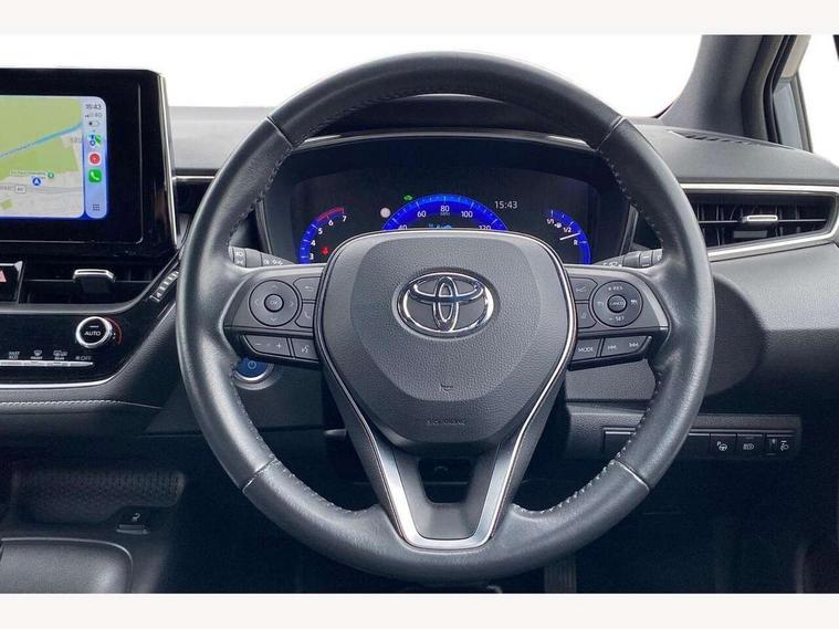 7" Multi information display screen, Bluetooth telephone connectivity, Connected car functionality upgrade, tracker, remote status and e-care, Dynamic radar cruise control (with RSA) including switch on steering wheel, E-call, Electrically assisted power steering, EV drive indicator, Intelligent park assist, Lane Departure Alert (LDA) switch on steering wheel, Memory on adjustable speed limiter, Push button start, Reversing camera, Smartphone integration with Apple CarPlay and Android auto, Gasoline particulate filter, Vehicle Stability Control (VSC), 6 speakers, 8" Touchscreen with MM19 Multimedia system and voice recognition, AM/FM radio, DAB Digital radio, Toyota touch 2 with go navigation system, USB and Aux in connectors + 12V front outlet, USB charging port in centre storage box, Aluminium roof rails, Anti-jam protection on power windows, Auto up and down function on all power windows, Automatic headlights with high beam assist, Black metallic surround on lower front grille, Black toyota logo in front, Body colour rear spoiler, Body coloured bumpers, Body coloured door mirrors, Body coloured outside door handles, Follow me home headlights, LED daytime running lights, LED front fog lights, LED Headlights, LED High mounted stop light, Manual day/night rear view mirror, Noise reduction layer on front windows, Power adjustable heated door mirrors, Power front windows, Power rear windows, Rain sensor, Rear side wing doors, Rear window defogger, Rear window wiper, Shark fin antenna, Time adjustment on intermittent wiper, Turning signal integrated indicators in door mirrors, Unique lower skirt, Unique side rocker with black insert, UV-filter on driver and passenger windows, 12v power outlet - luggage side, 3 rear headrests, 3 seat bench in 2nd row, 3 spoke leather steering wheel + gear knob, 60/40 split folding rear seat, Adjustable speed limiter switch on steering wheel, Audio, multimedia and telephone switches on steering wheel, Boot light, Boot underfloor storage, Clean air filter, Driver and front passenger personal light, Driver and passenger assist grip, Driver and passenger sun visor with mirror and light, Dual sided deck board in boot, Dual zone automatic air conditioning with ECO mode switch, Fabric armrests, Front and rear cup and bottle holders, Front and rear door pockets, Front head restraints, Front passenger seat, Heated driver and front passenger seats, Illuminated entry system in room lamp, ISOFIX seat fixing (2 fixings on rear outer seats), Leather gear shift with satin chrome on gear shift console, Manual height adjustable for driver and front passenger seat, Passenger seat back pocket, Pollen filter, Power adjustable lumbar support on driver seat, Power window switches with satin chrome inserts, Quilted fabric upholstery with grey stitches seats, Rear armrest with 2 cupholders, Rear passenger air vents, Rear passenger coat hooks (2), Rear passenger personal lights, Retractable tonneau cover with luggage partition net, Satin chrome inside door handles, Shopping bag hooks in luggage compartment, Side storage in boot, Sliding armrest on centre console box, Slow opening glovebox with lights, Tilt/telescopic steering column, Tonneau cover with under floor storage, Voice recognition switch on steering wheel, Whiplash Injury Lessening (WIL) feature (active headrest) for seats, Parking pack - Corolla, Toyota safety sense 2 pack - Corolla, 3x3 point rear seatbelts, Adjustable driver and front passenger seat belt extender to top anchor point, Anti lock braking system + Electronic brake force distribution, Brake assist function, Child locks on rear doors, Downhill Assist Control (DAC), Electronic parking brake, Emergency brake light signal (EBS), Front passenger airbag on/off switch, Front seatbelt reminder, HAC - Hill start assist control, Rear seat belt reminder, Seatbelt pretensioners and force limiters, Supplemental restraint system (SRS) 7 airbags - dual driver, dual side curtain, side impact and driver knee airbags, Traction control, Tyre pressure warning system, Acoustic vehicle alert system (AVAS), Alarm with motion sensor and immobilizer, Remote central locking + deadlocks, Smart entry, Satin chrome dash trim, Soft touch texture on upper dashboard, Stitching on lower dashboard, Space saver spare wheel, Unique wheel finish with red wheel cap,