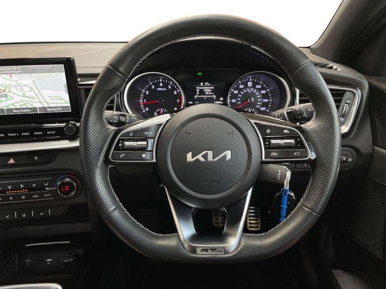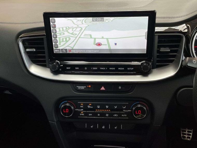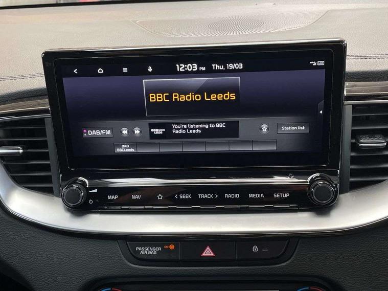 10.25" touchscreen satellite navigation, 4.2" supervision colour cluster display, Apple car play/Android Auto with voice control, Bluetooth with Voice Recognition & Music Streaming, Cruise control + speed limiter, Driver Attention Warning (DAW), Emergency call service, Emergency stop signalling system, Forward Collision-Avoidance Assist (FCA) - City/Pedestrian/Cyclist, Kia connect UVO, Lane Following Assist (LFA), Lane keep assist, Manual speed limit assist, Motor driven power steering, Rear parking sensor, Reversing camera system with dynamic guidelines (Integrated into centre fascia screen), Trip computer, Intelligent Stop and Go, 6 speaker audio system, DAB Radio with MP3, Illuminated USB ports, Steering wheel mounted controls, USB Fast Charger in Front Centre Console, USB port for connection of a media device, All-round Electric Windows with Front Auto Up & Down Function, Auto dimming rear view mirror, Automatic defog system, Automatic headlights control, Body colour bumpers, Body colour exterior door handles, Body coloured and dark chrome rear skid plate, Body coloured side sill mouldings, Dark chrome window surround, Electric adjustable/heated/folding door mirrors with LED Indicators, Heated rear window with timer, High beam assist, High gloss black and dark chrome radiator grille, High gloss black door mirrors, High Gloss Black rear spoiler, LED daytime running lights, LED front fog lights, LED Headlights, LED High-mounted Brake Light, LED honeycomb rear light, LED rear combination lights, LED rear fog light, Privacy glass (rear side windows and tailgate), Rain sensing front wipers, Rear side wing doors, Rear wash/wipe, Satin chrome dual exhaust trim, Tinted glass, Wide view drivers door mirror, Windscreen Washer Level Warning, 1 x Front 12V socket, 12V power socket in luggage compartment, 3 seat bench in 2nd row, 3 x passenger assist grips, 60/40 split folding rear seat, All-round height adjustable headrests, Aluminium pedals, Black headlining, Centre console storage box/armrest, Cloth/faux leather upholstery, Cupholders in centre console, Cupholders in rear armrest, Dash illumination dimmer switch, Door courtesy lamps, Driver & Front Passenger Sunvisors with Vanity Mirror Illumination & Ticket Holder, Driver + front passenger electric lumbar support, Driver's seat height adjuster, Dual Height Luggage Area Floor, Dual zone automatic air conditioning, Faux leather door centre trim, Front and rear door storage, Front cabin map light with sunglasses case, Front Passenger Seat Height Adjuster, Front seat back pockets, Gear shift indicator, Heated front seats, Heated steering wheel, Interior door lock/unlock function, ISOFIX Child seat top tethers and anchor fixings, Leather D-Cut steering wheel, Leather handbrake, Luggage area light, Luggage area parcel shelf, Luggage hooks, Rear centre armrest, Rear coat hooks, Satin chrome interior door handles, Single front passenger seat, Tilt/telescopic adjustable steering wheel, All round 3-point seatbelts, Anti-lock braking system (ABS), Brake assist system, Dual front side airbags, Dual horn, EBD - Electronic brakeforce distribution, Electronic parking brake, Electronic stability control (ESC) and vehicle stability management (VSM), Front passenger airbag cut-off switch, Height adjustable front seatbelts, Hill start assist control (HAC), Impact sensing auto door unlocking, Rear door child safety locks, Seatbelt reminder warning, Twin curtain airbags, Twin front airbags, Tyre pressure monitoring system, Alarm system, Engine Immobiliser & Deadlocks, Locking wheel nuts, Remote central door locking with fold away key, Speed sensitive auto door locking, Black high gloss front console garnish & door trim, Satin Chrome Fascia Trim, 17" GT-Line alloy wheels, Tyre mobility kit,