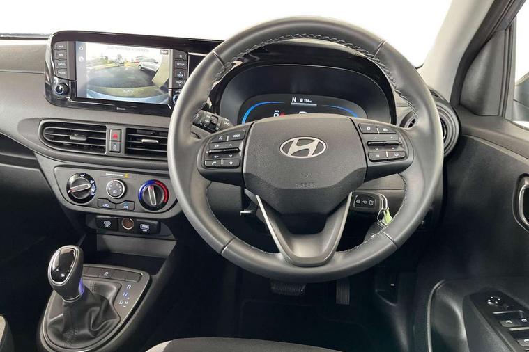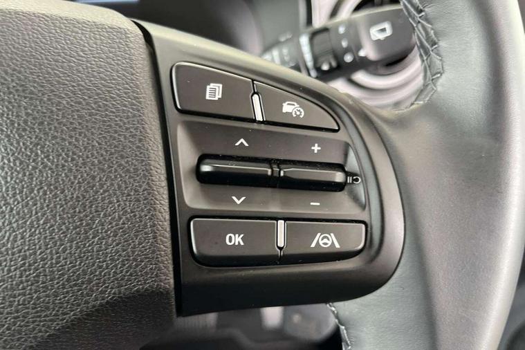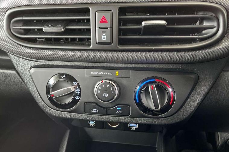 Apple car play/Android Auto, Bluelink mobile remote connectivity, Bluetooth connectivity with voice recognition, Cruise control, Driver attention alert system, eCall emergency call system, Forward Collision-Avoidance Assist (FCA) - Pedestrian/Cyclist, Front USB-C charging and USB-A data, Full-width 4.2" LCD instrument cluster, Intelligent speed limit assist, Lane departure warning system with lane keep assist - LKAS, Lane follow assist, PAS, Rear parking sensors, Rear view camera with guidelines, Roadside assistance, Start/Stop function, Tailgate, Trip computer, 2 front/2 rear speakers, Rear USB-C device charger, Steering wheel audio, phone and cruise controls, 1 speed non intermittent rear windscreen wiper, Black finish on B pillars, Body colour door handles, Body coloured bumpers, Body coloured door mirrors, Electric front windows, Electric rear windows, Electrically adjustable and heated door mirrors, Flat metal emblem, Front grille in matte black, Front intermittent wipers, Halogen daytime running lights, Halogen headlights, Headlights inner with Black Blade design, Heated rear window, High beam assist, Indicator light on door mirrors, Rear roof spoiler with integrated LED brake light, Rear side wing doors, 12v power outlet - front, 3 seat bench in 2nd row, 60/40 split folding flat to floor rear seats, Air conditioning, Auto light control, Bottle holders in front/rear doors + front centre console, Cabin and luggage compartment interior lighting, Cloth upholstery, Driver + passenger vanity mirrors, Driver's seat height adjustment, Driver/passenger sunvisors with ticket holders, Floor mats, Front door pockets, Front Head Restraints - Vertical and Horizontal Adjustment, Glove compartment, Height adjustable steering column, Isofix child seat preparation, Leather multifunction steering wheel, Rear door pockets, Single front passenger seat, Vertical adjustment rear head restraints, 3x3 point rear seatbelts, Airbags - front, front side and curtain airbags, Anti-lock brake system (ABS), Autonomous emergency braking (AEB) with forward collision warning system, Brake assist function, Childproof rear door locks, Electronic stability control, Front and rear seatbelt reminder, Front seatbelt pretensioners, Hill start assist control (HAC), Passenger airbag deactivate switch, Traction control, Tyre pressure monitoring system, Immobiliser, Perimeter alarm, Rear occupant alert, Remote central locking, Second remote key, Speed sensitive auto door locking, 15" Alloy wheels, Tyre repair kit,