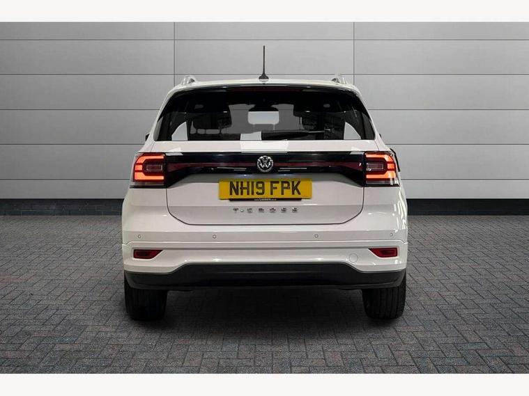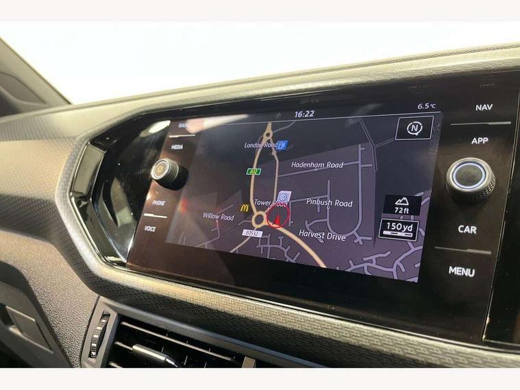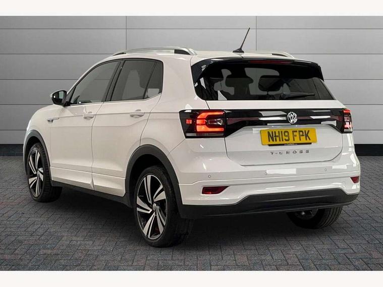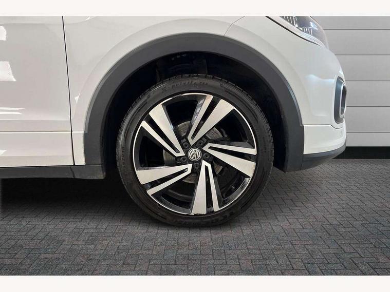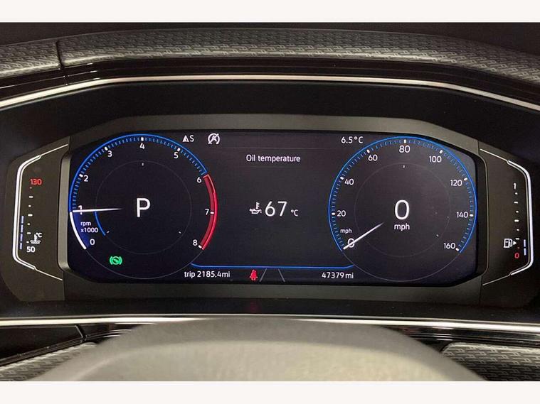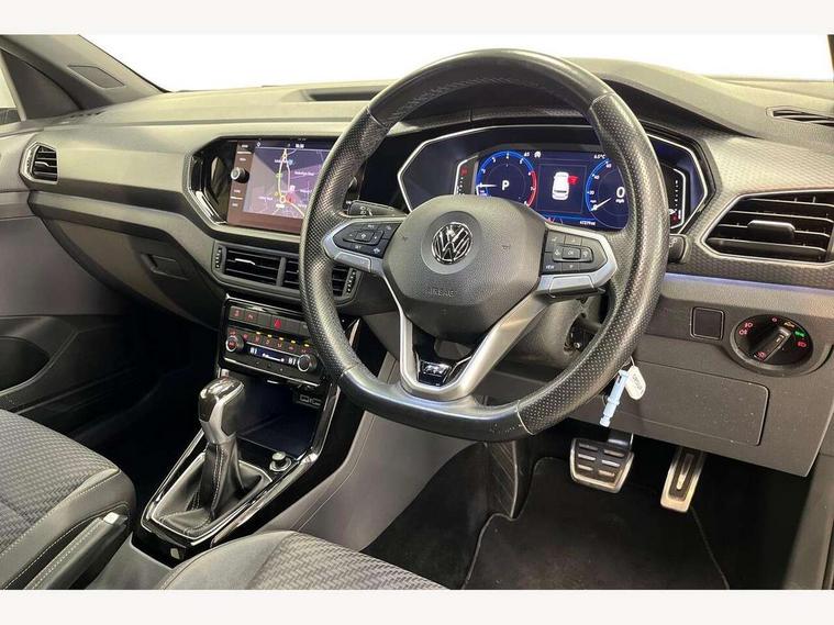 'Lights On' Reminder warning buzzer, Active Info display 10.25" high resolution TFT dash display with customisable menu and information, Adaptive cruise control including front assist, radar sensor controlled distance monitoring system, city emergency braking, cruise control/speed limit, Car-Net App-Connect with VW media control, Discover navigation system with 8.0" colour screen, radio/CD player, European map data, Driver alert system, Dusk sensor, eCall emergency call system, Lane assist with blind spot plus lane keeping system, Low washer fluid warning light, Multifunction computer with visual gear change recommendation for fuel consumption, Power assisted speed sensitive steering, Progressive steering, Side scan blind spot detection, Speedo, rev counter, electronic odometer, trip, service interval display, exterior temperature and fuel gauge, Stop/start system, Warning sound and light for doors and tailgate open, Warning sound and light for front seatbelts unfastened, Battery regeneration during braking, Misfuel prevention device, 2 USB sockets in rear, Composition Media with 8"colour touch screen including DAB/CD drive, MP3/WMA, AUX-in/SD slot, 1 USB port and Bluetooth telephone connectivity, Multi device interface (MDI) with USB connection, Premium USB cable for Apple or Android smartphone compatibility, Simultaneous pairing of 2 compatible mobile devices, Title and cover art display, Automatic dimming interior rear view mirror with rain sensor, Automatic hazard lights activation under emergency braking, Body colour door handles, Body colour door mirrors with integrated indicators, Body colour rear roof spoiler, Body coloured bumpers, Front and rear electric windows, Front fog lights with static cornering function, Galvanised body, Heated rear window, High level 3rd brake light, LED headlights with auto range adjustment + LED daytime running lights, Lower door sills and door pillars in black, Manual coming/automatic leaving home lighting function, Radiator grille with chrome lamelel and bumpers in wagon paint, Rear tail lights LED except turn signals, Rear tinted glass 65% approx light absorbing from B pillar backwards, Rear window aerial, Rear windscreen washer and wiper with interval delay, Reflectors in all doors, Silver roof rails, Stainless steel door sill protection, Tailgate with integrated roof spoiler, Unique R Line badging, Windscreen wipers/ intermittent wipe + 4 position delay, 12V Accessory socket in centre console, 2 Front and rear reading lights incorporating LED technology, 2 Zone electronic climate control with automatic air recirculation, 3 rear head restraints and 3 rear three point seat belts with ECE label, 60/40 split folding rear seat backrest, Aluminium pedals, Black headlining, Carbon flag cloth upholstery, Drawer under drivers seat, Driver and front passenger sunvisor with vanity mirror, Driver's sunvisor with ticket holder, DSG Paddle Shifts, Dust and pollen filter, Front + rear carpet mats, Front centre armrest with storage compartment and two rear air vents, Front comfort seats, Front seat back storage pockets, Front seat R Line logo with rear seat backrest, Front sports seat with height and lumbar adjustment, Glovebox, Heating and fresh air system with 4 stage blower, Height/reach adjust steering wheel, Instrument lighting white adjustable panel illumination, Interior light with delay, Isofix child seat preparation for 2 rear child seats, Luggage compartment cover, Luggage compartment lighting, Moveable and foldable Rear bench seat, Removable luggage cover, Storage compartment in driver and passenger doors, Three spoke multi-function leather trimmed steering wheel and gearknob, Variable boot floor, R Line styling pack - T-cross, 3 point seat belt with electric pre tensioner, Anti-lock Braking System (ABS) with Hydraulic Brake Assist (HBA), Automatic post collision braking system, Driver and front passenger safety-optimised head restraints, Drivers and Front Passengers airbags with front passengers airbag deactivation switch, ESC with EDL, ASR, EDTC and trailer stabilisation function, Extended and proactive pedestrian protection, Front and rear curtain airbags, Front seat side impact airbags, Front ventilated disc brakes and rear disc brakes, Height adjustable 3 point automatic front seatbelts with pretensioners, Hill start assist, Pre crash preventive occupant protection, Rigid safety cell with front and rear crumple zones, Tyre pressure loss indicator, Volkswagen roadside assistance, Alarm with remote central locking and interior protection, Central locking without safe fuse with radio remote control and 2 radio folding keys, Child security locks in rear doors, Electronic engine immobiliser, Remote tailgate unlocking using key fob, Race decorative inserts in dash and doors, 18" Nevada black alloy wheels + anti theft wheel bolts,