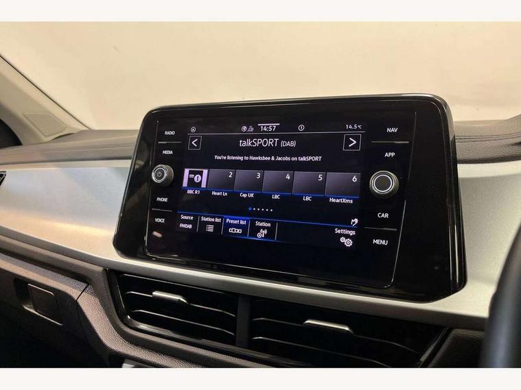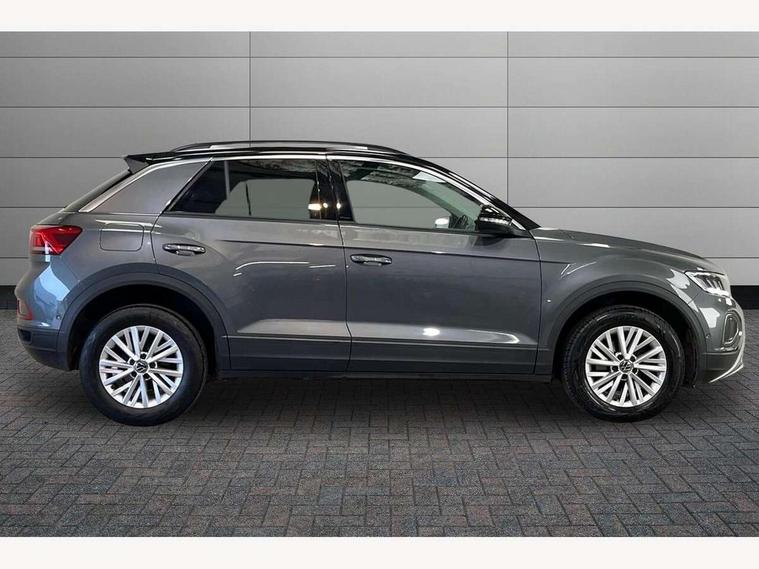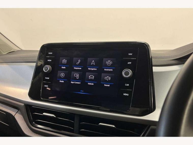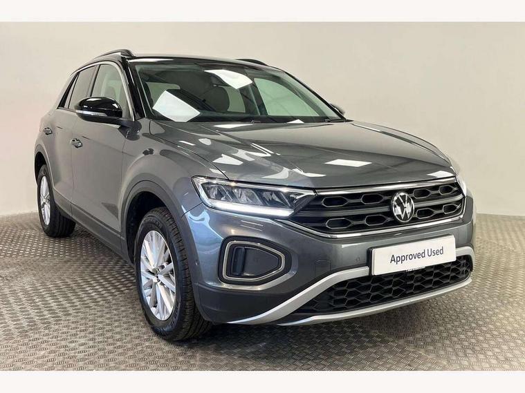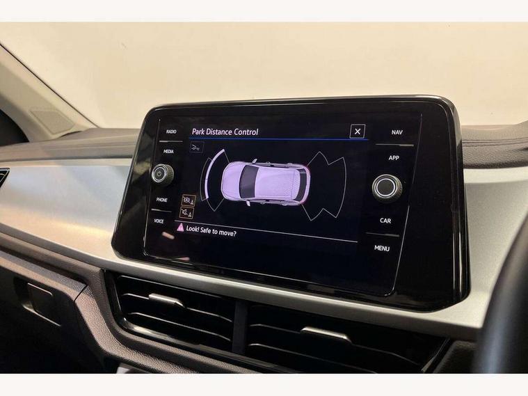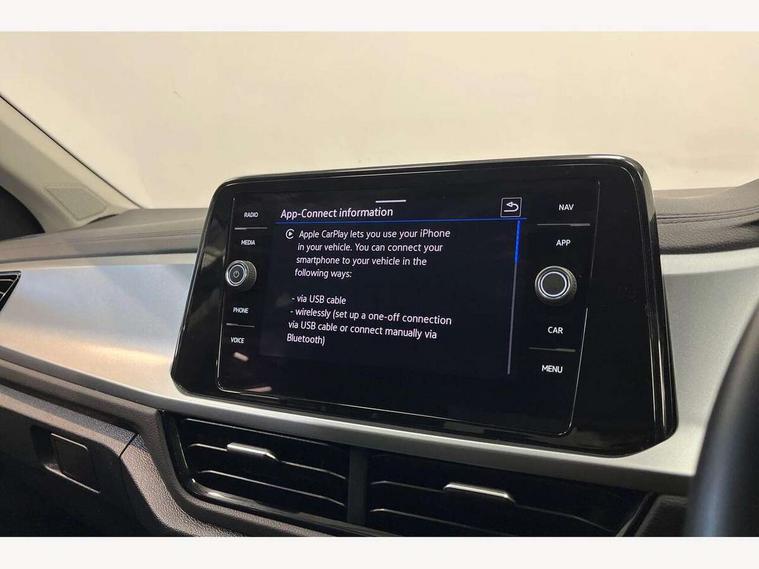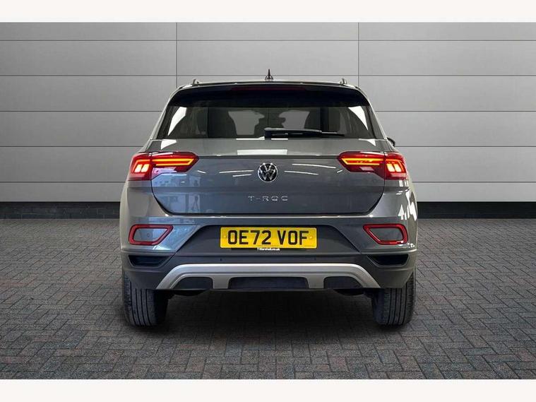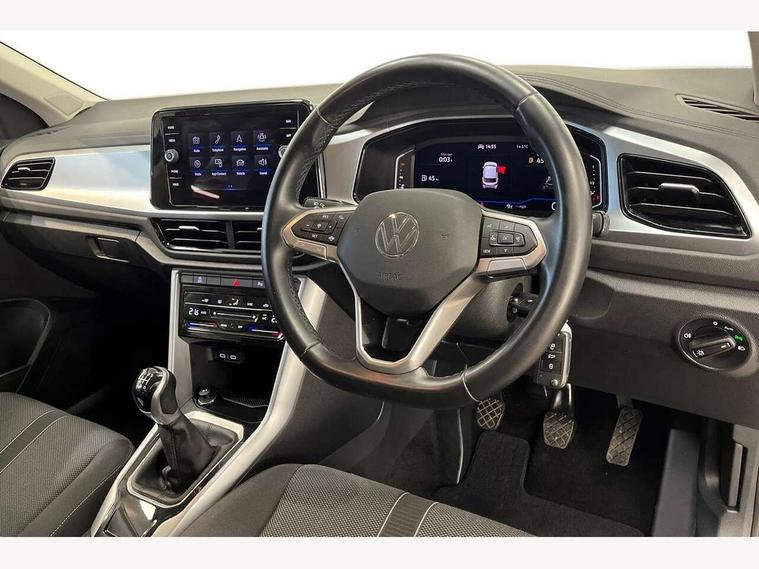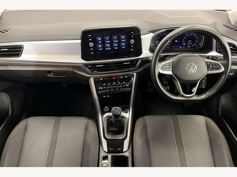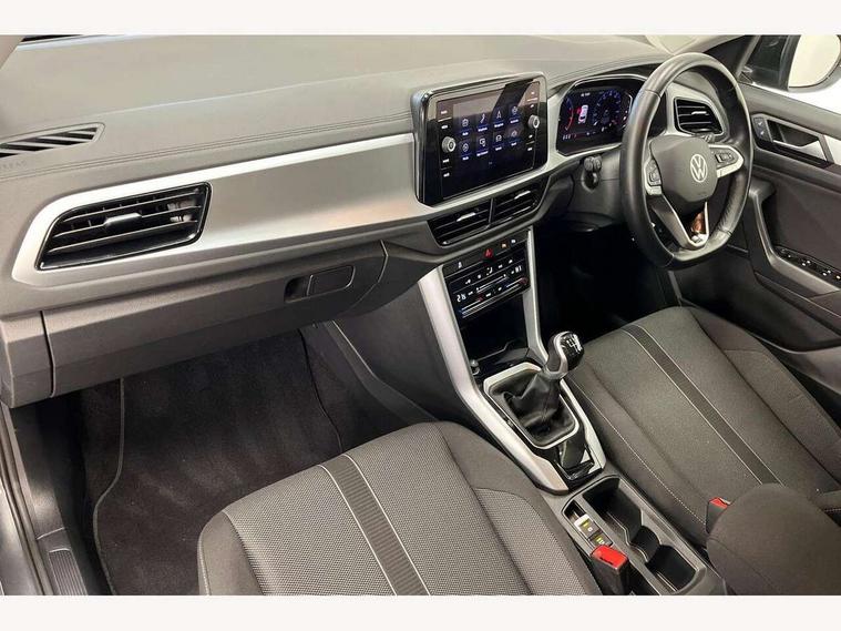 Bluetooth mobile phone interface, Driver alert system with fatigue detection, Driver tips and journey analysis, Emergency call service, Lane keeping system Lane Assist, Modified key software - reduce switch off time for key status change to Long no motion, Online services, Park assist including front and rear parking sensors, Power assisted speed sensitive steering, Service interval indicator, Tailgate/trunk lid release from outside, Think blue trainer driver tips and journey analysis, Warning sound and light for front seatbelts unfastened, Wireless app connect, Battery regeneration during braking, Front shock absorption, Rear shock absorption chassis with increased ride height, Start/stop function with battery regeneration, DAB Digital radio, Diversity antenna for FM reception, Front and rear 6 speakers, Music playback - MP3, WMA and AAC files, Premium USB cable in choice of either Apple or Android smartphone compatibility, SD card slot, Simultaneous pairing of 2 compatible mobile devices, Title and cover art display, We Connect and We Connect Plus functionality, 3rd brake light, Auto dimming interior rear view mirror, Automatic hazard lights activation under emergency braking, Automatic headlight control with LED separate daytime running lights with coming/leaving home function, Black roof rails, Body coloured bumpers and radiator grille with chrome trim and front fog lamps with chrome bezel, Body coloured exterior mirror housings and door handles, Extended roof spoiler, Exterior mirrors aspherical on driver side, convex on front passenger side, External USB type C socket and charging sockets, Front windscreen wiper with intermittent wipe and 4 position delay, Heated rear window, LED Headlights, LED rear combination lamps, LED rear number plate lights, LED tail lamp rear comination lamps, Power windows with comfort operation and circuit breaker, Rain sensor, Rear exhaust tailpipe, Rear fog light on one side and reversing lights on both sides, Rear side wing doors, Rear wash/wipe with intermittent wipe setting, Remote electrically foldable door mirrors, puddle lights and reverse activated passenger's door mirror, 12V power socket in centre console, 3 rear head restraints, 3 seat bench in 2nd row, 4 load lashing points in luggage compartment, Air care climatronic air conditoning system with active combination filter and 2-zone temperature control, Ambient lighting with mirror logo projection, Cloth upholstery, Door and side trim panel in cloth, Drawer under drivers seat, Driver/front passenger seat height adjustment, Front centre armrest, Front comfort sports seats, Front cupholders x 2, Front reading light, Instrument lighting, white adjustable panel illumination, Interior light delay, Isofix child seat preparation, Leather gearshift handle, Load-through provision with cup holder when folded down ('Unsplit rear seat bench, split folding backrest, with centre armrest), Luggage compartment lighting, Lumbar support for driver's and front passengers seat, Non-folding front passenger seat backrest, Single front passenger seat, Storage compartment in left and right luggage area, Storage compartment in rear doors, Storage compartments in driver and front passenger doors, Sunvisors with illuminated vanity mirrors, Variable boot floor, height adjustable and removable, Driver assistance pack without proactive passenger protection - T-Roc, 3 point height adj front seatbelts + pretensioners, 3 point seatbelts in outer rear with ECE label, ABS, Child locks on rear doors, Driver and front passenger airbag with front passenger airbag deactivation, Driver and front passenger safety-optimised head restraints, Drivers seatbelt reminder, Electronic parking brake, Electronic Stability Control (ESC) inc EDL (Electronic Differential Lock) and ASR (Traction Control), Front and rear passengers curtain airbag system including front side airbags, Front assist with city emergency braking and pedestrian monitoring, Front disc brakes, Front seat side impact airbags, Hill start assist, Predictive pedestrian protection, Rear disc brakes, Single tone horn, Tyre pressure loss indicator, Volkswagen roadside assistance, Alarm with interior protection, Anti-theft alarm system with interior monitoring, backup horn, and towing protection, Remote central locking with SAFELOCK, radio remote control with 2 remote control folding keys, Pewter matt decorative inserts for intrument panel, centre console and door panels at the front, Trims for alloy wheels,