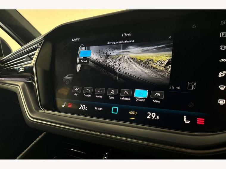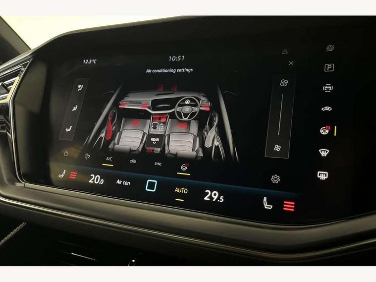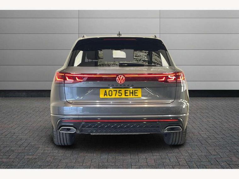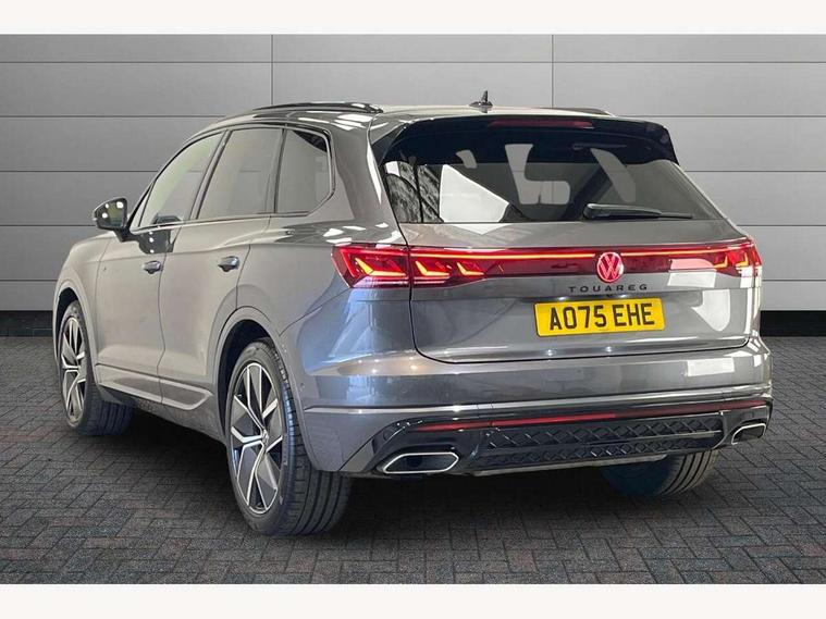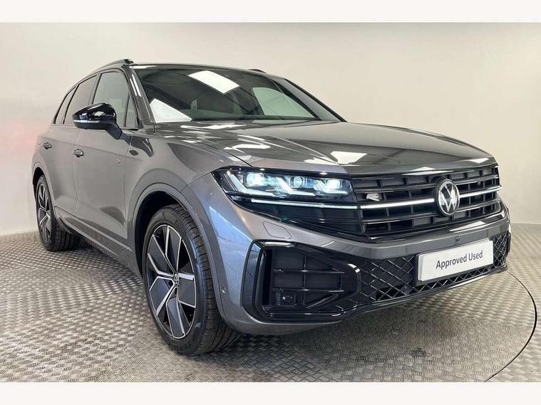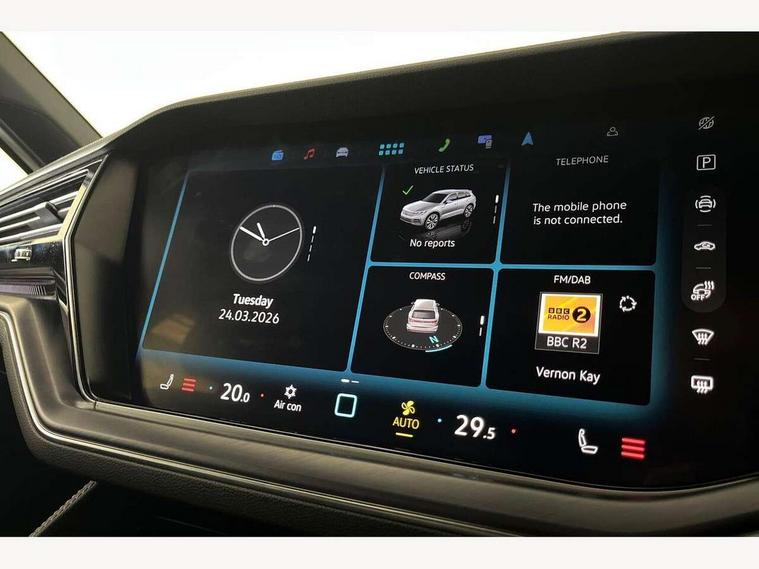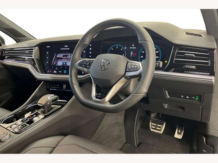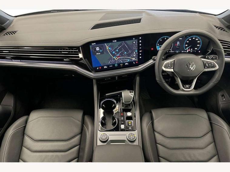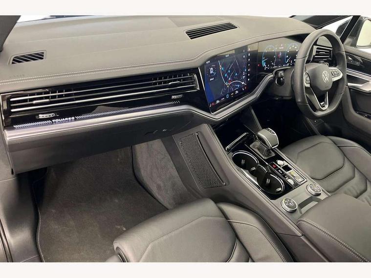 15" Screen Top infotainment system Premium (MIB3), Adaptive cruise control, Advanced driver attention and drowsiness monitor, Driver profile selection, Dynamic road sign display, E-Sim card for online connectivity, eCall emergency system, Innovision cockpit, Intelligent park assist, Mobile phone interface with inductive charging, Multi-colour Active Info display, Park Assist - Sensor controlled steering aid to assist parallel or bay parking, PAS, Warning signal and warning light for front and rear seatbelts not fastened, Wireless app connect, Adaptive chassis control, DAB Digital radio, Diversity antenna for AM/ FM reception, We Connect and We Connect Plus functionality, Automatic coming/leaving home lighting function, Automatic headlights, Black door mirrors, Black style comfort bumpers, Dynamic headlight range control with dynamic cornering light, Electric front tilt/slide panoramic sunroof and fixed rear sunroof, Electrically power adjustable, heated, folding, auto dimming, front passenger exterior door mirror lowering function, External USB type C socket and charging sockets, Gloss black roof rails, HD LED Matrix beam plus digital headlight projection with variable light distribution, Headlight washers, Highway light, LED 3rd brake light, LED daytime running lights, LED rear combination lamp with variable lighting functions and special styling, Poor weather light, Rain sensor, Rear exhaust tailpipe, Rear fog light with back up light on both sides, Rear light bar and illuminated logo, Rear side wing doors, Rear wiper, Stainless steel door sill protection, 12V socket in centre console, 3 rear headrests, 3 seat bench in 2nd row, 4 zone climate control, Airbag label on sun visor and B-pillar, Brushed stainless steel pedals, Double sun visors with illuminated vanity mirrors, Front + rear carpet mats, Front centre armrest, Leather wrapped multifunction sports steering wheel, heated, with touch control and shift paddles, Mechanical rear seat release, Power adjustable lumbar support in front, Power seats in front, right side with memory features and seat cushion depth adjustment, Rear seat backrest and split folding with center armrest, Single front passenger seat, Memory pack plus - Touareg, 3 point seatbelts, outer rear with ECE lable, ABS, Child locks on rear doors, Curtain airbags, Driver and front passenger safety-optimised head restraints, Driver/Front Passenger airbags, Extended pedestrian protection measures, Front assist, Front seat side impact airbags, Generative braking with start and stop system, Height adjustable 3 point front seatbelts with pre tensioners, Passenger airbag deactivate switch, Three 3 point rear seatbelts, Two tone horn, Warning triangle and first aid kit, Alarm system with interior protection, Easy open and close sensor controlled luggage compartment opening and closing with remote unlocking, Keyless Access Keyless locking and starting system with SAFELOCK, Aluminium decorative inserts, Black decorative trims, Gloss black decorative inserts in centre console, Tool kit,