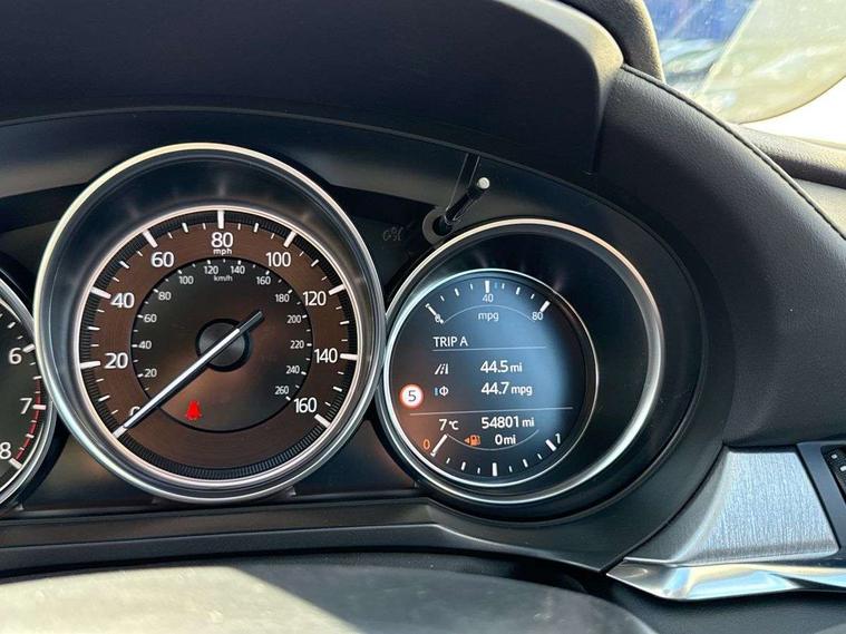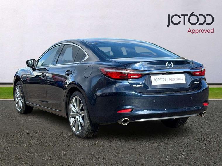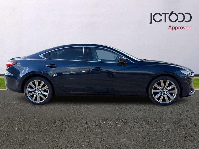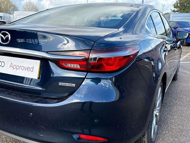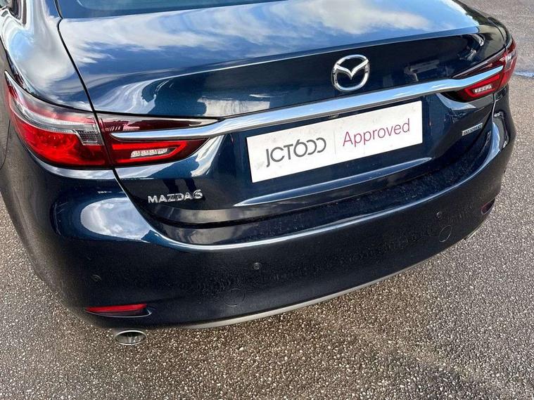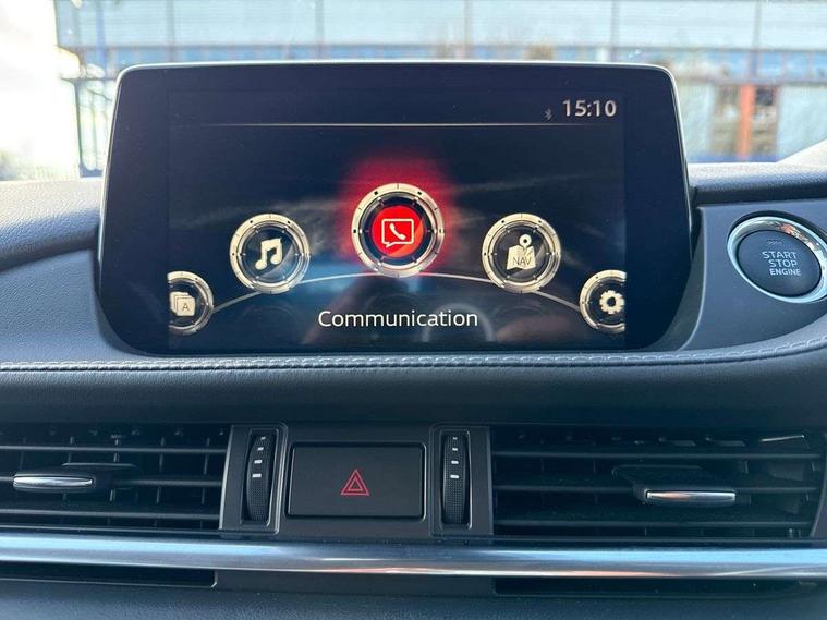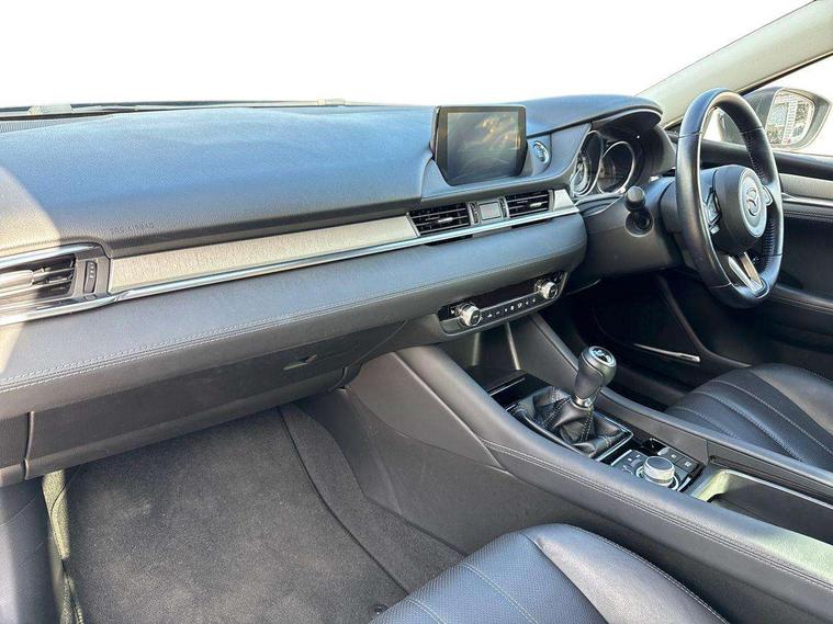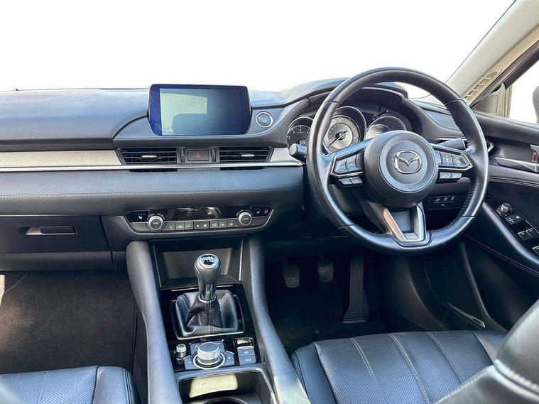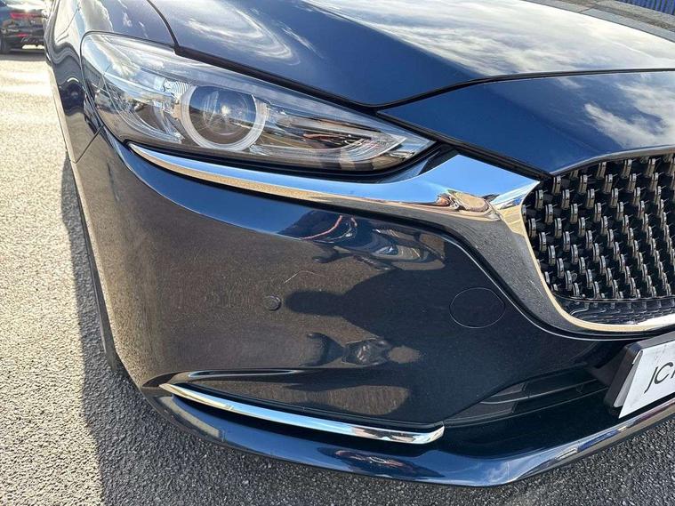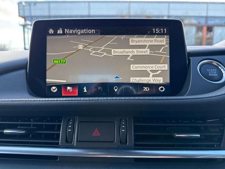 8" touchscreen with multimedia commander, Adjustable speed limiter, Audio transfer from bluetooth devices, Blind spot monitoring with rear cross traffic alert, Bluetooth connectivity with voice control, Colour head up display, Colour TFT display with speed, traffic signs and cruise control information, E-call, Electric power steering, Emergency stop signalling system, Engine start/stop button, Front and rear parking sensors, Intelligent speed assist, Lane keep assist system (LAS) with Lane departure warning system (LDWS), Radar cruise control, Reversing camera, Satellite navigation system with european maps, Service indicator, Traffic sign recognition, Trip computer, Wireless Apple CarPlay and wired Android Auto, I-ELOOP, i-stop, 2 USB ports, Additional USB connection in rear, Auxiliary input socket, Mazda Multimedia System - AM/FM/DAB radio, MP3 with 11 Bose speakers, Steering wheel mounted audio controls, Adaptive front lighting system, Auto dimming rear view mirror, Body colour door handles, Body colour rear roof spoiler, Body coloured door mirrors, Body coloured rear bumper, Chrome garnish front bumper mouldings, Coming/leaving home lighting function, Dual chrome exhaust, Dusk sensitive headlamps, Electric front/rear windows/one touch facility, Electrically adjustable/heated/auto power folding door mirrors with integrated indicators, Gloss black grille inserts, High beam control, LED auto leveling headlights, LED front fog lights, Privacy glass, Rain sensing front wipers, Rear boot, Rear bumper with black lower mouldings, Rear fog lights, Rear side wing doors, Scuff plates, Signature LED daytime running lights, Signature LED rear combination lights with LED rear turn lights, Windscreen wiper de-icer, 12V power socket in centre console, 2 cupholders, 3 height adjustable rear headrests, 3 seat bench in 2nd row, 60/40 split folding rear seat, Driver seat with power slide, recline, height and lumbar adjustment with memory, Driver, Front passenger and two rear grab handles with coat hooks, Driver/passenger sunvisors with ticket holders + vanity mirrors, Dual zone climate control, Folding rear centre armrest with USB input, Front armrest with storage bin, Front centre console storage, Front driver and passenger seatback pocket, Front passenger and driver door pockets, Front passenger seat with power slide, recline and height adjustment, Gear shift indicator, Heated front seats, Heated steering wheel, Illuminated glovebox with lock, Interior incandescent lighting, Isofix rear child seat fastenings, Leather steering wheel and gear knob, Leather upholstery, Light roof lining, Luggage compartment lighting, Rear air vents, Roof mounted sunglasses holder, Single front passenger seat, Tilt/telescopic adjustable steering wheel, 3 point ELR front seat belts, 3 rear 3 point seatbelts with ELR, ABS + EBD + EBA, Active bonnet, Active front headrests, DSTC-Dynamic Stability and Traction Control, Dual front airbags, Electronic parking brake with auto hold, Front Advanced Smart City Brake Support (SCBS), Front and rear curtain airbags, Front passenger airbag cut off switch, Front side airbags, G-Vectoring control plus, Height adjustable front seatbelts with pre-tensioners and load limiters, Hill hold control, Manual child lock in rear doors, Seatbelt reminder front and rear, Tyre pressure monitoring system, Automatic door locking, Deadlocking system, Remote central locking, Smart keyless entry, Thatcham category 1 alarm + immobiliser, 19" Bright alloy wheels, Tyre repair kit,