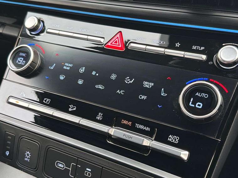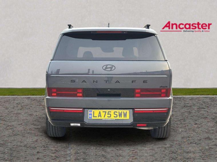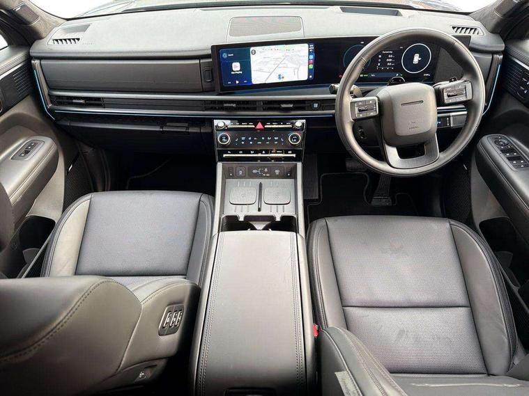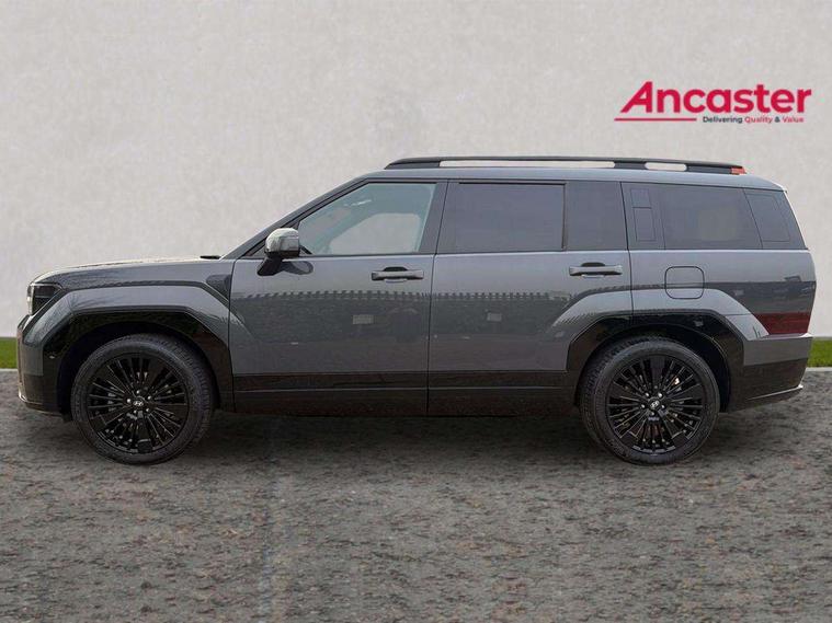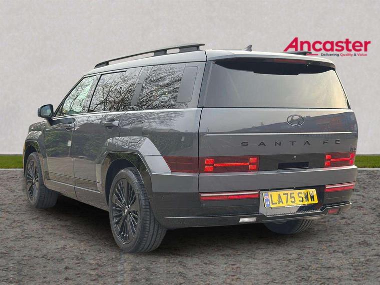 12.3" Drivers supervision instrument cluster with LCD display, 360 degree parking sensors, Blind spot collision avoidance assist (BCA), Blind spot view monitor (BVM), Bluelink and Wireless Apple Carplay/Android Auto, Bluetooth connectivity with voice recognition, Drive mode selector, Driver status monitor (DSM), Dual wireless phone charging pad, Emergency services call system, Forward collision avoidance assist (FCA 2.0), Head up Display, Highway drive assist 2 (HDA 2), Intelligent speed limit assist (ISLA), Lane departure warning system (LDW), Lane Follow Assist 2 (LFA 2), Lane keeping assist (LKA), Low washer fluid warning, Navigation based smart adaptive cruise control with stop and go, Over the air software updates (OTA), Parking Collision Avoidance Assist-Reverse (PCA-R), Power assisted steering, Remote smart parking assist, Safe exist assist (SEA), Smart electric tailgate with hand's free opening function, Surround view monitor, Self levelling suspension, Shift by Wire Gear Selector (SBW), 12.3" Touchscreen display with satellite navigation, 2nd Row USB C Ports x2 Charging, 3rd Row USB C Ports x2 Charging, Front USB C port 1 charging and 1 data/charging, Premium BOSE sound system with 12 speakers and subwoofer, Steering wheel audio, phone and cruise controls, Automatic headlights with dusk sensor, Automatic windscreen wipers with rain sensor, Black Styling (Skid plate, Fender upper garnish, Door side garnish, C/D pillars, Rear bumper moulding, DLO), Body colour bumpers, Digital centre mirror, Dynamic welcome lights, Electric adjustable/heated/auto power folding door mirrors, Front and rear electric windows, Heated rear window, Hidden C pillar assist handle, Hidden rear wiper, High beam assist, LED daytime running lights, LED Headlights, LED indicator lights, LED indicators in door mirrors, LED positioning lights, LED taillights, LED third brake light, Manual rear door blinds, Rear side wing doors, Rear windows and tailgate privacy glass, Roof rails, Solar glass windscreen and front windows, Windscreen acoustic film, Windscreen auto defog function, 2nd and 3rd row center armrest with cupholder, 3rd row head restraints, Centre rear head restraint, Driver and front passenger premium relaxation seats, Dual zone climate control air conditioning, Electrically adjustable front seats with 2 way electric lumbar support, Front head restraints, Front seats with memory, Heated front seats, Heated rear seats, Height and reach electrically adjustable steering column, Leather wrapped heated steering wheel, Luggage cover, Luggage hooks, Luggage net, Multi colour LED ambient lighting, Nappa leather upholstery, Rear head restraints, Single front passenger seat, Split folding (50/50) third row seats, Split folding (60/40), sliding and reclining second row seats, Sun Visors with driver and passenger illuminated vanity mirrors, Two front cup holders, UV-C Tray, Ventilated front seats, Trailer wiring pack - Santa Fe, 3 point seatbelts on all seats, Adjustable regenerative braking paddle shifters, Airbag - Front, front side, curtain and centre front airbags, Anti-lock brake system (ABS), Dynamic brake control, Electric parking brake with auto hold function, Electronic Stability Control (ESC), Hill start assist control (HAC), Manual child lock in rear doors, TSA (Trailer Stability Assist), Tyre pressure monitoring system, Immobiliser, Smart Key - Keyless entry with Power On/Off button, Black ink interior decals, 20" Black calligraphy alloy wheels, Tyre mobility kit,