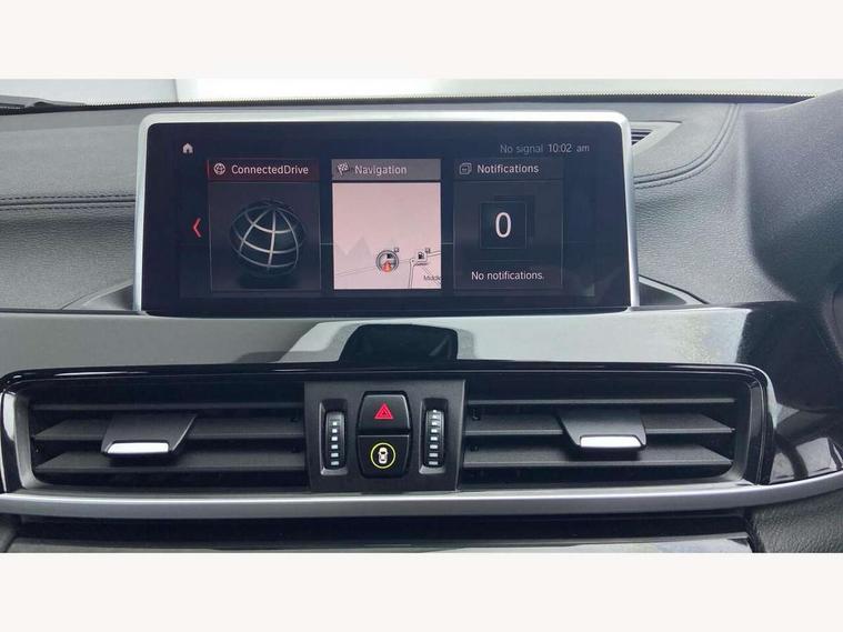 Active Guard incl speed limiting and lane departure functions with auto steering, and front collision warning with brake intervention, Apple car play, Automatic powered tailgate, Bluetooth hands free facility with USB audio interface, BMW Online services, BMW remote services, BMW Teleservices, Brake pad wear indicator in front and rear, Check Control warning system for monitoring of lights and door/luggage compartment open warning, Electric Power Steering (EPS) with Servotronic, Electro hydraulically controlled multi plate clutch in rear axle, Energy efficient operating strategy, Front axle single joint with specific axle kinematics to minimise drive influences on steering + provide increased rigidity agile driving behaviour, Instrument cluster with black optic and 5.7" colour display + speedometer + tachometer + fuel gauge + instant fuel economy, Lights on warning by audio warning signal when ignition is switched off, On board computer - average speed+fuel consumption, service interval, clock/date, odometer/trip meter, outside temperature display and ice warning, Optimum shift indicator, Personal Profile, Real time traffic information, TMC for lifetime of vehicle, Variable and stepless distribution of drive torque between front and rear axle, 12V compressor with integrated sealant injection bottle and hose, Anti roll bar front and rear, Balancer shaft, Drive performance control with ECO PRO comfort + sport mode, Electronic differential lock, Performance Control, Sport automatic transmission, Transmission of power to rear axle via front axle differential and two-part cardan shaft, Twin tube gas filled shock absorbers with degressive characteristic curve, Variable vane geometry, Bluetooth audio streaming, BMW professional radio with CD player, DAB Digital radio, Steering wheel mounted audio/telephone controls, Adjustable headlights, Aero curtain, Automatically dimming rear view mirror, BMW badge on bonnet, tailgate with integrated tailgate release and C pillars, Body colour bumpers with black insert, Body colour door handles, Body colour front air intake slats, Body colour mirror caps, Body colour roof trims, Chrome exhaust twin tailpipe round 90mm in left and right split, Chrome kidney grille with black vertical slats, Clear lenses direction indicator lights, Direction indicator side lights integrated in exterior mirrors using LED technology, Door cladding, side sill covers and wheel arch trims in matt black, Door mirror integrated indicators, Dynamic brake lights, Electrically adjustable and heated door mirrors glass aspheric on driver's side and convex on passenger side, Fingertip control / anti-trap function on electric window, Front and rear bumper system, Front and rear electric windows, Green tinted heat protection glazing, Heated windscreen washer jets, High gloss black front side air intake with matt black insert, High gloss black in window frame, recess covers and B-Pillar trim, High gloss shadowline in mirror frame and B-Pillar trim, High level third brake light, LED headlights with extended contents - cornering, high beam assist, LED day running lights with dynamic beams-through for urban and motorway, Lightweight engineering, Model designation in left tailgate, Rain sensor with automatic headlight activation, Rear fog lights, Rear tail lights with LED technology and 3D design, Rear window aerial, Rear window wiper with wash/wipe function, Reversing light in rear light cluster, Shark fin antenna, Visible VIN plate, Welcome lighting, 3 spoke sports leather multi-function steering wheel with gear shift paddles, 40:20:40 manually split folding rear seat with two tilt positions for backrest, Ambient light in front centre console/cup holder area, Armrest in centre section of rear seat backrest and folding, Automatic two zone climate control air conditioning, Child seat ISOFIX attachment for two outer rear seats and front passenger seat with anchorage points, Conditioned based service, Contrast stitching on centre console and mid section of dashboard to match upholstery seam, Driver/passenger sunvisors with ticket holders, Floor mats with contrasting stitching on dashboard and centre console, Front and rear door armrests, Front armrest, Front axle always driven, Front head restraints, Front sports seats, Glovebox with light, Interior light in front centre interior mirrors and rear centre auto interior light activation when door is opened when ignition switched off, Luggage compartment lighting, Luggage compartment loading edge with stainless steel insert, Rake/reach adjustable steering wheel, Retaining strap on the left side of the luggage compartment, Three rear headrests, Extended storage pack - X2, 3 point seatbelts on all seats, front pyrotechnic belt tensioners, stopper and belt force limiters, rear coded belt buckles, Airbags - Front driver and passenger, front and rear head, front side, curtain head protection, Anti lock braking system (ABS) with brake assist, ASC - Active stability control, BMW emergency call, Brake drying, Brake energy regeneration, Braking readiness, Child proof locking system in rear door, Crash sensor activating central locking release with hazard warning lights and interior lighting + battery safety cut-off, Driver and front passenger seat belt security check, DSC - Dynamic Stability Control, Dynamic Traction Control - DTC, Electrically operated parking brake with automatic drive release, Front passenger airbag deactivation, Front ventilated brake disc, Hill descent control, Hill start assist, Multi collision braking system, Rear brake discs, Side impact protection, Twin horns, Tyre pressure monitor, Warning triangle and first aid kit, 2 remote folding keys, Auto door lock when driving, Central locking switch for all doors, fuel filler cap and luggage compartment, Engine immobiliser, Incorrect fuel protection system, Locking wheel bolts, Remote control Thatcham category 1 alarm, Start/stop button with comfort go keyless engine start and auto start stop 