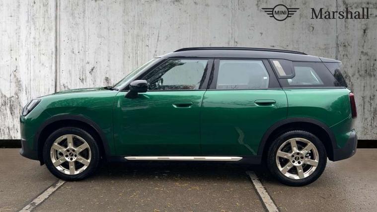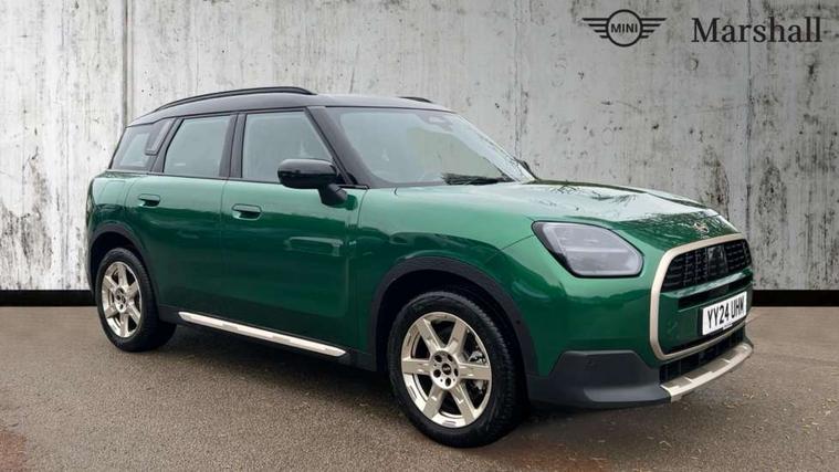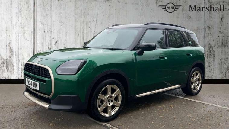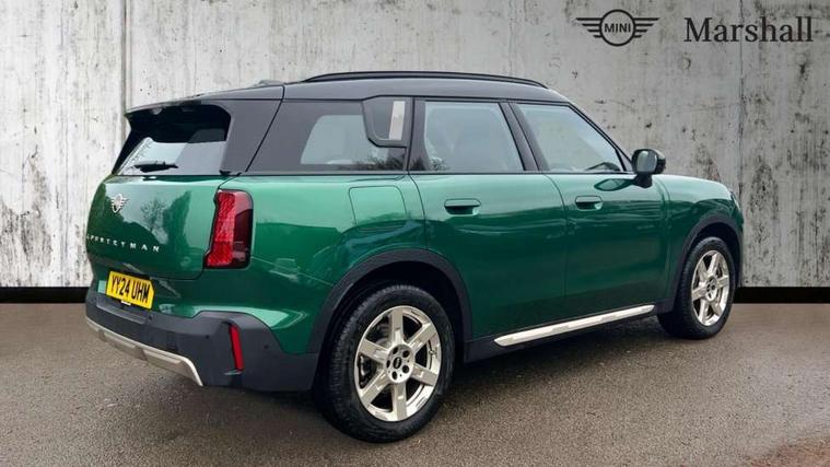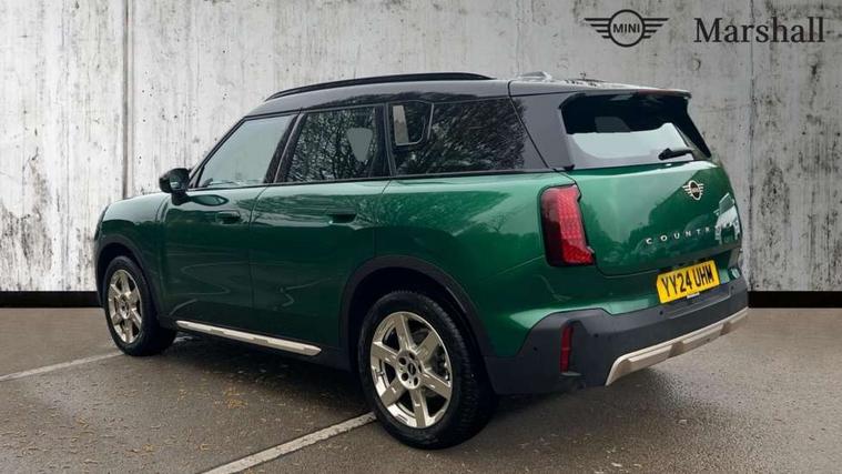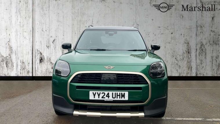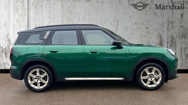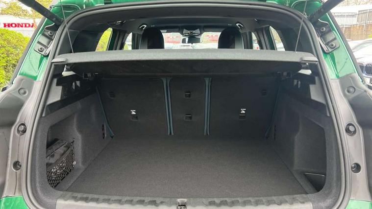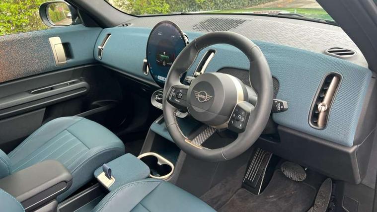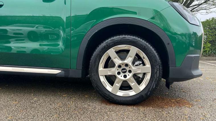 Bluetooth connection, Circular OLED Screen, Compatible mobile phone bluetooth with audio streaming, Cruise Control (DCC), Digital dashboard display, E-call, Electro-mechanical speed dependant steering assistance, MINI Experience Modes, Mini navigation system, MINI TeleServices, Parking assistant in camera and ultrasound based assistance system, rear view camera, parking aid and distance control, Auto transmission with Paddles, 6 speakers, DAB Digital radio, Personal eSim, Auto tailgate, Electric adjustable heated door mirrors, Front and rear electric windows, Heated rear window, LED daytime running lights, LED Headlights, LED rear lights, LED third brake light, Logos in Vibrant Silver, Rain sensor with auto headlights, Rear side wing doors, Rear window wiper, Roof rails, Vibrant silver grille surround, 3 seat bench in 2nd row, 60/40 split rear bench seat, Anthracite headliner, Auto air conditioning, Floor mats, Front armrest, Front headrests, Front sport seats, Heated steering wheel, Height and length steering column adjustment, Lidded storage box in Petrol knit, Rear headrests, Single front passenger seat, Sport Vescin Steering Wheel, Sunvisors with vanity mirrors, Vescin synthetic leather upholstery, Vibrant Silver sill inlay, 3x3 point rear seat belts, 6 Airbags - front, side, head and seat belt tensioners, ABS, DSC - Dynamic Stability Control, Electronic handbrake, Electronic Stability Programme (ESP), Front ISOFIX (iSize), Hill hold assist, Hill start assist, Manual rear child locks, Traction control, Tyre pressure monitoring system, Warning triangle, Alarm system with tilt sensor, monitoring doors, bonnet interior and tailgate, Auto drive away locking, Deadlocking function, Electronic vehicle immobiliser, Locking wheel bolts, Remote control locking, Start/stop toggle with keyless go, Petrol/Brown dashboard knit, MINI Mobility Kit,
