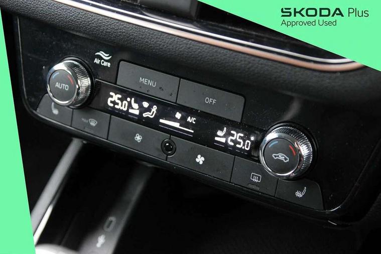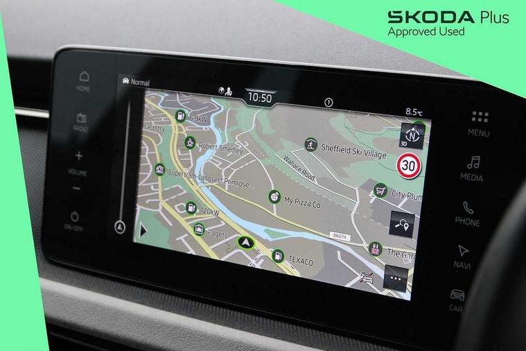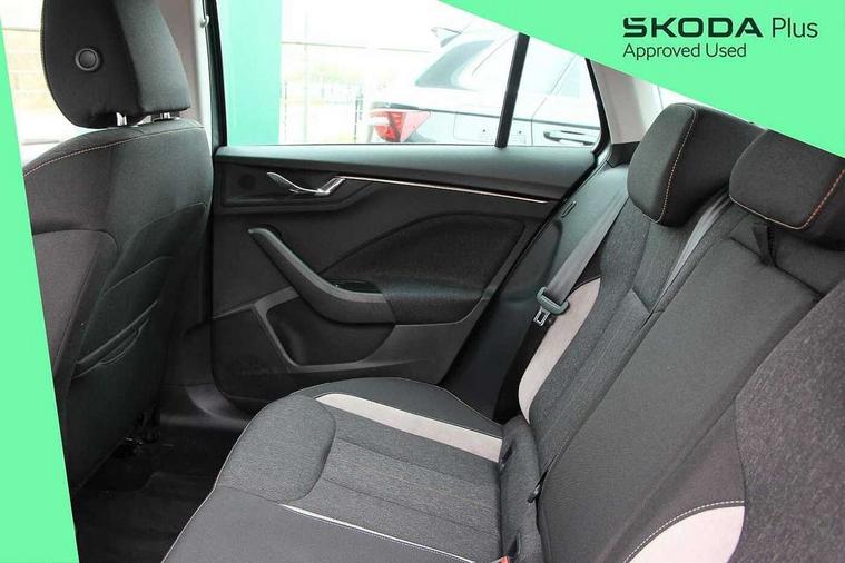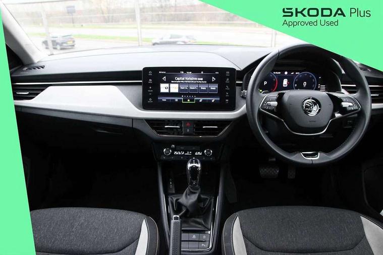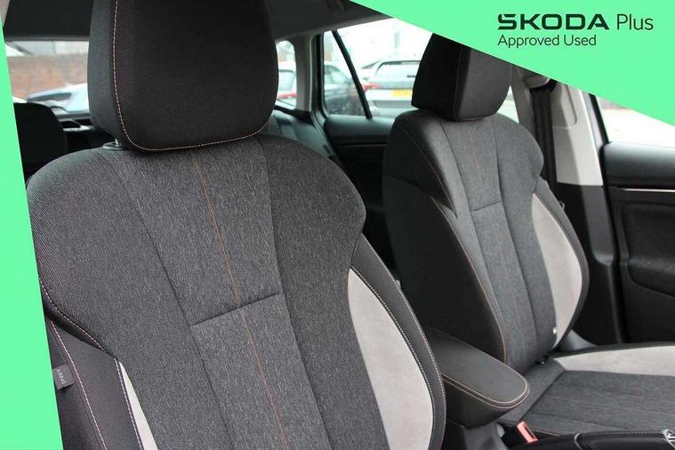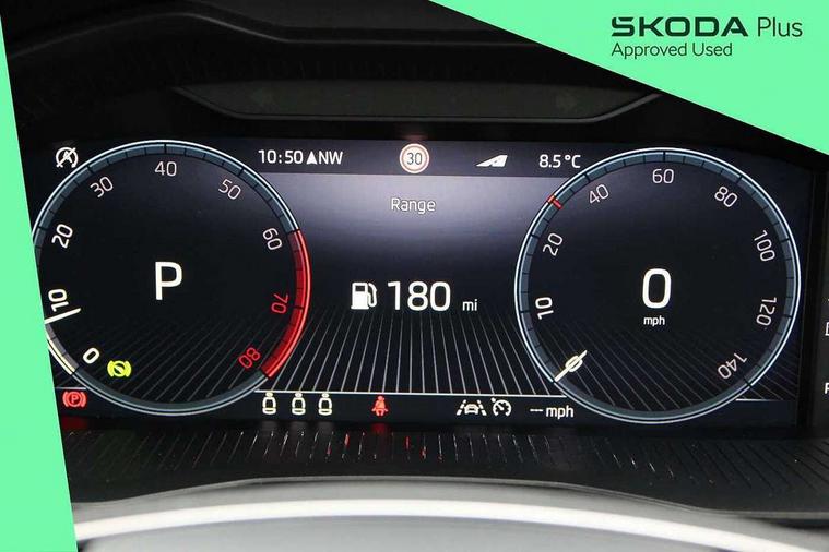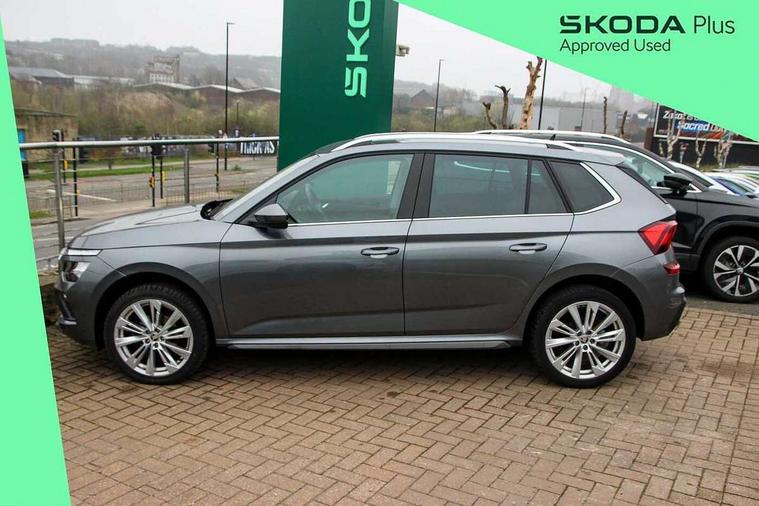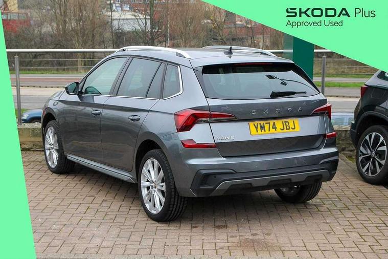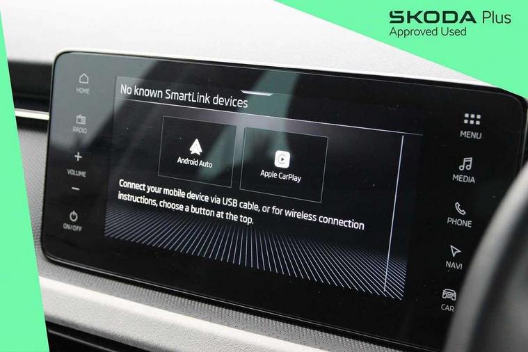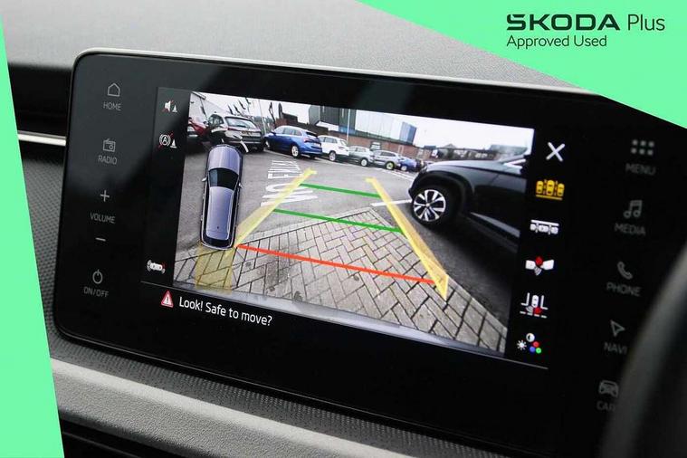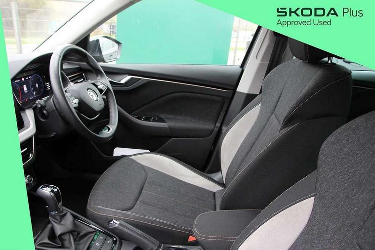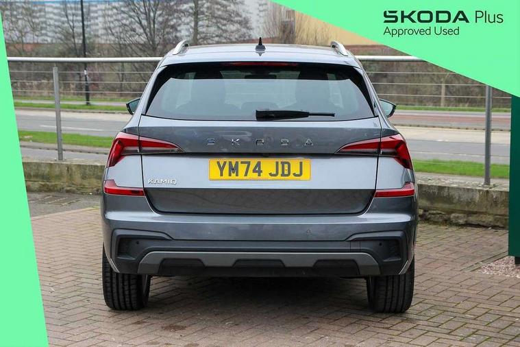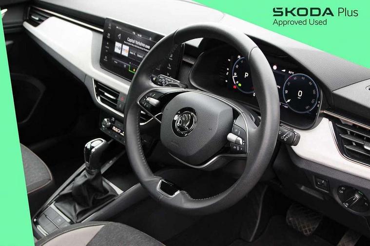 Advanced driver attention and drowsiness monitor, Bluetooth system, E-call, Front assist system, PAS, Rear parking sensors, Rear view camera, Service indicator, Speed limiter, Traffic sign recognition, Virtual cockpit with 10.25" display, Voice control system, Wireless smartlink, 4 USB C ports, 8 Speakers, 9.2" Skoda navigation display, DAB Digital radio, Auto dimming rear view mirror, Automatic headlight control with coming home and leaving home feature, Body colour bumpers, Body colour door mirrors and handles, Chrome grille surround, Chrome roof rails with chrome window surround, Front and rear electric windows, Heated rear window, LED daytime running lights, LED high beam, LED low beam, LED third brake light, Light sensors, Privacy glass, Rear side wing doors, Rear wiper, Ticket holder inside windscreen, 12V socket in luggage compartment, 3 seat bench in 2nd row, Accent black door inserts, Ambient lighting in white/red, Cargo elements, Chrome inner door handles, Copper hotstamping, Driver and passenger sun visors with vanity mirror, Dual zone climate control, Front and rear roof lights, Front centre armrest, Front head restraints, Glove compartment with illumination, Height adjustable driver seat, Height adjustable front passenger seat, Ice scraper, Inner circulation control with pollen filter, ISOFIX on front passenger seat, Isofix preparation for back seats, Leather gearknob and handbrake lever, Lodge cloth upholstery, Manual lumbar support for front seats, Net package and top tether hooks in boot space, Net under rear shelf, Overhead glasses storage compartment, Pocket on the back of both front seats include mobile phone pockets, Rake/reach adjustable steering wheel, Reading lights, Rear centre armrests, Single front passenger seat, Suedia grey decor inserts, Textile floor mats, Third rear headrest, Top tether for front passenger seat, Umbrella in driver's door, Convenience pack - Kamiq, 3x3 point rear seatbelts, Airbags - driver and front passenger, Disc brakes, ESP, Extended and predictive pedestrian/cyclist protection, Front passenger airbag deactivation switch, Front side airbags with curtain airbags, Hill hold control, Manual leather parking brake, Manual rear child locks, One tone horn, Seatbelt reminder for driver an co-driver, Traction control, Tyre pressure monitor, Anti-theft alarm system with interior monitoring, backup horn, towing protection and remote central locking with SAFE system, Anti-theft wheel bolts, Electronic engine immobilizer,