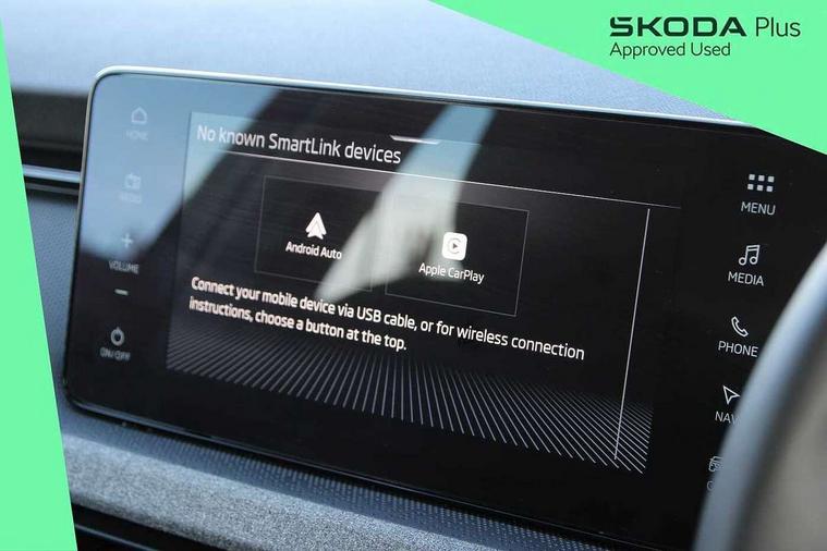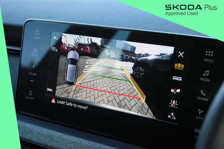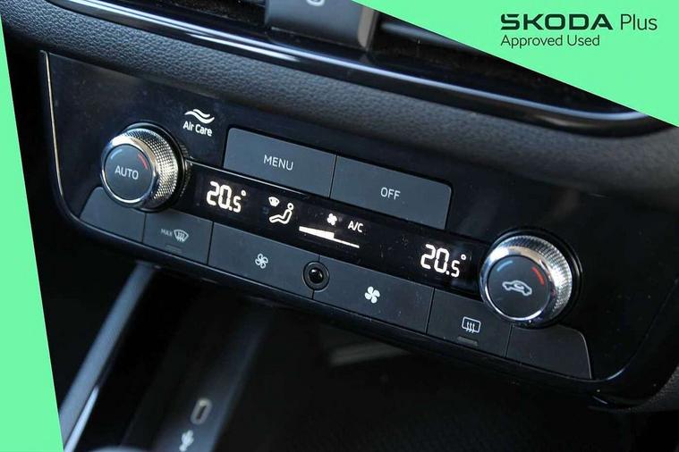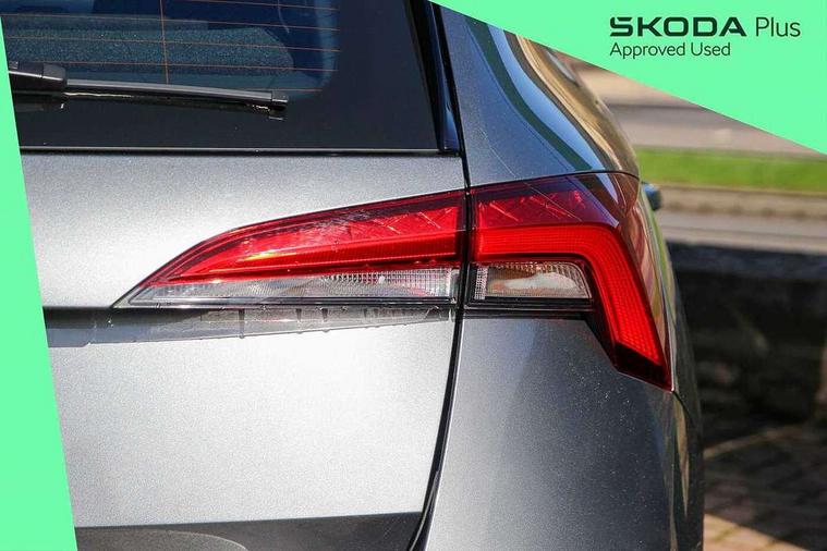 Advanced driver attention and drowsiness monitor, Bluetooth, e-Call (emergency call), Front assist system, PAS, Rear parking sensors, Rear view camera, Speed limiter, Tailgate, Traffic sign recognition, Virtual Cockpit - 10.25" digital display, Voice control system, Wireless smartlink, 4 USB C ports, 8 Speakers, 9.2" Skoda navigation display, DAB radio, Auto dimming rear view mirror, Automatic headlamp activation with Coming home and Leaving home feature, Automatic high/low beam, Body colour bumpers, Body colour door mirrors and handles, Chrome moulding around grille, Front and rear electric windows, Full LED headlights, Heated rear window, LED 3rd brake light, LED brake lights, LED daytime running lights, LED front turning lights, LED high beam, LED low beam, LED taillights, Rear LED fog light, Rear side wing doors, Rear wiper, Tinted windows, Unique dark chrome design logo on alloy wheels, 12V socket in luggage compartment, 3 seat bench in 2nd row, Black / Grey armrest stitching, Black hotstamping, Cargo elements, Chrome inner door handles, Door inserts in satin black, Driver and passenger sun visors with vanity mirror, Dual zone climate control, Front and rear roof lights, Front centre armrest, Front head restraints, Glasses storage in roof liner, Height adjustable driver seat, Height adjustable passenger seat, Ice scraper, Illuminated glove compartment, Inner circulation control with pollen filter, ISOFIX for front passenger seat, Isofix preparation for back seats, Leather gearknob and handbrake lever, Loft cloth upholstery, Luggage net under rear parcel shelf, Manual lumbar support for front seats, Net package and top tether hooks in boot space, Pearl grey ceiling, Pocket on the back of both front seats, incl. mobile phone pockets, Single front passenger seat, Skoda lettering on steering wheel, Textile floor mats, Third rear headrest, Ticket holder, Top tether for front passenger seat, Umbrella in driver's door, 3x3 point rear seatbelts, ABS, Child locks, Curtain airbags and front side airbags, Disc brakes, Driver and front passenger airbags, ESP, Hill hold control, Manual leather parking brake, One tone horn, Passenger airbag switch off function, Seatbelt reminder for driver and front passenger, Tyre pressure monitoring system, Anti theft alarm system with interior monitoring, backup horn and towing protection, Anti-theft wheel bolts, Remote central locking with 2 remote folding keys, SAFE function for remote central locking, Decord pad, door inserts Kota uni,