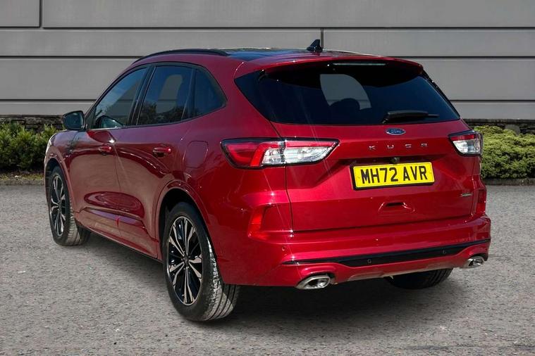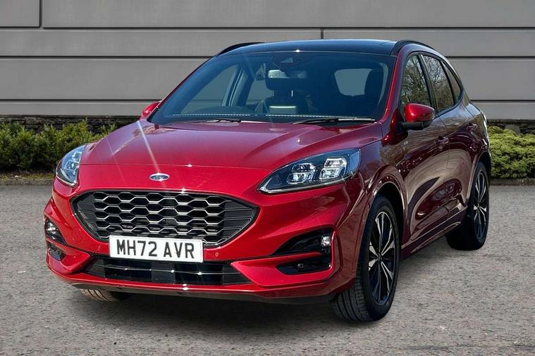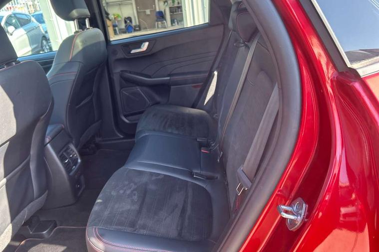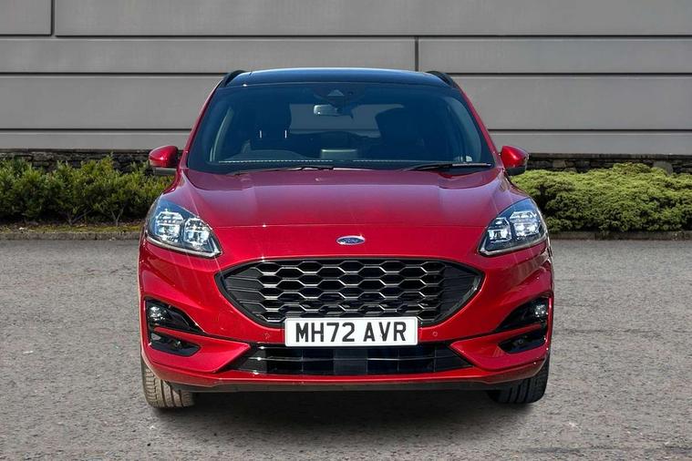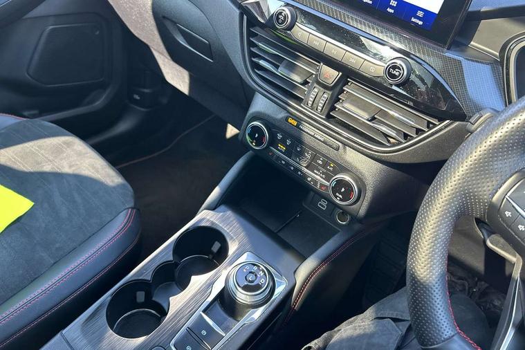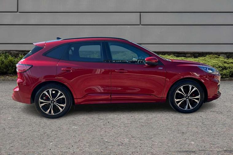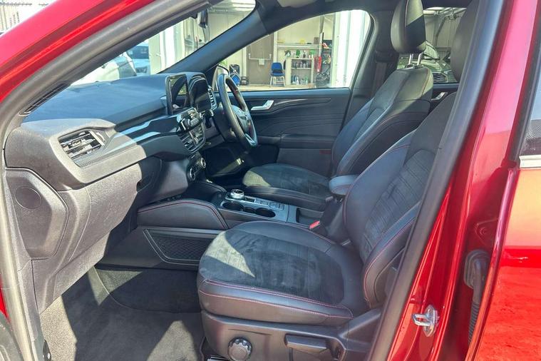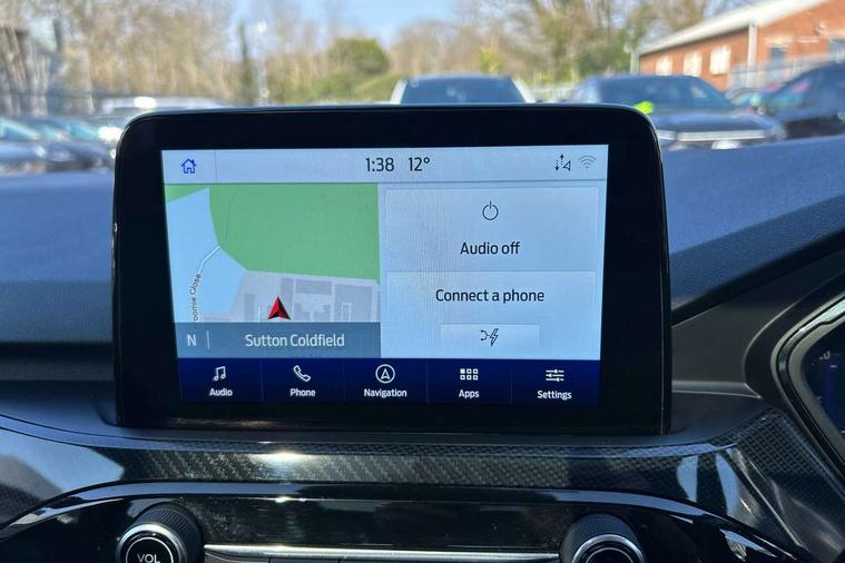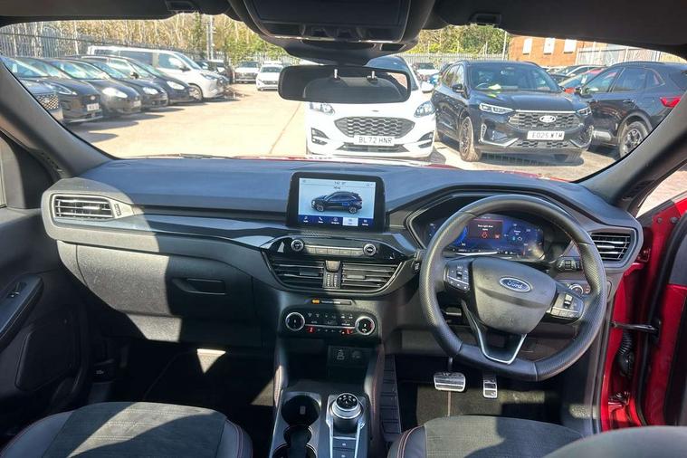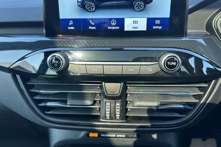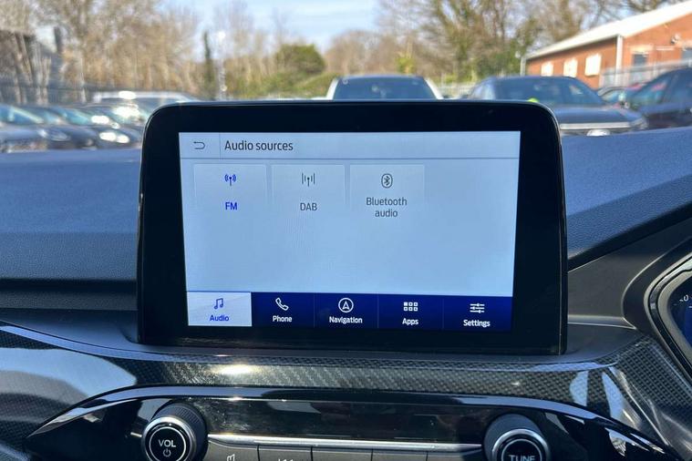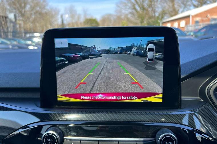 12.3" digital colour instrument cluster, Ford easy fuel, Ford SYNC 3 with 8" TFT LCD touchscreen, App Link, andriod auto/apple carPlay, emergency assistance and navigation with Ford pass connect, Front and rear parking sensors, Hands free power tailgate, Lane keeping aid with lane departure warning, Power assist steering, Rear view camera, Selectable drive modes, Service interval indicator, Sports suspension, Twist beam rear suspension, B&O premium audio system with 10 speakers and subwoofer, 2 USB ports, DAB radio/CD, Auto headlamps with high and low beam, Black roof rails, Day/night rear view mirror, Front LED fog lamps, Large rear spoiler, LED daytime running lights, LED rear lights, Power folding heated door mirrors with puddle lights, Power front/rear windows with global close, Power opening panoramic roof, Privacy glass, Quickclear heated windscreen, Rear side wing doors, Rear wiper, ST Line body styling kit with unique front and rear fascia and bumper, rear painted diffuser, front painted skid plates, dark mesh upper grille, ST Line front scuff plates, Third brake light, Twin exhausts, 10 way power adjustable drivers seat, 2nd row sliding seats with 60:40 split, 8 way manual passenger seat including lumbar support and height adjust, Alloy pedals, Centre console with electronic parking brake, Dark headlining and pillars, Electronic automatic temperature control (EATC), Flat bottomed leather steering wheel in sensico with red stitching, Front and rear head restraints, Heated passenger and driver seats, Heated rear seats, Heated steering wheel, Partial premium touch sensico leather upholstery with black cloth inserts and red stitching, Rear charging point, Single front passenger seat, Sports seats, ST Line front and rear floor mats, 3x3 point rear seatbelts, Airbags - front driver/passenger, front and rear curtain, Drivers knee airbag, Electronic stability control (ESC) and ABS, Ford MyKey Gen 2 safety system, Manual child proof rear door locks, Post collision braking, Pre collision assist with autonomous emergency braking, Rear seat Occupancy alert, Red brake calipers, Tyre pressure monitoring system, Engine immobiliser, Keyless entry and Ford power start button (Keyless start), Locking wheel nuts, Remote powered central double locking doors, Thatcham category 1 alarm,