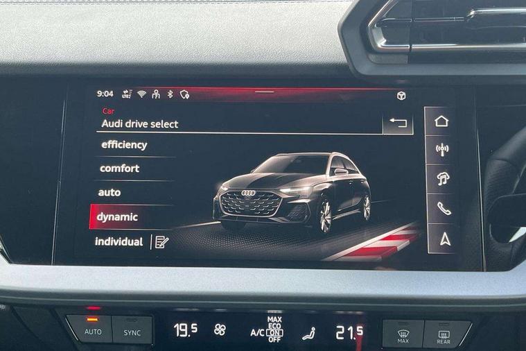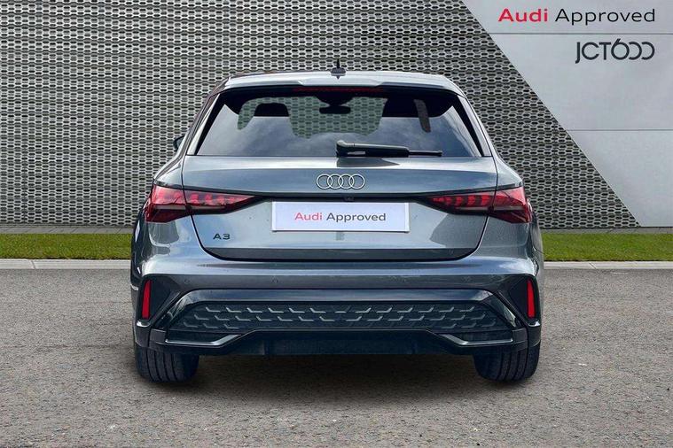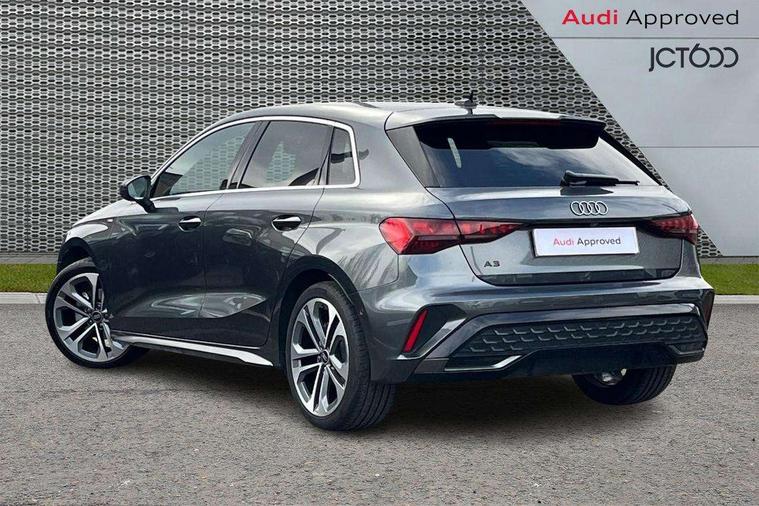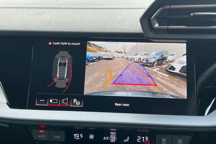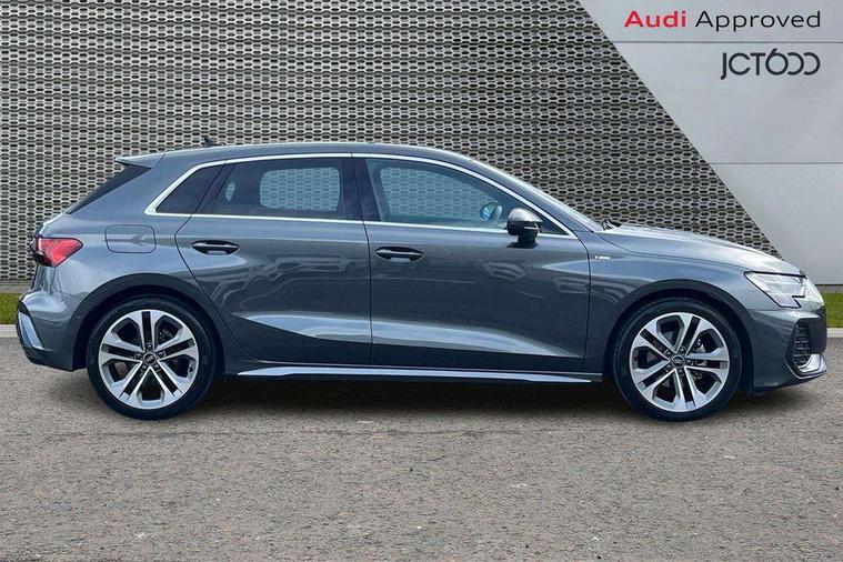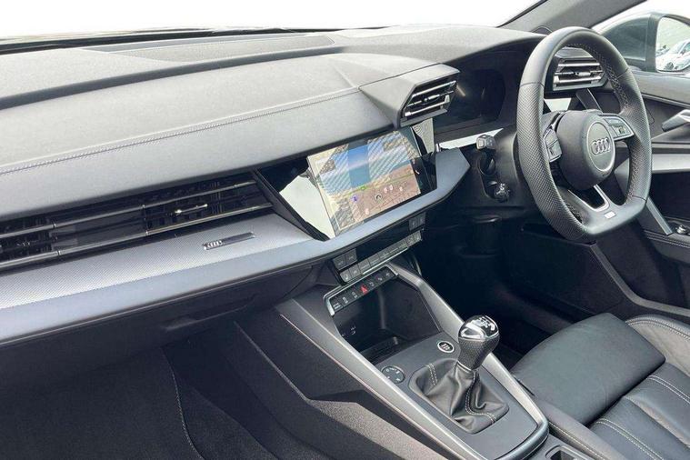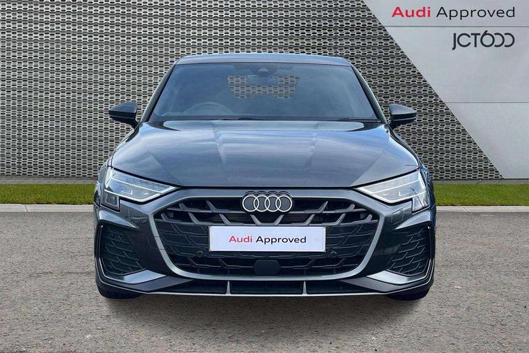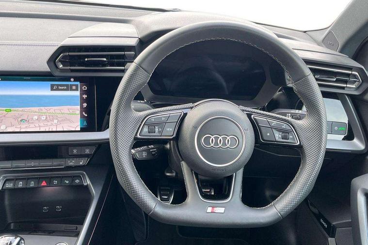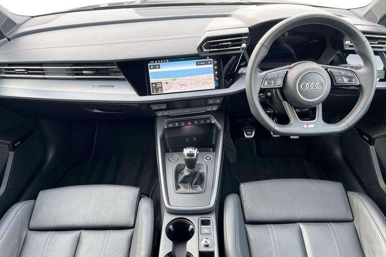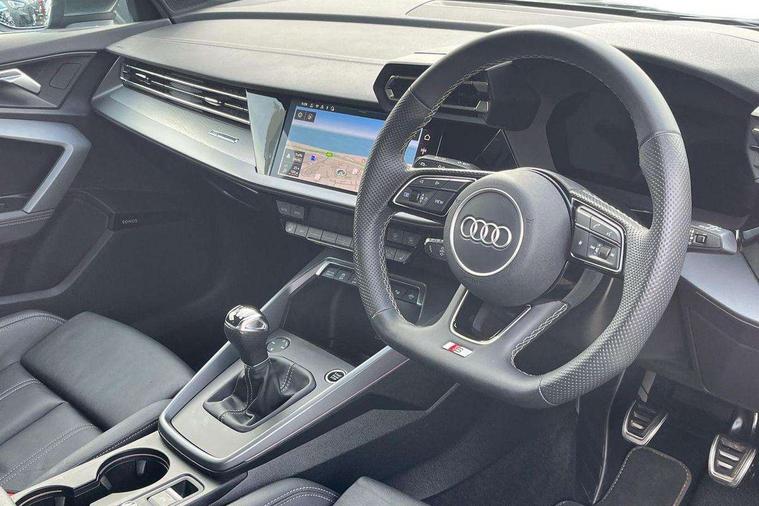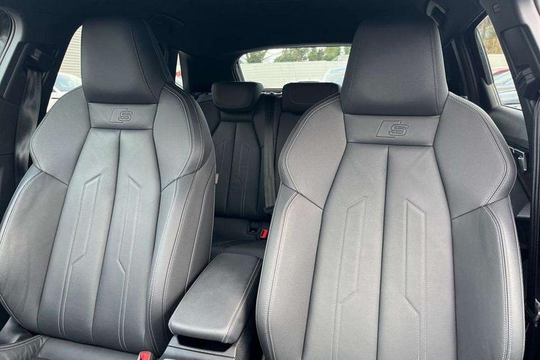Adjustable speed limiter, Audi drive select, Audi smartphone interface with app store includes wireless Apple carplay, Android auto and Amazon alexa integration, Audi virtual cockpit plus - 12.3" full HD resolution dynamic digital instrument cluster, Automatic start/stop system with recuperation, Bluetooth interface, Camera based traffic sign recognition, Collision avoidance assistant, Cruise control, Distraction and Fatigue warning, e-Call (emergency call), Electromechanical power speed sensitive steering, Lane departure warning system, MMI Navigation Plus with high resolution 10.1" colour touch screen display, Park Assist with parking system Plus, Service indicator, Tailgate, Trip computer, Voice control system with natural language interaction, Sports suspension, Audi Phonebox light with wireless charging, Audi sound system - 10 loudspeakers including centre loudspeaker and subwoofer, DAB Digital radio, USB ports with charging function in the rear, Acoustic glass windscreen, All weather light, Aluminium window trim, Auto dimming frameless rear view mirror, Automatic dynamic range control, Body colour exterior mirrors, Chrome exhaust tailpipes, Dipped beam, main beam, position light and turning light, Electrically adjustable/heated/folding/auto dimming door mirrors with integrated LED indications + kerb view function for passenger side, Exterior model badging, Front and rear side air inlets in grained matt black with dark liquid chrome frame, Front electric windows, Front radiator grill in high gloss dark chrome, Heat insulating glass windscreen, Illuminated door sills with aluminium inserts at the front with S logo, Intersection light, LED 3rd brake light, LED brake lights, LED daytime running x3, LED headlights with LED rear lights and dynamic rear indicators, LED rear number plate lights, LED reverse light, LED tail lights, Light and rain sensors, Manoeuvring light, Motorway light, Privacy glass - dark tinted rear window, rear door and side windows, Rear diffuser and grill in grained matt black with inlay in dark liquid chrome, Rear electric windows, Rear side wing doors, Rear wiper, S line bumpers, S roof spoiler, Side S line emblems on front wings, Side sill trim in dark liquid chrome, Static cornering light, 12V socket and storage compartment in front centre console, 3 seat bench in 2nd row, 3 spoke flat bottomed multi-function leather sport steering wheel, 3-zone deluxe automatic air conditioning, 4 way electrically adjustable lumbar support for driver and front passenger, 40/20/40 split folding rear seat bench, Black cloth headlining, Black front and rear floor mats, Front and rear centre armrest in artificial leather with contrasting stitching on armrests and instrument panel, Front and rear headrests, Heated front seats, Height and reach adjustable steering wheel, Manual boot compartment lid, Manually adjustable front seats, Rear centre armrest with cupholder, S badging on the steering wheel, Seat side bolsters, Single front passenger seat, Stainless steel pedals and front footrest in black, Twin leather upholstery with front sports seats S embossed logo, Aluminium interior elements pack - A3, Multi-coloured LED interior lighting package with Multi-coloured contour lighting of instrument panel - A3, 3x3 point rear seat belts, Driver and front passenger airbag with passenger airbag deactivation, Electronic Stabilisation Control (ESC) including ABS, ASR and EDL, First aid kit with warning triangle and 2 safety vests, Front side airbags with head airbags and interaction airbag, Hill hold assist, Pre-sense front with pedestrian and cyclist detection, Seatbelt monitoring, Tyre pressure loss indicator, Anti theft alarm, Anti-theft wheel bolts, Electronically operated child locks, Immobiliser, Remote central locking with safelock, Black dashboard, Inlay in dark aluminium spectrum,