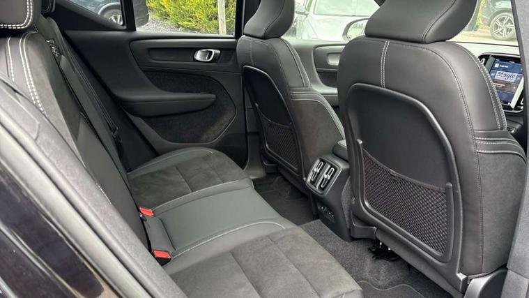 12.3" Progressive Driver Display, 360 degree surround view parking camera with side proximity sensors, 9" centre console portrait touch screen, Adjustable steering wheel force, Bluetooth hands free telephone kit, E-call, Front park assist, Google automatic services - Nav with google maps, apple carplay/android auto, voice recognition with google assistant, Hands free power tailgate, Lane keep assist with driver alert control, Oncoming Lane Mitigation, Rear park assist, Speed limiter, Speed sensitive steering, Wireless/Inductive Mobile Phone Charging, Dynamic chassis, DAB Digital radio, Premium Sound by Harman Kardon, Dolby Pro Logic II Surround Sound, Dirac Unsion, 12 speakers/600W and subwoofer, Steering wheel mounted remote controls, Active bending pixel LED headlights with adaptive shadow technology, Active high beam incorporating daytime running lights, Adaptive brake lights with high level LED brake lights, Auto dimming interior mirror, Automatic headlamp levelling, Dark tinted windows for rear door side windows and cargo compartment, Front aluminium tread plates, Front and rear electric windows, Headlight cleaning system, High gloss black front and rear skid plate, High gloss black mesh front grille with high gloss black surround, High gloss black window trim, Home safe and approach lighting, Integrated roof rails in high gloss black, LED front fog lights, Power glass tilt and slide panoramic sunroof with sun curtain, Puddle lights, Rain sensor with automatic windscreen wiper activation, Rear side wing doors, Rear wiper, Roof antenna, Roof spoiler, Visible VIN plate, 12V socket in front tunnel console and cargo compartment, 2 zone electronic climate control with clear zone air quality system and pollen filter, 3 seat bench in 2nd row, 3 Spoke tailored steering wheel with chrome trim, 60/40 versatile split folding rear seat, A-pillar parking ticket holder, Ambient front door and instrumental panel lighting, Centre console cupholders and storage, Flexible load floor and grocery bag holder, Floor mats, Front door pocket and front cupholder illumination, Front footwell illumination, Front headrests, Front reading light and theatre lighting, Front seat cushion extensions, Front tunnel pocket, Glovebox bag hook, Heated front seats, Height adjustable passenger seat, Height/reach adjustable steering column, High gloss centre tunnel deco, Illuminated glovebox, Illuminated luggage compartment, Illuminated tailgate, Illuminated vanity mirrors, Integrated waste bin, Isofix attachments on rear seats, Load protection net, Multi directional lumbar support, Power driver seat with memory + exterior mirrors memory, Power folding rear headrests, Power passenger seat, Rear armrest / integral cup holders / storage tray, Rear reading and courtesy lights, Single front passenger seat, Underfloor cargo storage, Climate pack without heated front seats - XC40, Driver assist pack - XC40, 3x3 point rear seatbelts, City safety with steering support with Pedestrian + cyclist + front collision warning with full auto brake and rear auto brake, Drivers knee airbag, Dual stage driver/passenger airbags, Electronic parking brake with auto hold, First aid kit, Front and outer rear seatbelt reminder and pretensioners, Front seats SIPS airbags, Hill descent control, Hill start assist, Inflatable curtain, Passenger airbag cut-off device, Power child locks on rear doors, Road sign information display, Run off Road Mitigation, Run off Road Protection, SIPS (Side Impact Protection System), Slippery road and hazard light alert, Stability and Traction Control with Spin control, Engine Drag Control and Corner Traction Control, Tyre pressure monitoring system, Vehicle deceleration control with Anti-lock Brake System, Electronic Brake Distribution and Emergency Brake Assist, Warning triangle, WHIPS whiplash protection system - front, Anti-theft alarm including immobiliser/volume sensor + level sensor, Key integrated remote control central locking + fuel flap with deadlocking system and auto open/close power windows, Keyless drive includes keyless entry and keyless start, Locking wheel nuts,