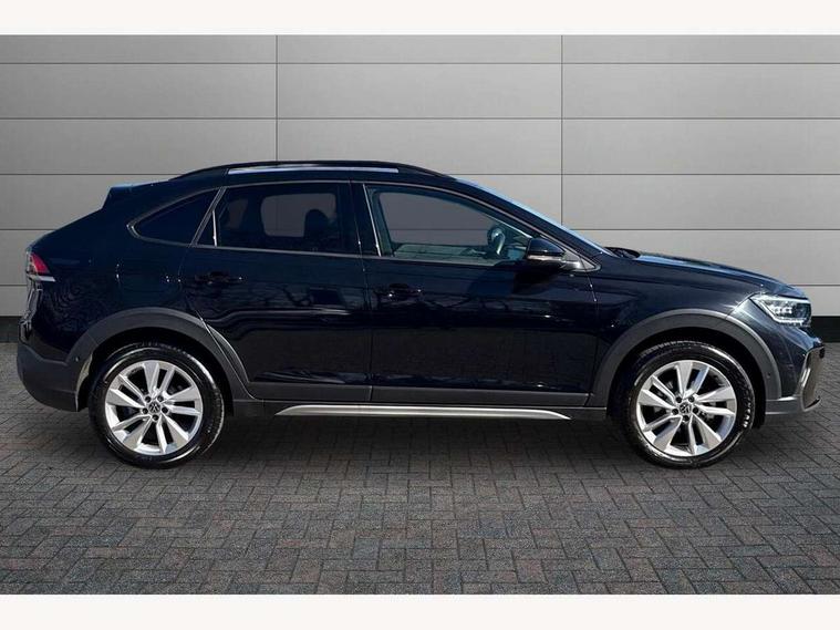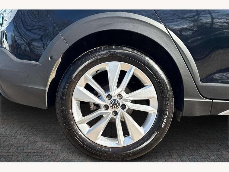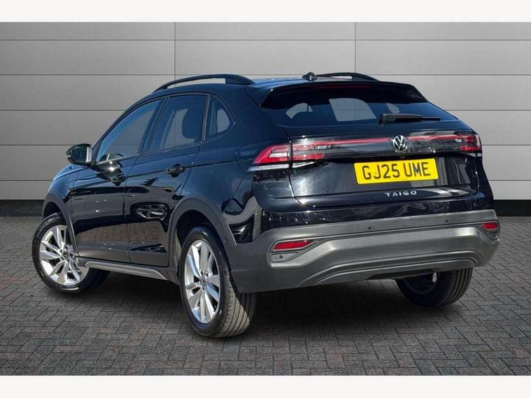 Advanced driver attention and drowsiness monitor, Dynamic road sign display, e-Call (emergency call), Power Steering, Predictive adaptive cruise control, Rear view camera, Travel assist including emergency assist, Washer fluid level indicator, Wireless Charging including Bluetooth, Start-stop system with battery regeneration (recuperation - energy recovery during braking), WeConnect plus, Ambient lighting with logo projection, Aspherical driver's exterior mirror, Body coloured bumpers, Body coloured exterior mirror housings and door handles, Electric windows, External USB type C socket and charging sockets, Heat insulating glass windscreen, LED rear combination lamp, LED third brake light, Left convex exterior mirror, Power folding adjustable/heated exterior mirrors and front passenger exterior mirror lowering function, Rear fog light on one side, reversing light on both sides, Rear side wing doors, Rear wash/wipe with intermittent wipe setting, Side windows in heat-insulating glass, from B-pillar and rear window dark tinted, 'Slash/ Austin' Cloth upholstery, 12V socket in centre console, 2 front reading lights, 3 rear head restraints, 3 seat bench in 2nd row, Black carpets, Ceramique headliner, Child seat anchor for child seat system i-Size, 2x top tether and child seat anchor in front on front passenger side, Door and side trim panels in titan black, Driver and front passenger seat height adjustment, Front centre armrest, Handbrake lever handle in leather, Height and reach adjustable steering wheel, Leather trimmed gear knob, Leather wrapped multifunction steering wheel, Luggage compartment floor, Luggage compartment light, Lumbar support for driver's and front passengers seat, Seat covers in titanium black, Single front passenger seat, Split folding backrest with centre armrest and unsplit rear seat bench, Storage compartment under front seats, Sun visors with illuminated vanity mirrors, Titanium black instrument panel, Chrome Package - Taigo, Drivers assistance package - Taigo, Light and sight pack - Taigo, 2 x 3-point seatbelts/outer rear seats with ECE label, 3-point seat belts in front with pretensioner and height adjustment, 3-point seatbelt for centre rear seat, Driver and front passenger airbag with front passenger airbag deactivation, Driver and front passenger safety-optimised head restraints, Electronic stability control, Extended and predictive pedestrian/ cyclist protection, Front and rear disc brakes, Front curtain and side airbags with center airbag, Hill start assist, Manual rear child locks, Single tone horn, Tyre pressure loss indicator, Anti-theft alarm system with interior monitoring, backup horn, and towing protection, Keyless locking and starting system keyless access with safelock, Black (slush) Dashboard, Lava stone black gloss/matt decorative inserts in dash and front door panels, Low rolling resistance tyres,