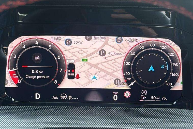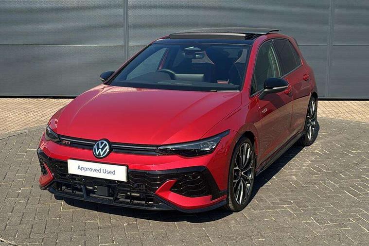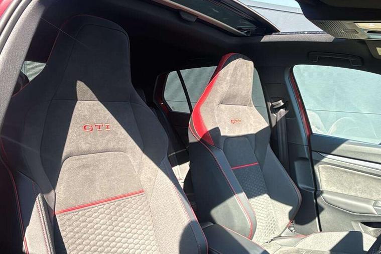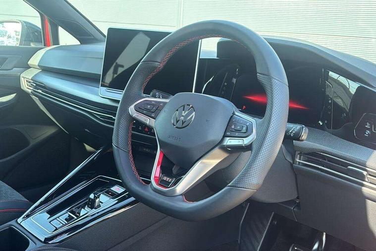 Activated carbon canister, Adaptive cruise control (ACC), Advanced driver attention and drowsiness monitor, Dynamic road sign display, E-Sim card for online connectivity, eCall emergency call system, Multi-color Digital cockpit pro, selection of different info profile possible, Multifunction front facing camera for distance control, Navigation system, Oncoming vehicle braking when turning including swerve support, Side assist blind spot lane change system, rear traffic alert and exit warning system, Speed limiter, Speedo, rev counter, electronic odometer, trip, service interval display, exterior temperature and fuel gauge, Traffic jam assist, Voice enhancer and voice control, Warning signal and warning light for front and rear seatbelts not fastened, We connect plus preparation, We connect preparation, Wireless app connect, Front differential lock, Petrol Particulate Filter, Start-stop system with battery regeneration (recuperation - energy recovery during braking), 2 USB C ports in front, 2 USB charging sockets on the centre console in the rear charging capacity upto 45W, Digital radio reception (DAB), Diversity antenna for FM reception, Gaming platform via car app, Infotainment system with 12.9" display, Mobile phone interface with inductive charging feature, 3rd brake light, Auto dimming rear view mirror, Automatic headlamp activation with Coming home and Leaving home feature, Body colour door handles, Bumpers in "Clubsport", air intake in honeycomb structure, Exterior mirrors convex on the left and aspherical on the right, Front and rear electric windows, Front fog lamps and cornering light, Heat insulating windshield made of laminated glass, Illuminated lighting animation with wake up/goodbye scenario, LED separate daytime running light, Nameplate 'GTI' set, Rain sensor, Rear fog light on one side and reversing lights on both sides, Rear side wing doors, Rear windscreen washer and wiper with interval delay, Remote electrically foldable door mirrors, puddle lights and reverse activated passenger's door mirror, Welcome light with surround lighting, 12V socket in front centre console, 12V socket in luggage compartment, 3 rear head restraints, 3 seat bench in 2nd row, 30 colour ambient lighting, illuminated center console storage compartment in front, Air care climatronic 3 Zone automatic climate control with rear air conditioning control panel, Aluminium gearshift handle, Brushed stainless steel pedals, Chrome plated radiator grille inserts, air vent surrounds and light switch surrounds, Entry lights, Front + rear black carpet mats, Front centre armrest, ISOFIX anchors for child seats on outer rear bench seats and on front passanger seat compatible for i-Size, Luggage compartment lighting, Rear cupholder and loadthough, Single front passenger seat, Soul black instrument panel, Soul black roof lining, Split folding backrest with centre armrest and unsplit rear seat bench, Sun visors with illuminated vanity mirrors, Driver assistance pack - Golf Estate/Hatchback Auto, Technology park and comfort pro package - Golf Hatchback, 3 point height adj front seatbelts + pretensioners, 3 rear three point seatbelts, ABS, Autonomous emergency braking front assist with pedestrian and cyclist monitoring, Child locks on rear doors, Driver and front passenger airbag with front passenger airbag deactivation, Electronic parking brake with auto hold, ESC (Electronic Stability Control), Extended pedestrian protection measures, Front red brake calipers with GTI logo, Hill start assist, Rear disc brakes, Two tone horn, Tyre pressure loss indicator, Volkswagen roadside assistance, Anti theft wheel bolts, Preparation for alcohol interlock, Decorative inserts carbon grey for dashboard and front door trim panels, Sporty vehicle dynamics, Tool kit for tyre mobility set, Tyre mobility kit Includes 12V compressor and tyre sealant,