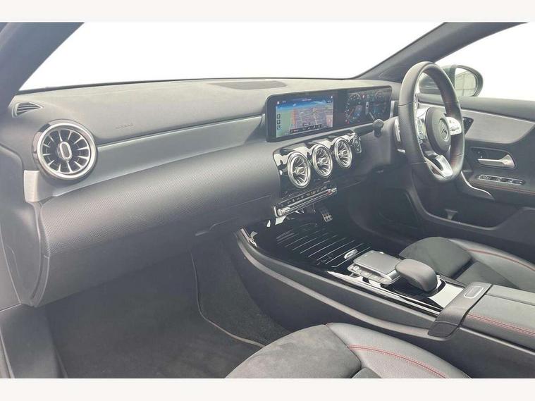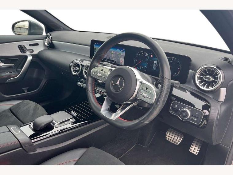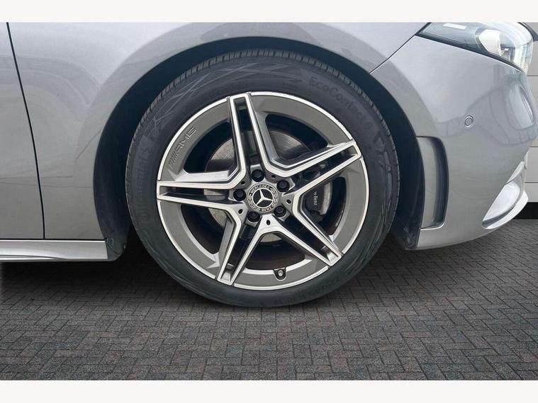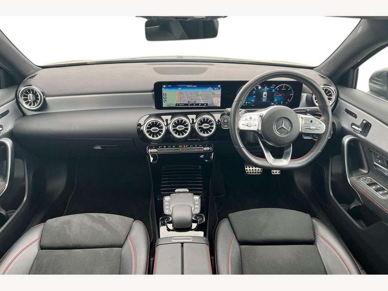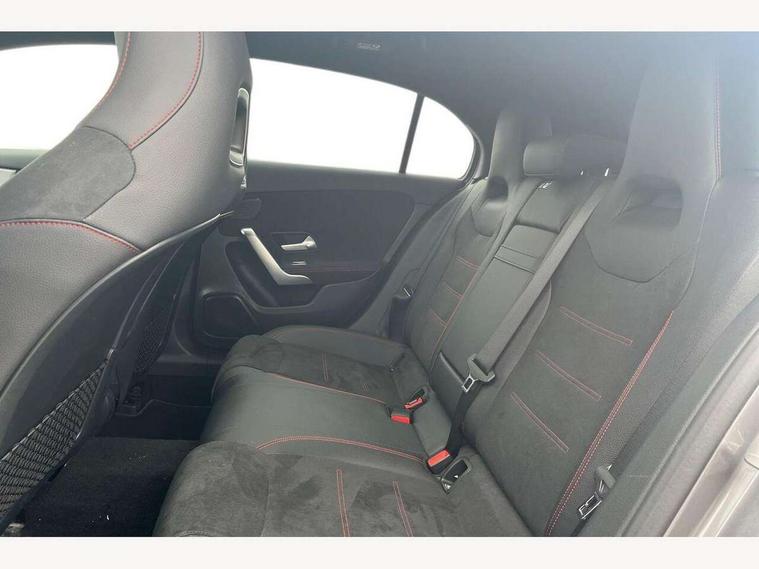 10.25" Digital instrument cluster display screen, 10.25" media display, 180 degree rear view camera with parking guidelines, Active lane keep assist, Active park assist with parktronic system including front and rear parking sensors, Attention assist, Brake pad wear indicator warning light, Car wash mode, Direct steering, Dual bluetooth interfaces, DYNAMIC SELECT with a choice of driving modes (ECO, Comfort, Sport and Individual), ECO start/stop function, Fluid level warning indicator for fuel, oil, coolant and washer fluid, Hard-disk navigation, Hey Mercedes Voice activation, Lamp failure indicator, MBUX augmented reality for navigation, MBUX multimedia system with DAB digital radio and touchpad including satellite navigation, Mercedes me connect including emergency call system, accident recovery, breakdown management and maintenance, Outside temperature gauge, Owners manual in English, Pre-installation for car sharing, Pre-installation for Vehicle Monitoring, Pre-installation for Vehicle Setup, Preinstallation for Mercedes Benz link, Service indicator (ASSYST), Smartphone integration with Apple CarPlay and Android auto, Traffic sign assist, Trip computer, Wireless charging, Lowered comfort suspension, Rear axle torsion beam, 10 speakers, 2 USB ports (type C) in rear stowage compartment and one in front of center console, DAB Digital radio, Mercedes-Benz advanced sound system - 225W, 4 Electric Front and Rear windows, Adaptive brake lights, AMG bodystyling - Front apron with splitter in chrome, rear apron with chrome trim and chrome visible trim elements in tailpipe, Black weather strip, Body colour bumpers, Body colour door handles, Body colour side skirt, Body coloured door mirrors, Chrome beltline trim, Diamond radiator grille with chrome pins and silver louvre + chrome insert, Electric adjustable and heated door mirrors with integrated LED side indicators, Exhaust system - Twin visible tailpipes in polished stainless steel, Headlamp assist automatic headlamp activation, Heated glass rear windscreen + timer control, Illuminated front door sill panels with Mercedes-Benz lettering, LED high performance headlamps with integrated LED daytime running lights, LED tail lamp, LED third brake light, Multibeam LED with adaptive highbeam assist plus, Panoramic sliding sunroof, Privacy glass, Radio aerial, Rain sensing windscreen wipers with two sensitivity settings, Rear fog lights, Rear wiper, Window line trim strip in chrome, 3 Spoke flat bottom leather multi function steering wheel with perforated leather in grip area, 40:20:40 split folding rear seats, Artico man-made leather/Microfibre Dinamica upholstery with red contrast stitching, Auto Mercedes-Benz child seat recognition sensor, Black air vents with surround in silver chrome, Black roof lining, Brushed stainless steel sports pedals with rubber studs, Controller on centre console with chrome surround, Electrically adjustable front memory seats including lumbar support, Floor mats with stitched edging and AMG lettering, Front centre armrest with storage compartment, Front seat backs luggage nets, Front seat cushion length adjustment, Galvanished gear shift paddles on steering wheel, Heated front seats, Height/reach adjustable steering column, Interior lighting - 64 colour Ambient lighting, Interior mirror with reading lamps in black and frameless, ISOFIX and top tether child seat fixing points in two outer rear seats, Rear armrest with 2 cupholders, Rear head restraints, Seat occupancy sensor for front passenger seat, Sports seats with integrated headrests, Stowage compartment in centre console with retractable cover, Sunvisors with illuminated vanity mirrors, Touchpad on center console, Twin front cupholders, Two zone thermotronic luxury automatic climate control, Light and sight pack - A Class, Mirror package - A Class, Seat comfort pack - A Class, 3 rear 3 point seatbelts, ABS with Brake Assist, Active bonnet, Adaptive brake assist with hold function and hill start assist, Black seatbelts, Childproof locks manually operated for rear doors and electrically operated for rear power windows, Crash responsive emergency lighting, Driver and passenger head and side airbags, Drivers knee airbag, Dual stage driver/passenger airbags, Electronic parking brake, ESP curve dynamic assist, ESP with ASR, Front and rear seatbelt reminder, Front brake callipers with Mercedes Benz lettering, Tyre pressure monitoring system, Warning triangle and first aid kit, Window airbags, Alarm system/interior protection/immobiliser, Keyless entry lock/unlock, Keyless Go, Remote central locking and crash sensor with emergency opening function, Urban guard vehicle protection system with immobiliser and interior protection, Light aluminium with longitudinal grain interior trim, 18" AMG 5 twin spoke light alloy wheels in titanium grey with highsheen finish, Summer tyres, Tirefit sealant kit,