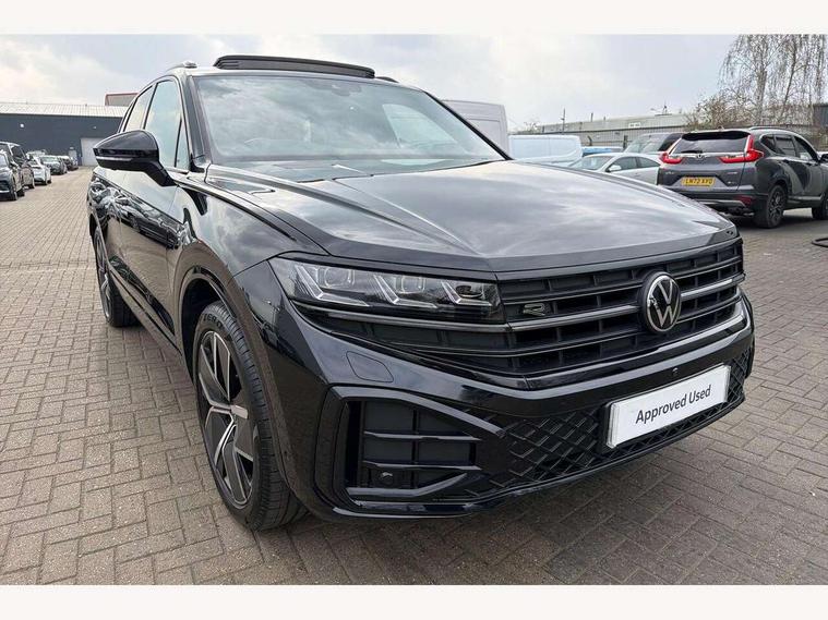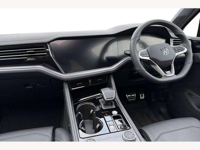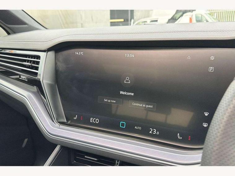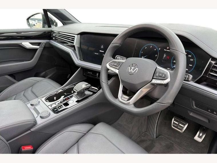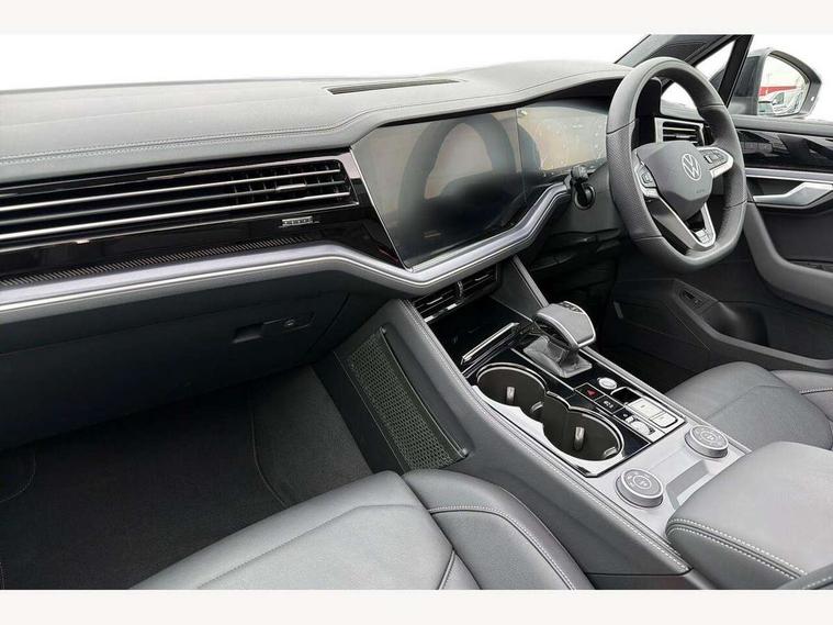 15" Screen Top infotainment system Premium (MIB3), Adaptive cruise control, Advanced driver attention and drowsiness monitor, Driver profile selection, Dynamic road sign display, E-Sim card for online connectivity, eCall emergency system, Innovision cockpit, Intelligent park assist, Mobile phone interface with inductive charging, Multi-colour Active Info display, Park Assist - Sensor controlled steering aid to assist parallel or bay parking, PAS, Warning signal and warning light for front and rear seatbelts not fastened, Wireless app connect, Adaptive chassis control, DAB Digital radio, Diversity antenna for AM/ FM reception, We Connect and We Connect Plus functionality, Automatic coming/leaving home lighting function, Automatic headlights, Black door mirrors, Black style comfort bumpers, Dynamic headlight range control with dynamic cornering light, Electric front tilt/slide panoramic sunroof and fixed rear sunroof, Electrically power adjustable, heated, folding, auto dimming, front passenger exterior door mirror lowering function, External USB type C socket and charging sockets, Gloss black roof rails, HD LED Matrix beam plus digital headlight projection with variable light distribution, Headlight washers, Highway light, LED 3rd brake light, LED daytime running lights, LED rear combination lamp with variable lighting functions and special styling, Poor weather light, Rain sensor, Rear exhaust tailpipe, Rear fog light with back up light on both sides, Rear light bar and illuminated logo, Rear side wing doors, Rear wiper, Stainless steel door sill protection, 12V socket in centre console, 3 rear headrests, 3 seat bench in 2nd row, 4 zone climate control, Airbag label on sun visor and B-pillar, Brushed stainless steel pedals, Double sun visors with illuminated vanity mirrors, Front + rear carpet mats, Front centre armrest, Leather wrapped multifunction sports steering wheel, heated, with touch control and shift paddles, Mechanical rear seat release, Power adjustable lumbar support in front, Power seats in front, right side with memory features and seat cushion depth adjustment, Rear seat backrest and split folding with center armrest, Single front passenger seat, Memory pack plus - Touareg, 3 point seatbelts, outer rear with ECE lable, ABS, Child locks on rear doors, Curtain airbags, Driver and front passenger safety-optimised head restraints, Driver/Front Passenger airbags, Extended pedestrian protection measures, Front assist, Front seat side impact airbags, Generative braking with start and stop system, Height adjustable 3 point front seatbelts with pre tensioners, Passenger airbag deactivate switch, Three 3 point rear seatbelts, Two tone horn, Warning triangle and first aid kit, Alarm system with interior protection, Easy open and close sensor controlled luggage compartment opening and closing with remote unlocking, Keyless Access Keyless locking and starting system with SAFELOCK, Aluminium decorative inserts, Black decorative trims, Gloss black decorative inserts in centre console, Tool kit,