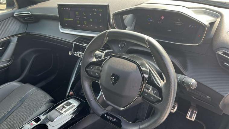 Bluetooth telephone facility, Driver attention warning, E-call, Exterior temperature indicator with ice warning, Multi function trip computer, PEUGEOT i-Cockpit with compact steering wheel, PEUGEOT i-Cockpit with configurable 3D headup instrument panel, PEUGEOT SOS and assistance, Smartphone charging plate, Speed limit recognition and recommendation, Wireless mirror screen with mirror link, apple carplay and android auto, Petrol Particulate Filter, 1x USB-C socket in rear and 1x USB-A socket in rear, 2 USB-C ports in the front, 6 speakers radio with mp3 compatible, DAB Radio (Digital Audio Broadcasting), Voice recognition for radio, navigation and telephony features, 2 X Rear number plate lights, Aluminium door sill scuff plates with peugeot lettering, Automatic hazard light activation upon heavy brake application, Black diamond roof, Black front wing trim with gloss black detail and GT badging, Body coloured exterior door handles, Dark tinted rear side and tailgate windows, Diamond black mirror shells, Diamond black rear roof spoiler, Electric, heated, and power folding door mirrors, Frameless electrochrome interior rear view mirror, Front bumper - Meteor grey lower trim, Full LED headlights with smartbeam assist with auto height adjustment, Gloss black finish on B pillar, Gloss black rear cluster connecting strip, Gloss black roof bars, Gloss black window surround, GT model designation badging on tailgate, Headlights left on audible warning, LED daytime running lights with distinctive 3 claw signature, LED side indicator lights integrated into door mirrors, LED third brake light, Model designation badges front and rear, One touch electric front/rear windows with pinch protection, Radiator grille - body coloured vertical chequered grille, Radiator grille - gloss black top edge trim, Rear full LED 3D peugeot signature claw effect lights with daylight function, Rear reversing lights, Rear side wing doors, Rear windscreen wiper triggered automatically in reverse gear, Tailgate with heated rear windscreen and wiper blade, Twin chromed exhaust pipes, Wheel arch extensions, 1/3 to 2/3 split folding rear seats, 12V socket, 3 seat bench in 2nd row, 8 Colour personalisable ambient lighting, Automatic air conditioning with pollen and active carbon filter, Central front armrest with storage compartment, Driver and front passenger sport seats, Electric power steering with reach and rake adjustable steering column, Front and rear carpet mats in black, Front LED interior light with 2 reading spotlights and rear interior light with timer, Front passenger seat manual adjustment - height, longitudinal and back rest angle, High centre console, ISOFIX child seat mounting points on passenger seat, Mistral full-grain perforated leather steering wheel with Lime Green stitch detail and satin chrome 'GT' emblem, Multifunction steering wheel, Piano keys: Gloss black and chrome toggle switches to access main functions of the vehicle and touchscreen functions, Roof lining - Mistral black, Seatbelt unfastened on the move audible and visual alert for front and rear seats, Single front passenger seat, Two position modular boot floor, Visibility pack - 2008, 2x 2nd row ISOFIX child seat mountings, ABS (Anti-lock Braking System) with EBD (Electronic Brakeforce Distribution) and EBA (Emergency Braking Assistance), Active safety brake with night function/cyclists/pedestrians, Adaptive driver and front passenger airbags with passenger airbag deactivation function, Child locking functionality on rear doors, Driver/front passenger side airbags, Electric parking brake, ESP (Electronic Stability Program) + Hill Start Assist, Front and rear curtain airbags, Front and rear disc brakes, Front and rear three-point retractable seatbelts, with force limiters, Front optimised safety headrests and rear retractable headrests (x3), height adjustable, Tyre pressure sensor, Automatic door locking when moving off, Deadlocks, Electronic code immobiliser, Peugeot Open and Go (keyless entry and push button start), Thatcham category 1 alarm, Carbon effect Dashboard, front and rear door panel finish,