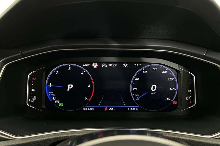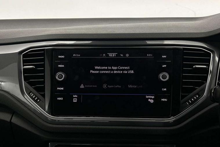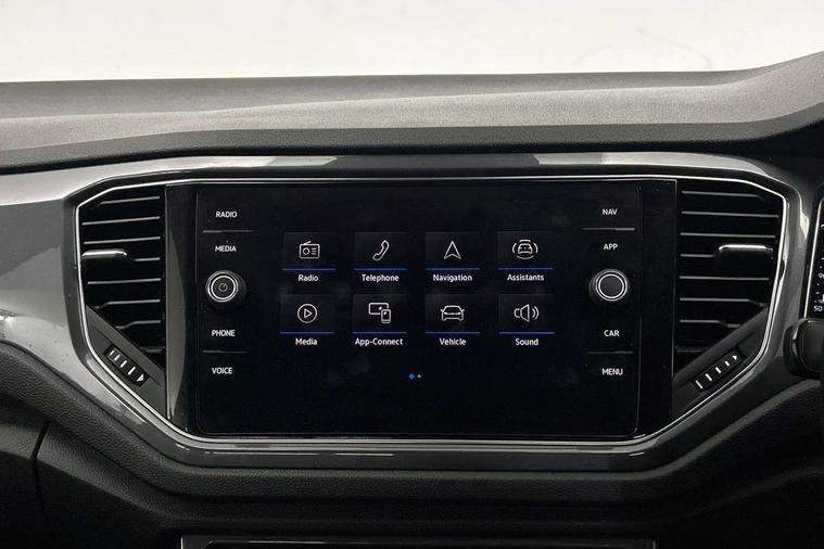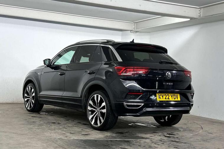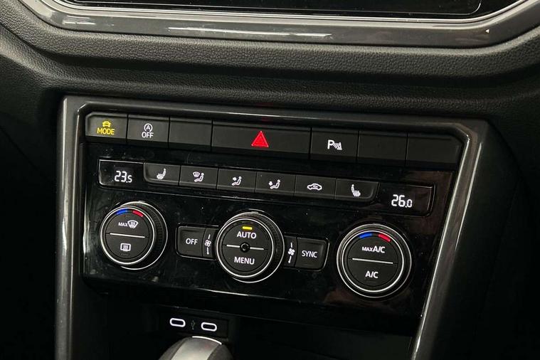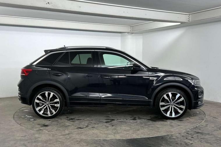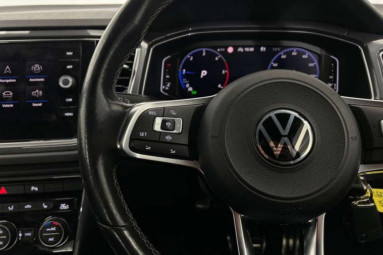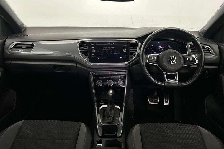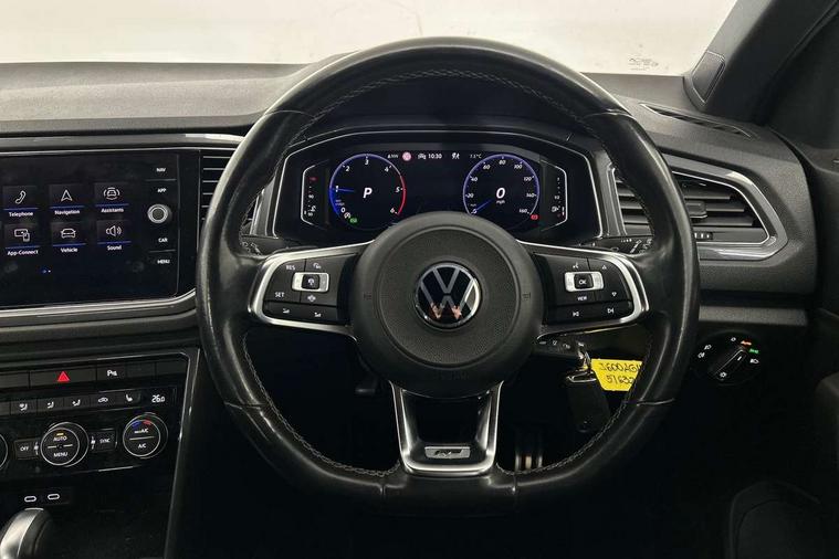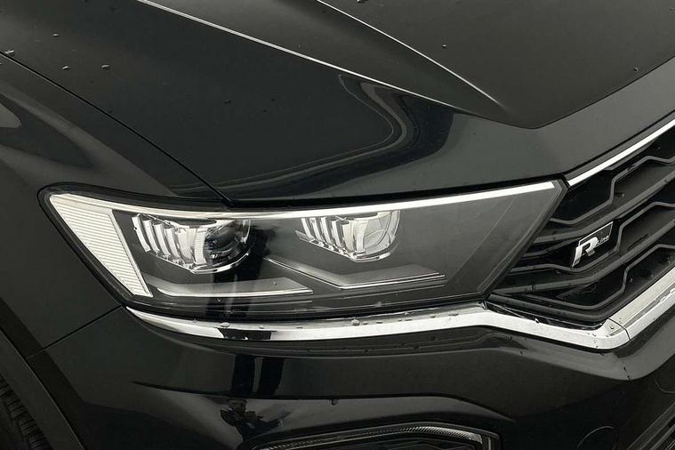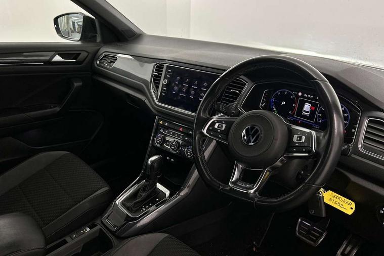 'Lights On' Reminder warning buzzer, Adaptive cruise control, Bluetooth telephone and audio connection for compatible devices, Car information display, Digital Cockpit Pro - Active info display, Driver alert system with audible and visual fatigue detection system, Driver tips and journey analysis, Dusk sensor, Emergency call service, Lane assist with warning text instrument cluster, Modified key software - reduce switch off time for key status change to Long no motion, Multifunction camera, Multifunction computer with visual gear change recommendation for fuel consumption, Navigation system discover media including streaming and internet, Service interval indicator, Think blue trainer driver tips and journey analysis, Traffic sign recognition, Voice activation, Warning sound and light for front seatbelts unfastened, Wireless app connect for apple carPlay, Battery regeneration during braking, Misfuel prevention device for diesel engine, Rear shock absorption for sports version, Start/stop function with battery regeneration, DAB Digital radio, Disk brakes in front, Diversity antenna for FM reception, Music playback - MP3, WMA and AAC files, Premium USB cable in choice of either Apple or Android smartphone compatibility, SD card slot, Simultaneous pairing of 2 compatible mobile devices, SMS functionality - read, compose and send SMS messages using touch-screen display, Storage compartment with longitudinal and height adjustable in armrest and two rear air vents, Three route options - Fast, Short, Eco, Title and cover art display, USB-C Interface and USB charging socket, Auto dimming interior rear view mirror, Automatic coming/leaving home lighting function and daytime running lights, Automatic hazard lights activation under emergency braking, Black grained lower door protectors, Body colored door lower parts, Body colour door handles, Body colour rear roof spoiler, Chrome effect left and right trapezoid exhaust tailpipe fascia surround, Chrome plated moldings, Chrome plated radiator grille inserts, air vent surrounds and light switch surrounds, Chrome trim on upper and lower radiator grille, Dynamic headlight range control with self adjusting whilst driving, Electrically foldable, adjustable and heated door mirrors with puddle lights and reverse activated kerb-view adjustment on passenger's door mirror, External USB type C socket and charging sockets, Front and rear electric windows, Front fog lights with static cornering function, Front windscreen wiper with intermittent wipe and 4 position delay, Fully galvanised body, Heated rear window, Heated windscreen washer jets, High level 3rd brake light, LED darkened rear light clusters, LED headlamps with automatic range adjustment and unique signature LED separate daytime running lights, LED rear number plate lights, LED tail lamp rear comination lamps, Privacy glass, R-Line design body coloured bumpers, Rain sensor, Rear tinted glass from B-pillar backwards approx 65% tinted, Rear wash/wipe with intermittent wipe setting, Silver anodised roof rails, Volkswagen roundel, 12V socket in centre console storage area, 3 rear head restraints, 4 load lashing points in luggage compartment, Aluminium pedals, Black roof lining and sun visors, Branded points of interest, Carbon flag cloth upholstery, Climate control - 2 zone electronic air conditioning with automatic air recirculation and allergy filter, Door and side trim panel, Door and side trim panel in foam film, insert in leatherette, Drawer under drivers seat, Front + rear carpet mats, Front centre armrest, Front cupholders x 2, Front seat back storage pockets, Front sports seats with R-Line logo on seat backrest, Glovebox, Heated front seats, Height adjustable front seats, Height/reach adjust steering wheel, Instrument lighting, white adjustable panel illumination, Interior light delay, Interior light in footwell, Isofix easy fit child seat preparation for 2 outer rear seats, Leather gearshift knob, Leather multi function sport steering wheel with gear change selection via paddle shift on steering wheel, LED interior light with switch off delay/dimmer and 2 front/rear LED reading lights, Load through provision with single cup holder when folded down, Luggage compartment cover, removable, Luggage compartment lighting, R Line badge, Scuff plates in door apertures, Split folding rear seat backrests with centre armrest, Stainless steel pedals, Storage compartment in left and right luggage area, Storage compartment in rear doors, Storage compartments in driver and front passenger doors, Sunvisors with illuminated vanity mirrors, Unique R Line door sill protectors, White ambient lighting, R line styling pack - T-Roc, Winter pack - T-Roc, 3 rear three point seatbelts, ABS, Curtain airbags, Driver and front passenger safety-optimised head restraints, Drivers and front passengers airbags with passengers deactivation switch, Drivers seatbelt reminder, Electronic parking brake with auto hold, Electronic stability control (ESC) includes ASR, EDL, EDTC and trailer stabilisation function, Front assist with city emergency braking and pedestrian monitoring, Front seat side impact airbags, Hill start assist, Predictive pedestrian protection, Rigid safety cell with front and rear crumple zones, Single tone horn, Three point height adjust front seatbelts + pretensioners, Tyre pressure loss indicator, Ventilated front and rear disc brakes, Volkswagen roadside assistance, Alarm with remote central locking and interior protection, Electronic engine immobiliser, Remote central locking with SAFELOCK, radio remote control with 2 remote control folding keys, Shadow grey decorative inserts in dash, centre console and door panel, 19" Suzuka alloy wheels with low rolling resistance tyres and anti wheel bolts,