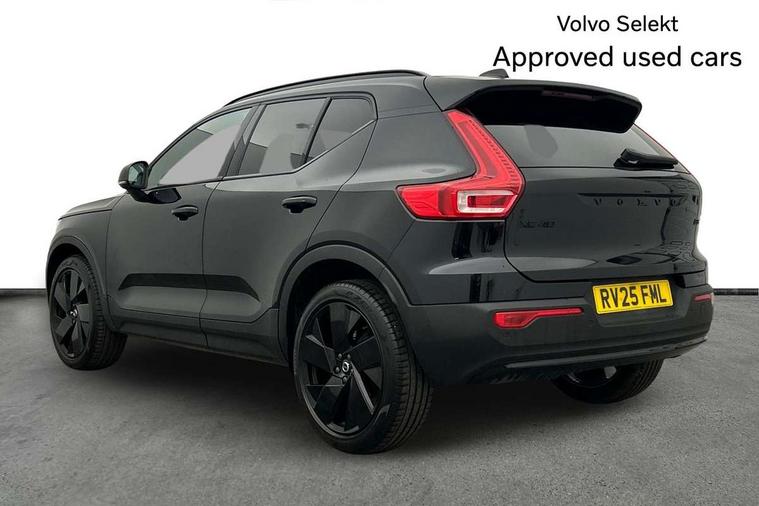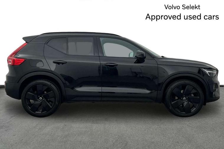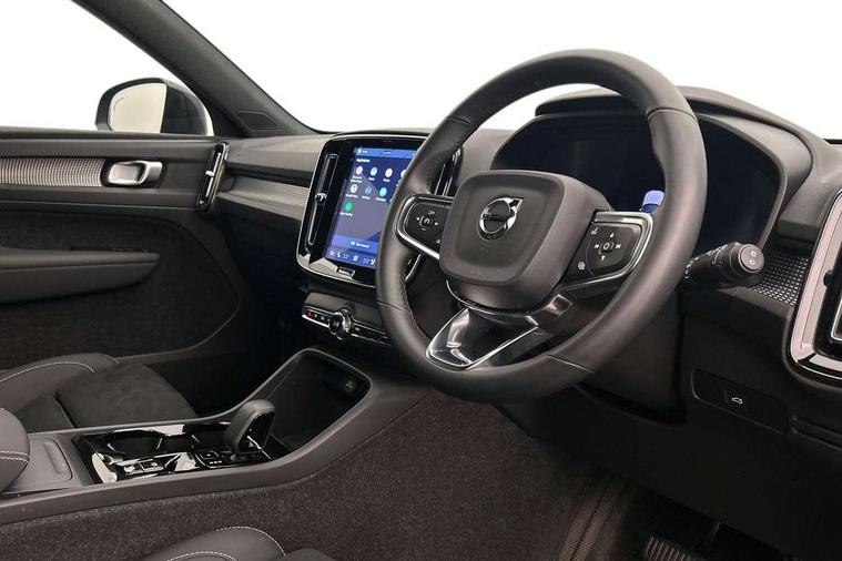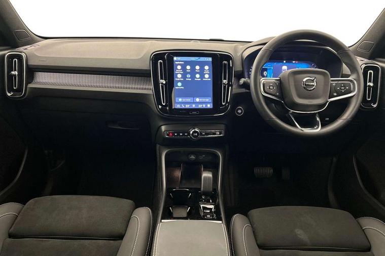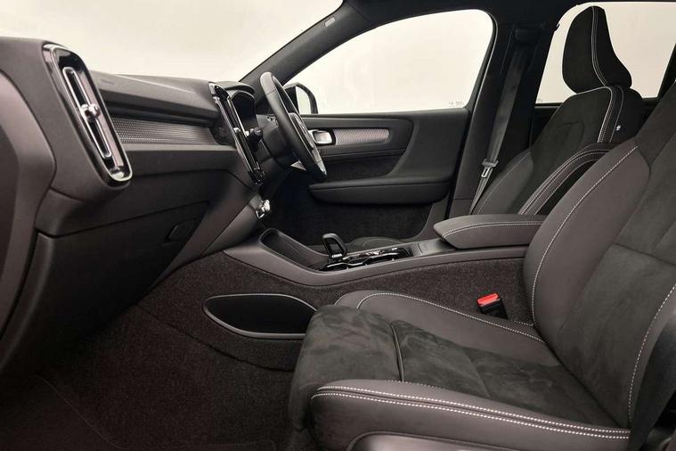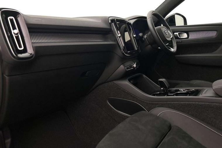 12.3" Progressive Driver Display, 9" centre console portrait touch screen, Adjustable steering wheel force, Android auto (Wired), Apple carplay (wired), Bluetooth handsfree system, Driver alert control, Driver assistance (pilot assist and adaptive cruise control), Driver awareness - Blind spot information system with steer assist, cross traffic alert with autobrake and rear collision warning and mitigation, E-call, Front park assist, Google automotive services - Enabled entertainment apps, navigation with google maps, voice recognition with google assistant, Hands free power tailgate, Intelligent speed assistance, Lane keeping aid, Oncoming Lane Mitigation, Rear park assist, Speed sensitive steering, Volvo cars services with app - Driving journal, emergency and breakdown call, engine remote start, remote door locking/unlocking and vehicle dashboard, Wireless/Inductive Mobile Phone Charging, Automatic transmission with start/stop and manual change functions, Dynamic chassis, DAB Digital radio, Steering wheel mounted remote controls, Adaptive brake lights with high level LED brake lights, Auto dimming feature for exterior door mirrors, Auto dimming interior mirror, Automatic headlamp levelling, Automatic LED Headlights + Active high beam incorporating daytime running lights, Colour coordinated auto folding and heated power door mirrors, Dark tinted windows - rear side windows and rear screen, Front aluminium tread plates, Front and rear electric windows, High gloss black front and rear skid plate, High gloss black front bumper deco, High gloss black front grille strikethrough and ironmark, High gloss black rear model, engine and volvo logo badges, High gloss black window trim, Home safe and approach lighting, Integrated roof rails in high gloss black, LED front fog lights, Puddle lights, Rain sensor with automatic windscreen wiper activation, Rear side wing doors, Rear wiper, Roof antenna, Roof spoiler, Visible VIN plate, 12V socket in front tunnel console and luggage compartment, 2-Zone electronic climate control with CleanZone air quality system and pollen filter, 3 seat bench in 2nd row, 3 Spoke tailored steering wheel with chrome trim, 60/40 versatile split folding rear seat, Centre console cupholders and storage, Charcoal headlining, Connect textile/microtech upholstery, Flexible load floor and grocery bag holder, Floor mats, Front cabin courtesy lights, Front door pocket, front cupholder, ambient front door, rear reading, rear courtesy, instrument panel and tailgate lighting, Front footwell illumination, Front headrests, Front reading lights, Front seat cushion extensions, Front side step illumination (under door), Glovebox bag hook, Heated front seats, Height adjustable passenger seat, Height/reach adjustable steering column, High gloss centre tunnel deco, Illuminated glovebox, Illuminated luggage compartment, Illuminated vanity mirrors + ticket holder, Integrated waste bin, Isofix attachments on outer rear seats, Load cover, Load protection net, Multi directional lumbar support for driver and passenger seat, Power driver seat with memory + exterior mirrors memory, Rear armrest with cupholders, Rear headrests, Single front passenger seat, Underfloor cargo storage, Climate pack without heated front seats - XC40, 3x3 point rear seatbelts, City safety with steering support with Pedestrian + cyclist + front collision warning with full auto brake and rear auto brake, Driver and passenger airbags, Drivers knee airbag, Electronic parking brake with auto hold, First aid kit, Front and outer rear seatbelt reminder and pretensioners, Front seats SIPS airbags, Hill descent control, Hill start assist, Inflatable curtain, Passenger airbag cut-off device, Power child locks on rear doors, Road sign information display, Run off Road Protection, SIPS (Side Impact Protection System), Slippery road and hazard light alert, Stability and Traction Control with Spin control, Engine Drag Control and Corner Traction Control, Tyre pressure monitoring system, Vehicle deceleration control with Anti-lock Brake System, Electronic Brake Distribution and Emergency Brake Assist, Warning triangle, WHIPS whiplash protection system - front, 2 x Key integrated remote control central locking including with deadlocking system and auto open/close windows, Anti-theft alarm including immobiliser/volume sensor + level sensor, Keyless drive includes keyless entry and keyless start, Locking wheel nuts, 20" 5 spoke high gloss black alloy wheels,