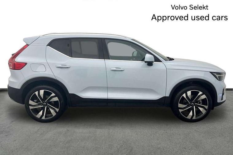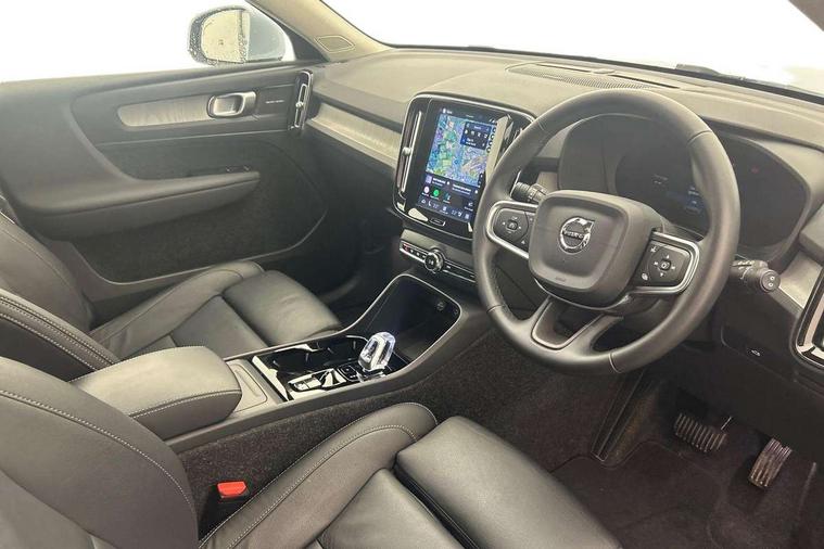 12.3" Progressive Driver Display, 360 degree surround view parking camera with side proximity sensors, 9" centre console portrait touch screen, Adjustable steering wheel force, Android auto (Wired), Apple carplay (wired), Bluetooth handsfree system, Driver alert control, Driver assistance (pilot assist and adaptive cruise control), Driver awareness - Blind spot information system with steer assist, cross traffic alert with autobrake and rear collision warning and mitigation, E-call, Front park assist, Google automotive services - Enabled entertainment apps, navigation with google maps, voice recognition with google assistant, Hands free power tailgate, Intelligent speed assistance, Lane keeping aid, Oncoming Lane Mitigation, Rear park assist, Speed sensitive steering, Volvo cars services with app - Driving journal, emergency and breakdown call, engine remote start, remote door locking/unlocking and vehicle dashboard, Wireless/Inductive Mobile Phone Charging, Automatic transmission with start/stop and manual change functions, Dynamic chassis, DAB Digital radio, Premium Sound by Harman Kardon, Dolby Pro Logic II Surround Sound, Dirac Unison, 12 speakers/600W and subwoofer, Steering wheel mounted remote controls, Active bending pixel LED headlights with adaptive shadow technology, Active high beam incorporating daytime running lights, Adaptive brake lights with high level LED brake lights, Auto dimming feature for exterior door mirrors, Auto dimming interior mirror, Automatic headlamp levelling, Dark tinted windows - rear side windows and rear screen, Front aluminium tread plates, Front and rear electric windows, Headlight cleaning system, High gloss black front and rear skid plate, High gloss black front bumper deco, High gloss black mesh front grille with high gloss black surround, High gloss black window trim, Home safe and approach lighting, Integrated roof rails in high gloss black, LED front fog lights with cornering function, Power glass tilt and slide panoramic sunroof with sun curtain, Puddle lights, Rain sensor with automatic windscreen wiper activation, Rear side wing doors, Rear wiper, Roof antenna, Roof spoiler, Visible VIN plate, 12V socket in front tunnel console and luggage compartment, 2-Zone electronic climate control with CleanZone air quality system and pollen filter, 3 seat bench in 2nd row, 3 Spoke tailored steering wheel with chrome trim, 60/40 versatile split folding rear seat, Centre console cupholders and storage, Flexible load floor and grocery bag holder, Floor mats, Front cabin courtesy lights, Front door pocket, front cupholder, ambient front door, rear reading, rear courtesy, instrument panel and tailgate lighting, Front footwell illumination, Front headrests, Front reading lights, Front seat cushion extensions, Front side step illumination (under door), Glovebox bag hook, Heated front seats, Height/reach adjustable steering column, High gloss centre tunnel deco, Illuminated glovebox, Illuminated luggage compartment, Illuminated vanity mirrors + ticket holder, Integrated waste bin, Isofix attachments on outer rear seats, Load cover, Load protection net, Multi directional lumbar support for driver and passenger seat, Power driver seat with memory + exterior mirrors memory, Power folding rear headrests, Power passenger seat, Rear armrest with cupholders, Single front passenger seat, Underfloor cargo storage, Climate pack without heated front seats - XC40, 3x3 point rear seatbelts, City safety with steering support with Pedestrian + cyclist + front collision warning with full auto brake and rear auto brake, Driver and passenger airbags, Drivers knee airbag, Electronic parking brake with auto hold, First aid kit, Front and outer rear seatbelt reminder and pretensioners, Front seats SIPS airbags, Hill descent control, Hill start assist, Inflatable curtain, Passenger airbag cut-off device, Power child locks on rear doors, Road sign information display, Run off Road Protection, SIPS (Side Impact Protection System), Slippery road and hazard light alert, Stability and Traction Control with Spin control, Engine Drag Control and Corner Traction Control, Tyre pressure monitoring system, Vehicle deceleration control with Anti-lock Brake System, Electronic Brake Distribution and Emergency Brake Assist, Warning triangle, WHIPS whiplash protection system - front, 2 x Key integrated remote control central locking including with deadlocking system and auto open/close windows and sunroof, Anti-theft alarm including immobiliser/volume sensor + level sensor, Keyless drive includes keyless entry and keyless start, Locking wheel nuts,
