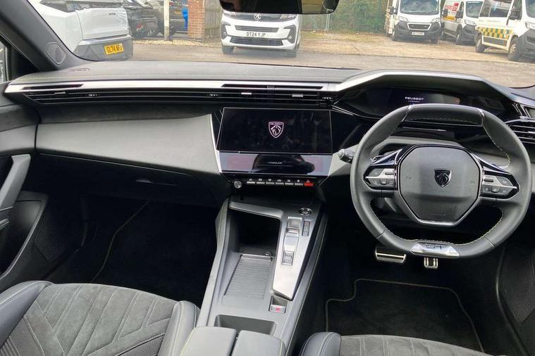 Bluetooth telephone facility, Compact drive selector, Driver attention warning, Emergency call service, Exterior temperature indicator with ice warning, Front and rear parking sensors, Intelligent speed adaptation, Lane keep assist, Mirror screen with wireless apple carplay and android auto, Multi driving mode selector - Eco / Normal / Sport mode selector, Multi function trip computer, Peugeot connect advanced with connected 3D navigation, PEUGEOT i-Cockpit - compact steering wheel, 10" HD colour touchscreen with configurable 3D headup instrument panel, PEUGEOT SOS and assistance, Service interval indicator, Speed limit recognition and recommendation, Sport pedals with foot rest, DAB Digital radio, Peugeot customisable iToggles, Voice recognition for radio, navigation and telephony features, 2 X LED rear number plate lights, Acoustic and tinted windscreen, Acoustic laminated front side windows, Automatic hazard light activation upon heavy brake application, Automatic triggered rear windscreen wiper in reverse gear, Body colour door handles, Body colour rear roof spoiler, Dark chrome chequered radiator grille, Dark tinted rear side and tailgate windows, Electric operated/heated door mirrors, Extended lower body sills to the front and side, Frameless electrochrome rear view mirror, Front and rear electric windows with one touch/anti pinch, Full LED matrix headlights with automatic adjustment, Gloss black finish B pillar, Gloss black rear cluster connecting strip, GT model designation badging on tailgate, High beam assist, LED 3rd brake light, LED side indicator lights integrated into door mirrors, Lion emblem badging on front wings, Model designation badges on front and rear, Nera black door mirrors, Peugeot aluminium door sills, Peugeot signature LED daytime running lights, Power folding door mirrors, Rear full LED 3D Peugeot new claw effect lights with sequential welcome sequence upon unlocking the vehicle, Rear lower bumper gloss black diffuser effect trim, Rear reversing lights, Rear side wing doors, Tailgate with heated rear windscreen and wiper blade, Twin exhaust pipes with chrome surround, 1/3 to 2/3 split folding rear seats, 12V socket, 2 front USB socket including 1 USB type c, 3 seat bench in 2nd row, 8 Colour personalisable ambient lighting, Automatic air conditioning with AQS 3, Carpet mats, Central front armrest with storage compartment, Dynamic front seats, Electric power steering with reach and rake adjustable steering column, Front central console with two cup holders, LED Glovebox light, Manual driving mode - change gear manually via steering mounted paddles, Multifunction full grain leather steering wheel with admite green stitching & GT badging, Piano keys gloss black plated toggle switches to access main functions of the vehicle, Roof lining - Mistral black, Seatbelt unfastened on the move audible and visual alert for front and rear seats, Single front passenger seat, Ski hatch with central rear armrest with cup holder, Sunvisor with concealable mirrors and LED lighting, Twin USB charging ports in the rear (Type C), Driver sport pack with sports power steering - 308, Visibility pack with automatic magic wash windscreen wipers - 308, 2x Isofix child seat fitting on outer rear seats, 3x Rear three-point retractable seatbelts with force limiters in the outer rear seats, ABS + EBD + EBA, Active safety brake with night function/cyclists/pedestrians, Adaptive driver and front passenger airbags with passenger airbag deactivation function, Automatic post collision braking, Child locks on rear doors, Driver/front passenger side airbags, Electronic parking brake, ESP, Front and rear curtain airbags, Front optimised safety headrests and rear retractable headrests (x3), height adjustable, Front three point retractable seatbelts with force limiters, Front/rear disc brakes, Hill start assist, Tyre pressure sensor, Automatic door locking when moving off, Deadlocking system, Electronic code immobiliser, Locking wheel nuts, PEUGEOT Open and Go keyless entry system, Thatcham cat. 1 alarm with anti lift sensor,
