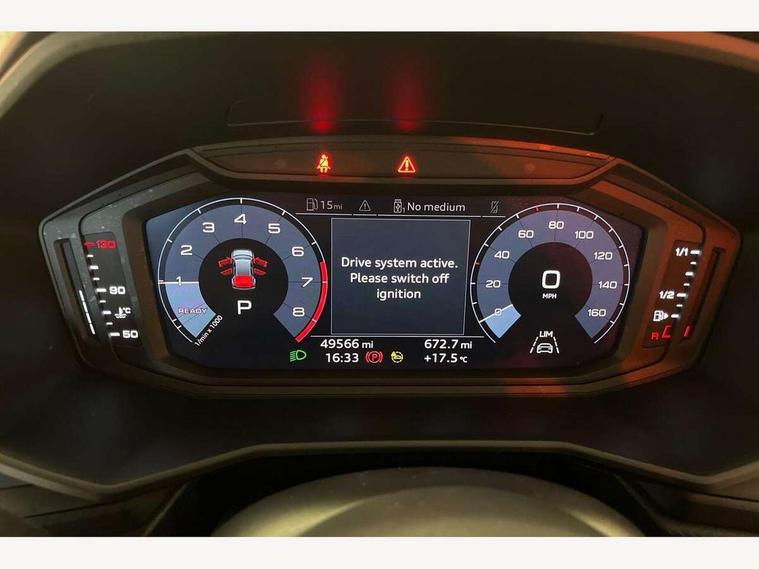 10.25" Digital instrument cluster display classis style instrument dials + speed, odometer, time, outside temperature, telephone menu + fuel level warning, Audi connect safety emergency and service including E-call, Audi smartphone interface with connect compatible smartphone via USB directly MMI display + Nav, music, third party apps controlled via MMI controller, Automatic start/stop system, Bluetooth interface, Driver's information system, Electromechanical power steering, Lane departure warning system, Service interval indicator, Speed limiter, Voice control system, Washer fluid level indicator, Dynamic suspension, 1 x SDXC card reader, 2 x USB type C connection points, 6 passive loudspeakers, DAB Digital radio, MMI radio plus with 8.8" colour MMI display screen and MMI touch, Auto dimming rear view mirror, Body coloured bumpers, Body coloured door mirrors, Electric front and rear windows, Electrically adjustable, heated, folding door mirrors with integrated LED side indicator, Front side air inlets with front spoiler lip and rear diffuser in matt black grained, Heat insulating glass windscreen and side windows, Heated rear windscreen, LED headlights with LED rear lights + dynamic rear indicators + headlight adjustment and high beam, turning light + LED daytime running lights, Radiator grille in matt black, Rain and light sensors, Rear fog lights, Rear wiper, 12V socket in centre console with two cup holders, 3 rear seats with headrests, 3 spoke leather multifunction plus steering wheel, 40:60 Split folding rear seat or folded fully, Air vents, door handle recesses and centre console in black, Delta cloth upholstery, Driver and passenger seat with manual height adjust with forward and backwards adjustment, Front head restraints, Front/rear floor mats, ISOFIX child seat mounting for front passenger and outer rear seats including top tether attachment point of outer rear seats, Leather gear knob with aluminium trim, Leatherette handbrake grip, Luggage compartment light with front and rear reading lights, Manual air conditioning, Titanium grey cloth headlining, Luggage compartment pack - A1, 3x3 point rear seatbelts, Audi pre-sense front with pedestrain and cyclist recognition, Brake assist function, Driver and front passenger airbag with front side and head airbags, Electronic Stability Control including ABS, EBD, ASR and EDL, Front and rear seatbelt reminder, Front passenger airbag deactivation switch, Hill hold assist, Seatbelt height adjustment for front seats, Seatbelt monitoring, Tyre pressure warning light, Warning triangle and first aid kit, Anti theft alarm, Anti theft wheel bolts and loose wheel warning, Immobiliser, Remote central locking with 2 foldaway keys, Black inlays polygon structure, 15" 5 arm design alloy wheels,
