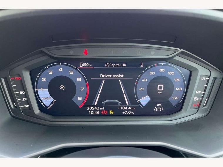 10.25" Digital instrument cluster display classis style instrument dials + speed, odometer, time, outside temperature, telephone menu + fuel level warning, Audi smartphone interface with connect compatible smartphone via USB directly MMI display + Nav, music, third party apps controlled via MMI controller, Automatic start/stop system, Bluetooth interface, Driver's information system, Electromechanical power steering, Emergency e-call, Emergency services call system, Lane departure warning system, Service interval indicator, Speed limiter, Voice control system, Washer fluid level indicator, Dynamic suspension, 1 x SDXC card reader, 2 x USB type C connection points, 6 passive loudspeakers, DAB Digital radio, MMI radio plus with 8.8" colour MMI display screen and MMI touch, Auto dimming rear view mirror, Body coloured bumpers, Body coloured door mirrors, Electric front and rear windows, Electrically adjustable, heated, folding door mirrors with integrated LED side indicator, Front side air inlets with front spoiler lip and rear diffuser in matt black grained, Heat insulating glass windscreen and side windows, Heated rear windscreen, High level LED brake light, LED headlights with LED rear lights + dynamic rear indicators + headlight adjustment and high beam, turning light + LED daytime running lights, Radiator grille in matt black, Rain and light sensors, Rear fog lights, Rear side wing doors, Rear wing door, Rear wiper, 12V socket in centre console with two cup holders, 3 rear seats with headrests, 3 seat bench in 2nd row, 3 spoke leather multifunction plus steering wheel, 40:60 Split folding rear seat or folded fully, Air vents, door handle recesses and centre console in black, Delta cloth upholstery, Driver and passenger seat with manual height adjust with forward and backwards adjustment, Front head restraints, Front passenger seat, Front/rear floor mats, Height and reach adjustable steering wheel, ISOFIX child seat mounting for front passenger and outer rear seats including top tether attachment point of outer rear seats, Leather gear knob with aluminium trim, Leatherette handbrake grip, Luggage compartment light with front and rear reading lights, Manual air conditioning, Titanium grey cloth headlining, Luggage compartment pack - A1, 3x3 point rear seatbelts, Audi pre-sense front with pedestrain and cyclist recognition, Brake assist function, Driver and front passenger airbag with front side and head airbags, Electronic Stability Control including ABS, EBD, ASR and EDL, Front passenger airbag deactivation switch, Hill hold assist, Manual rear child locks, Seatbelt height adjustment for front seats, Seatbelt monitoring, Tyre pressure warning light, Warning triangle and first aid kit, Anti theft alarm, Anti theft wheel bolts and loose wheel warning, Immobiliser, Remote central locking with 2 foldaway keys, Black inlays polygon structure, 15" 5 arm design alloy wheels,