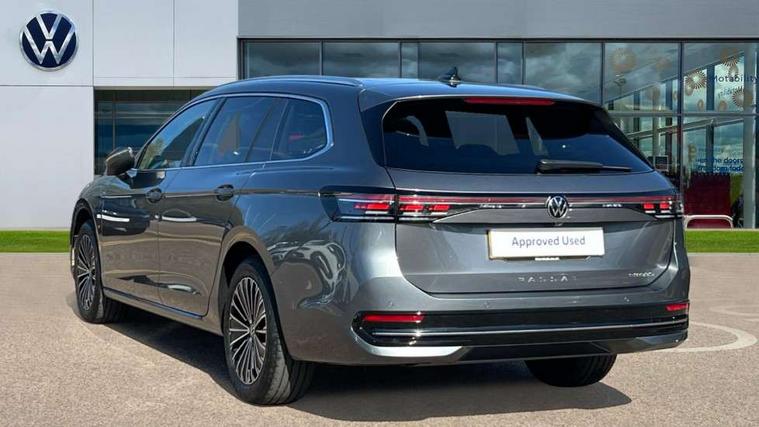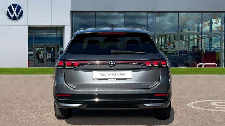 2 x Front USB-C ports, 2 x USB-C charging sockets on the centre console in the rear, charging capacity up to 45W, Adaptive cruise control, Advanced driver attention and drowsiness monitor, Chat GPT function for IDA voice assistant, Digital cockpit pro 10.25" high resolution, Discover media navigation system includes streaming and internet, Dynamic road sign display, E-Sim card for online connectivity, eCall emergency call service, Electronic engine sound, Full electric tailgate operation, Inductive smartphone charging without external antenna connection, Memory feature for park assist, Oncoming vehicle braking when turning including swerve support, Park assist pro with park distance control (Remote park assist), Predictive speed limiter, Preparation for We connect and We connect plus, Wireless app connect, Battery 340 A (58 Ah), Front wheel drive, Petrol Particulate Filter, 8 Speakers, Auto dimming interior rear view mirror, Automatic headlights, Body colour bumpers, Body colour door handles, Electric panoramic sunroof, tilting and sliding panoramic sunroof with rear panoramic sunroof, Heated windscreen washer jets, Laminated safety glass windshield, heat and sound insulating, LED third brake light, Rain sensor, Rear side wing doors, Rear wiper, Welcome light with surround lighting, 3 seat bench in 2nd row, 3 zone air care climatronic with rear air conditioning control panel, 30 colours options interior ambient lighting, Front + rear carpet mats, Front head restraints, Front sports comfort seats, Isofix child seat preparation, easy-fit (for two outer rear seats, and front passenger seat), compatible with I-size, Leather-wrapped, heated and multi-function steering wheel with shift paddles, Luggage compartment cover, power operated, Rear centre armrest, Single front passenger seat, Standard pedal cluster, Sun visors with illuminated vanity mirrors for driver and front passenger, Sunblind for rear side windows, Three rear head restraints, Unsplit rear seat bench, split folding backrest, Acoustics pack - Passat Estate, LED High matrix headlamps pack - Passat, 3x3 point rear seat belts, ABS (Anti locking brake system) includes BAS (Brake assist) and EBD (Electronic brake pressure distribution), Autonomous emergency braking front assist with pedestrian and cyclist monitoring, Disc brakes in front, Driver/Front Passenger airbags, Drivers knee airbag, Electronic parking brake with auto hold, ESC (Electronic stability control) + EDL (Electronic Differential lock) and ASR (Traction control), EDTC (Engine drag torque control), Extended safety system with proactive passenger protection system, Front passenger airbag deactivation switch, Hill hold function, Tyre pressure loss indicator, Warning triangle and first aid kit, Alarm with interior protection, Electronic engine immobiliser, Keyless locking and starting system keyless access with safelock, Aluminium decorative inserts, Tool kit for tyre mobility set, Trims for alloy wheels, Tyre mobility kit including compressor and sealing foam,