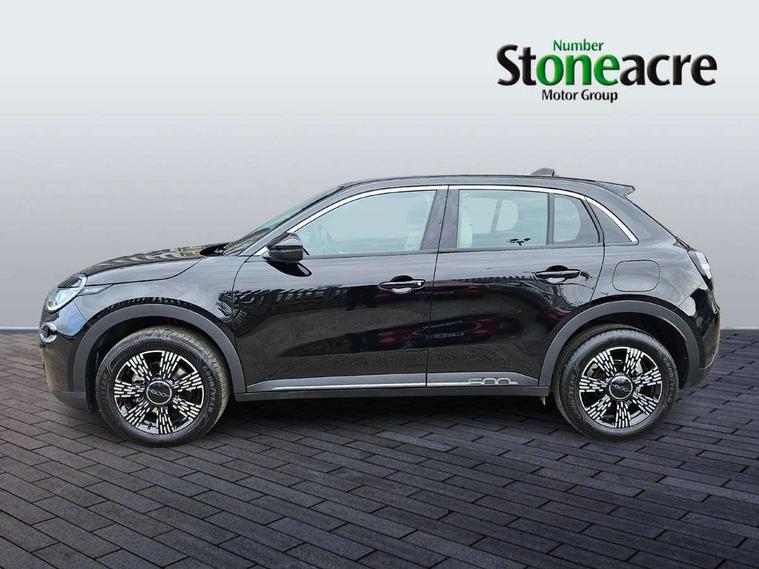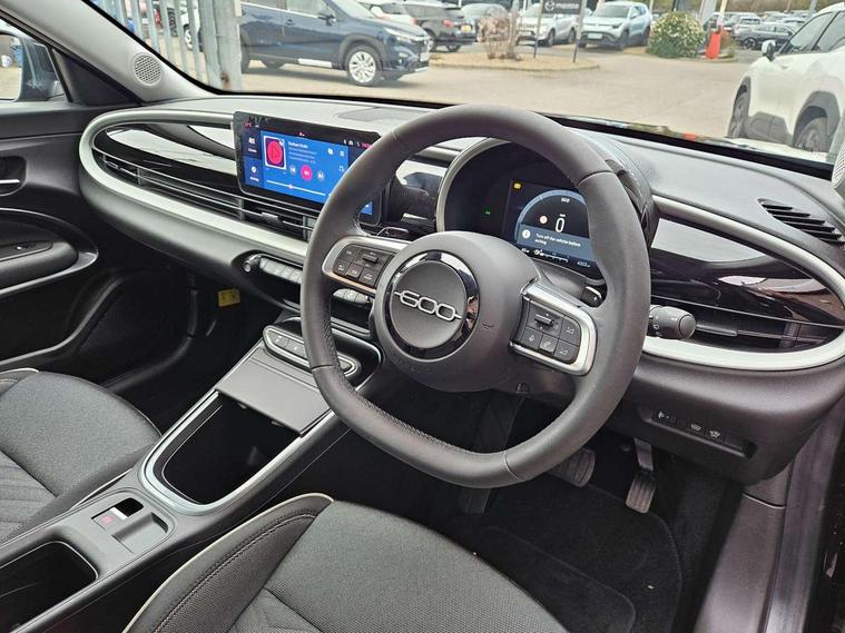 7" TFT digital cluster, Bluetooth connectivity, BSRF connectivity box, Connected services, Cruise control, Drowsy driver detection, Emergency E-call assist, Engine emission level default, GSR II step 1, Intelligent speed assist, Lane keeping assistant (LKA), Odometer, Power assist steering, Rain and dusk sensors, Rear parking sensors, Traffic sign recognition, Wireless apple car play/android Auto, Without drive mode selector, L2-AGM 12V battery, 1st Row USB type-A and USB type-C, 4 speaker audio system, Radio, Uconnect infotainment 10.25" touchscreen with DAB, All power windows express Up/Down, Auto dimming frameless rear view mirror, Automatic headlights, Body coloured door handles, Chrome day light openings, Electric adjustable door mirrors, Exterior chrome accents, Front and rear Chromed 600 logo, Gloss black finish B pillar, Gloss black shark fin antenna, Glossy black door mirrors, Heated windscreen wiper blade area, LED 3rd brake light, LED daytime running lights, LED Fog lamps with cornering function, LED front signature lighting, LED front turn indicators and position lights, LED rear lights, LED rear signature lighting, LED reflector headlamps, Matt black side skirts with 600 chromed logo, Rear bumper embossed 600 logo, Rear roof spoiler, Rear side wing doors, Rear wiper, 2 Spoke synthetic leather steering wheel with audio control, 3 rear headrests, 3 seat bench in 2nd row, 4 way manually adjustable passenger seat, 6 way manually adjustable drivers seat, Auxilliary 12V power socket, Body colour dashboard fascia, Chrome interior door handles, Dark metachrome dashboard ring, English handbook, Front centre armrest, Front headrests, Front passenger grab handle, Front seatback pockets, ISOFIX attachment on front passenger and rear passenger seats, Manual climate control, Metachrome central compartment bezel, Monogram fabric upholstery, Paddle shifts, Partial body cover for shipment, Predisposal for accessory upgrade to default tunnel pad cover (dedicated prnd bezel), Rear seat 40/60 split, Single front passenger seat, Smart 15L storage central tunnel with tunnel pad cover, Sunvisor label ciao Fiat, Sunvisors with vanity mirrors, 3x3 point rear seatbelts, 6 airbags, ABS, Autonomous Emergency Brake (AEB) & Vulnerable Road User (VRU) Protection, Child locks on rear doors, Electronic parking brake with auto hold, ESC (Electronic Stability Control), Front passenger airbag deactivation, Seatbelt reminder and pretensioners for all seats, Anti-theft volumetric alarm, Anti-theft wheel bolts, Keyless Go, 17" Diamond cut alloy wheels, Fix and go puncture repair kit,