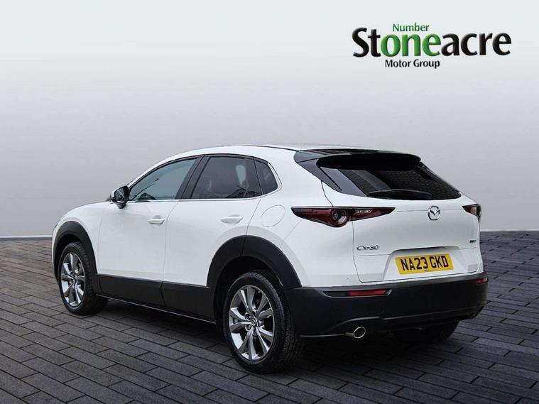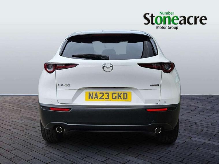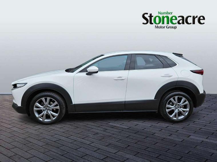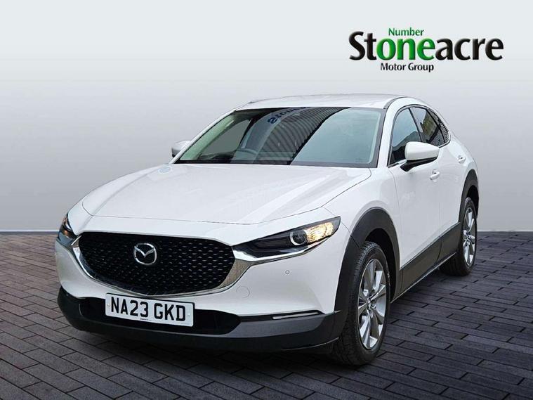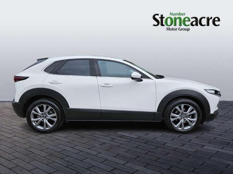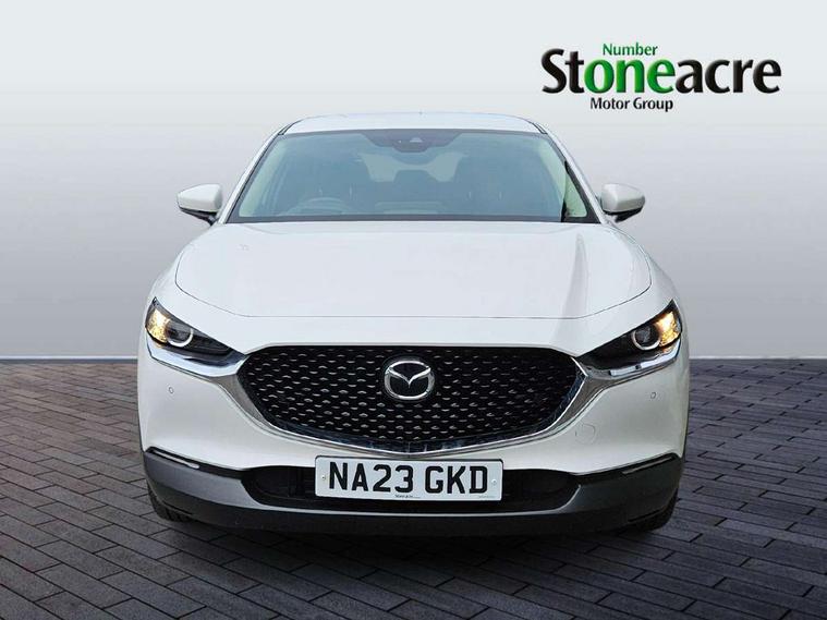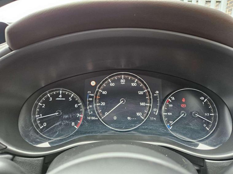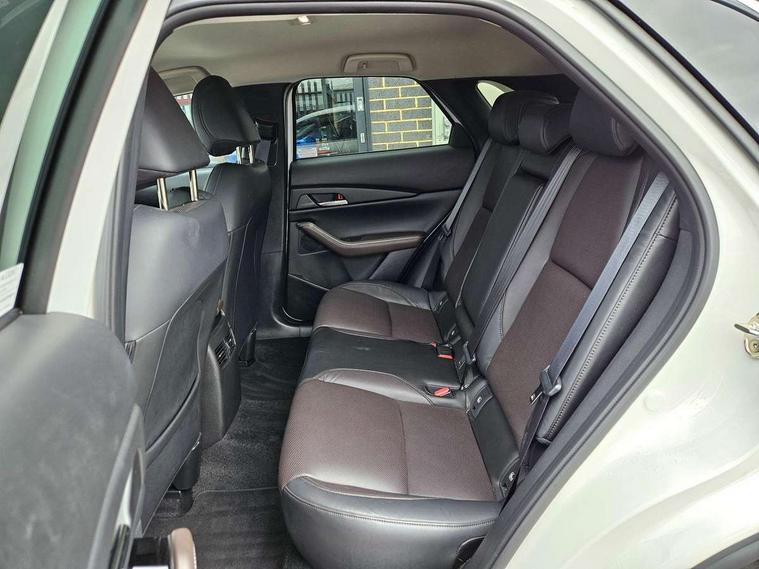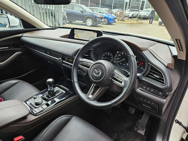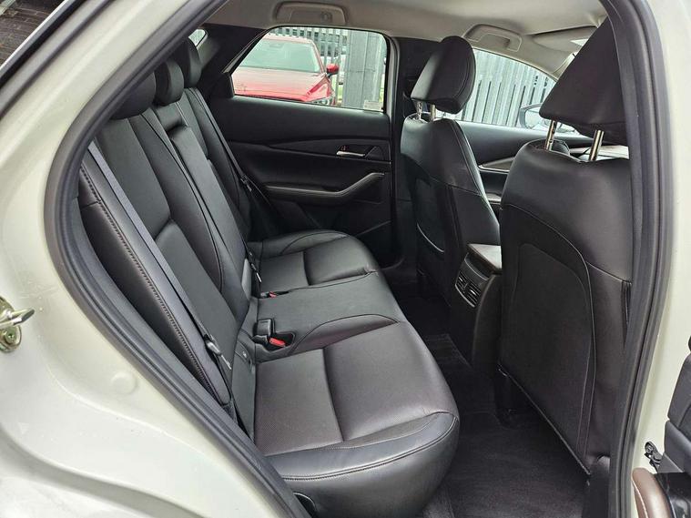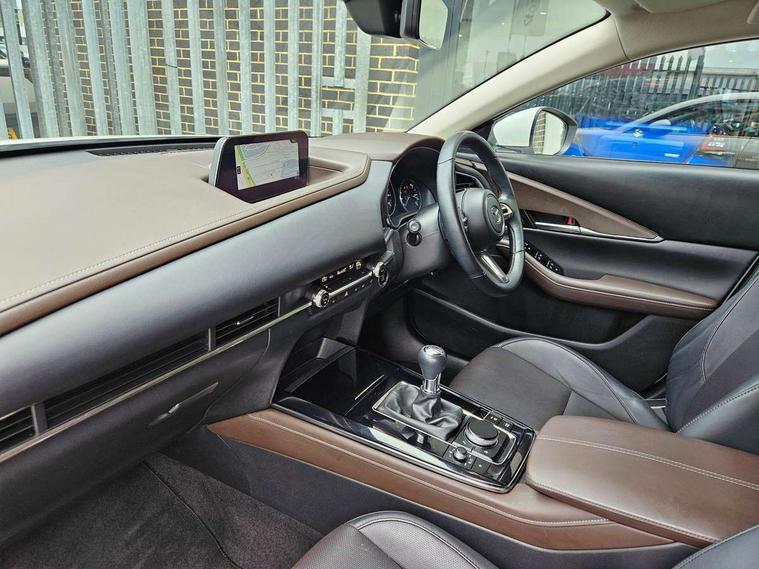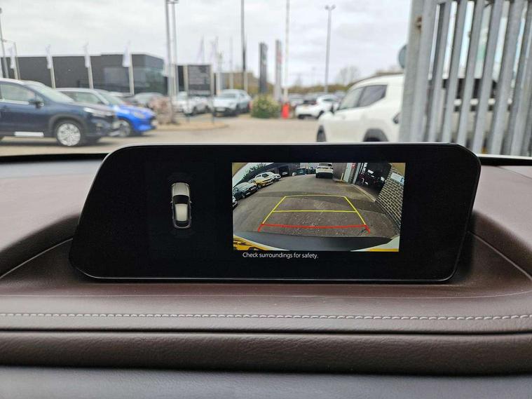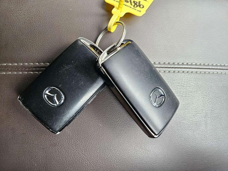7" TFT Colour driver instrument panel display, 8.8" Colour centre touch screen display with Mazda Connect infotainment, Adaptive cruise control (Mazda radar cruise control), Apple car play/Android Auto, Blind spot monitoring with rear cross traffic alert, Driver attention alert system, E-call with GPS, Emergency stop signalling system, Engine start/stop button, Front and rear parking sensors, Integrated bluetooth, Integrated Mazda navigation system, Intelligent speed assist, Lane keep assist system (LAS) with Lane departure warning system (LDWS), Mazda connected services, PAS, Power lift gate, Reversing camera, Service indicator, Tailgate, Traffic sign recognition, Trip computer, Windscreen projected colour active driving display (HUD), Cylinder Deactivation, i-stop, 2 USB charging ports in front inner central armrest, AM/FM and DAB radio, Bose surround sound system with 12 Speaker, Bose center point, Bass match and audio pilot technology, Multimedia Commander including separate volume dial, Steering wheel mounted audio/bluetooth controls, Auto dimming driver's door mirror, Auto headlight levelling, B-pillar and C-pillar garnishes in piano black finish, Body coloured, electrically adjustable, heated auto power folding door mirrors with integrated indicators, Chrome finish signature wing in front grille, Coming/leaving home lighting function, Door mirrors with adjustable memory and tilt-down function when reversing, Dual chrome exhaust, Dusk sensing headlights, Electric front/rear windows with one touch auto up/down, Frameless auto dimming interior rear view mirror, Front kodo turn signal, Gloss black front grille, Gloss black rear roof spoiler, High beam assist, LED Headlights, LED signature daytime running lights, Privacy glass (rear side windows and rear screen), Rain sensing front wipers with adjustable speed and intermittent wipe, Rear fog lights, Rear side wing doors, Rear wiper, Signature LED rear combination lights, Third brake light, 12V power outlet in centre console, 3 seat bench in 2nd row, 60/40 split fold down rear seats, Chrome horn pad ring, Chrome interior trim accents with steering wheel centre bezel, surround of engine start / stop button and glove box handle, Dashboard, door cards and front centre armrest in rich brown leather, Driver and front passenger visors with covered vanity mirror and driver ticket holder, Driver's seat, power tilt, slide, recline, height and lumbar adjustment, Driver, front passenger and two rear door storage, Driver, Front passenger and two rear grab handles with coathooks, Dual zone climate control air conditioning with rear air vents, Folding rear centre armrest with two cup holders, Front and rear (x3) head restraints, Front and rear LED lighting, Front armrest, Front centre storage with two cupholders with lid, Front passenger seatback pockets, Front passengers seat manual slide, recline and height adjustment, Gear shift indicator, Glovebox illumination, Heated front seats with 3 stage setting, Heated steering wheel, ISOFIX child seat anchorage points attached on outer rear seats, Leather upholstery with interior accents, Leather wrapped gear shift knob, Leather wrapped steering wheel with telescopic and tilt adjustment, LED luggage compartment lighting, Light roof headlining and pillars, Rear armrest inner material in cloth, Roof mounted sunglasses holder, Single front passenger seat, 3 point ELR front seat belts x2 with pretensioners, 3 point ELR rear seat belts, Anti-lock braking system (ABS), Drivers knee airbag, DSC - Dynamic Stability Control, Electronic parking brake with auto disengage function and auto hold function, Front and rear curtain airbags, Front dual stage driver and single stage front passenger airbags, Front passenger airbag cut-off switch, Front side airbags, Front smart city brake support, G-Vectoring control plus, Hill launch assist, Manual child lock in rear doors, Mild Hybrid system with regenerative braking, Seatbelt reminder for driver/front passenger and rear seats, Traction control system (TCS), Tyre pressure monitoring system (TPMS), Remote central locking with deadlocking and automatic door lock when driving, Smart keyless entry, Thatcham accredited alarm and immobiliser, Dark vinyl door panel inserts, 18" Silver alloy wheels, Emergency tyre repair kit,