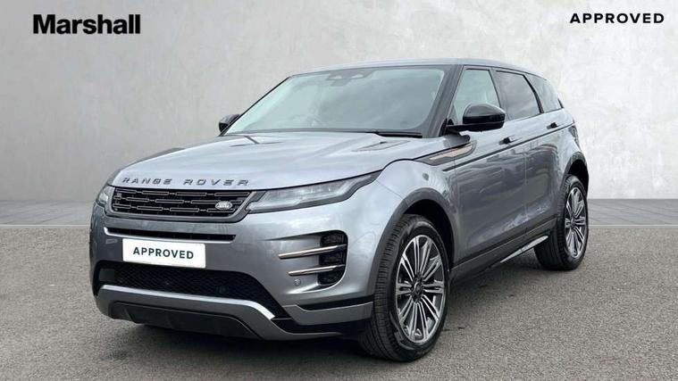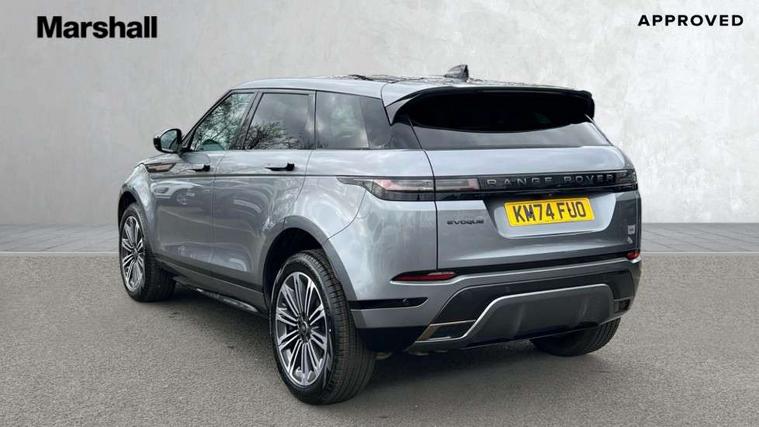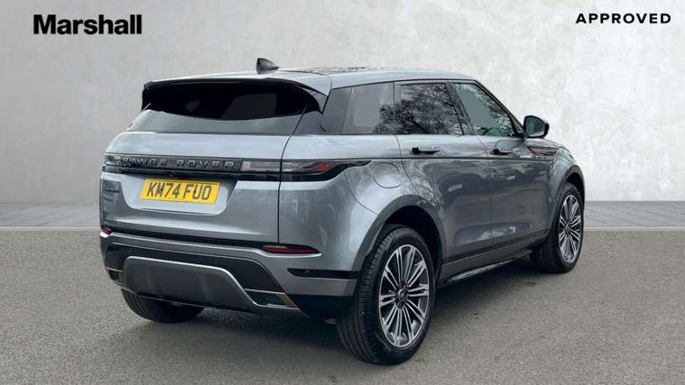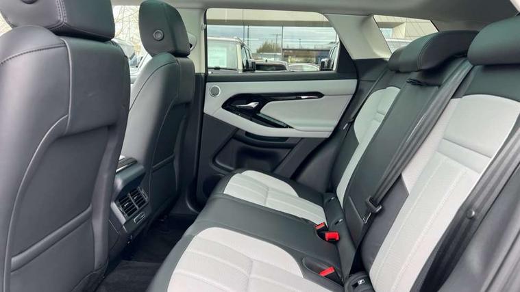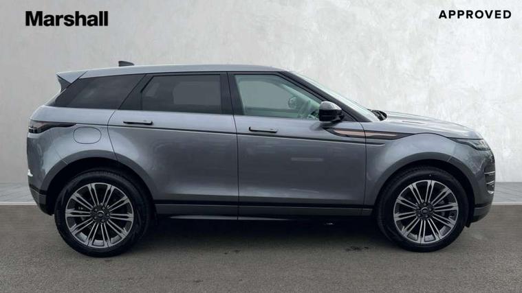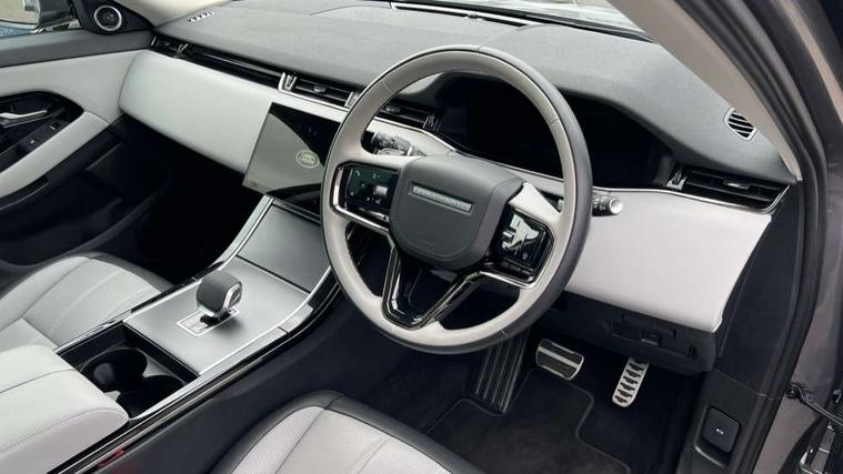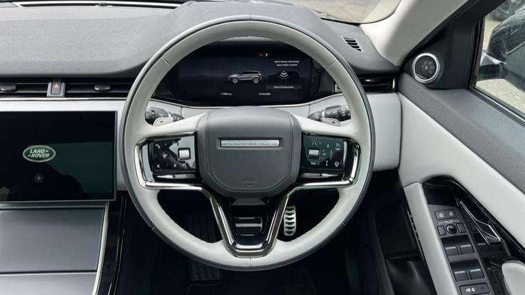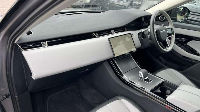 11.4" touch screen, Adaptive cruise control, Android Auto, Apple car play, Blind spot assist, Bluetooth connectivity, Brake pad wear indicator warning light, Driver condition monitor, eCall emergency system, Eco mode, Electronic power assisted steering (EPAS), Front and rear parking aid, InControl remote, Interactive driver display, Land Rover InControl apps, Lane keep assist, Pivi pro connected includes diamond pivi variant, smart settings, connected navigation pro, nuance speech licence, Powered tailgate/boot lid, Rear collision monitor, Rear traffic monitor, Traffic sign recognition with adaptive speed limiter, Voice control system, Wireless device charging, All terrain progress control, Diesel exhaust fluid (DEF) large tank, Efficient Driveline, Large fuel tank, Passive suspension, Terrain Response 2, Digital Audio Broadcast radio-DAB, Steering wheel mounted controls, Acoustic laminated windscreen, Auto headlights, Automatic headlight levelling, Electric windows with one touch open/close and anti trap, Flush deployable exterior door handles, Front and rear recovery eyes, Heated rear window with timer, Heated washer jets, Heated windscreen, Pixel LED headlights with signature DRL and LED tail Lights, Power fold, auto-dimming, heated door mirrors with approach lights and auto dimming driver side, Rain sensing windscreen wipers, Rear animated directional indicators, Rear fog lights, Rear side wing doors, Rear wiper, Side repeater indicators in mirror, Tailgate spoiler, Third brake light, Winter wiper park position, 14 way driver memory electric front seats with 2 way manual headrests + 4 way lumbar support, bolsters, 40:20:40 split folding rear seats with centre headrest and armrest, Ambient interior lighting, Bright metal pedals, Carpet mats, Chrome tread plates with range rover branding Includes stainless steel loadspace scuff plate with etched graphic, Customer configurable single point entry, Electrically adjustable steering column with memory function and easy entry/exit, Front and rear cupholders, Heated steering wheel, Isofix system on outer rear seats, Overhead lighting console, Overhead stowage for sunglasses, Passive front head restraints, Rear air vents, Rear head restraints, Satin chrome gearshift paddles, Single passenger seat, Sunvisors with illuminated vanity mirrors, Twin sliding front centre armrest, Online pack with data plan - Evoque, Power socket pack 2 - Evoque, 3 rear 3 point seatbelts, Anti-lock braking system (ABS), Brake hold function, Customer configurable autolock, DSC - Dynamic Stability Control, Electronic brake force distribution, Electronic parking brake, Electronic traction control, Emergency braking, Front and rear seatbelt reminder, Hill descent control, Hill launch assist, Low traction launch, Occupant protection assist, Passenger seat occupant detector, Power operated child locks, Roll stability control, Six airbags - Driver and passenger airbags/driver knee airbag/front side airbag and curtain airbags, Torque vectoring brake, Tyre pressure monitoring system, Alarm, Immobiliser, Intrusion sensor, Keyless entry, Locking wheel nuts,