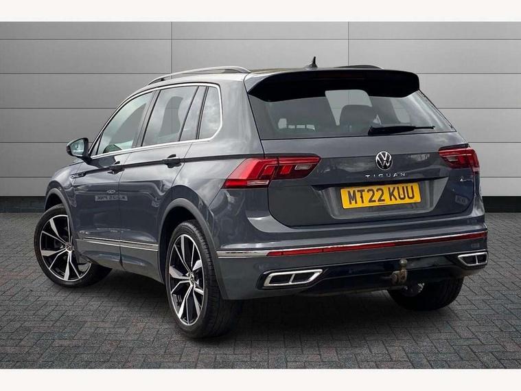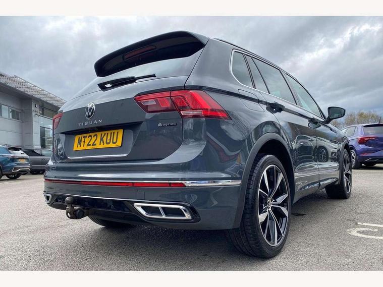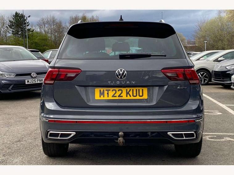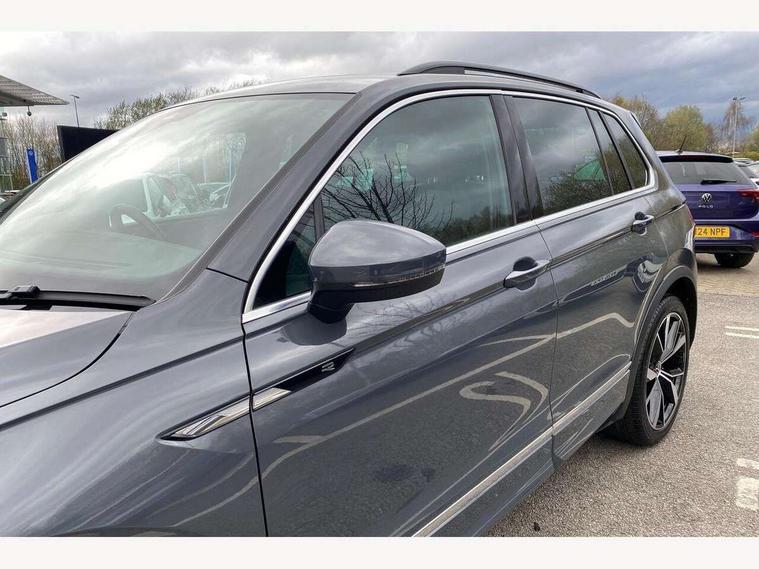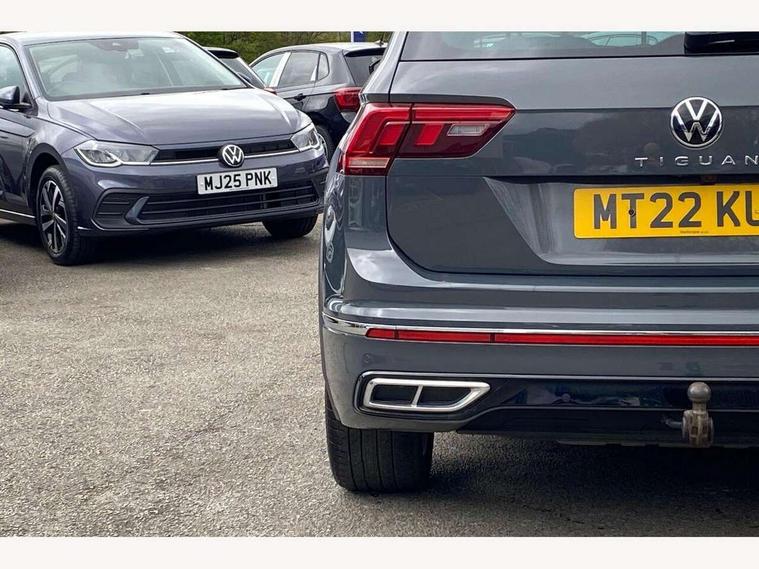 Adaptive cruise control ACC stop and go including speed limiter, App-Connect incl. App-Connect Wireless for Apple CarPlay and Android Auto, Bluetooth phone integration system, Distance control assist, Driver alert system, Driver profile selection, Dynamic road sign display, eCall emergency call system, Electromechanical speed sensitive power steering, Engine start/stop button, Lane keeping system Lane Assist, Lights on warning, Multifunction front facing camera, Outside temperature display, Premium multifunction display with multi colour display, Remote control boot opening, Rev counter, Revision / skills operating concept travel assistant, Service interval indicator, Speed limit display, Start/stop system with regenerative braking, Trip computer, Warning sound and light for doors and tailgate open, All wheel drive - 4Motion, Battery regeneration during braking, XDS electronic differential lock for improved traction and handling, 4 X 20 watt output, 8 Speakers, Diversity antenna for FM reception, Radio, SD card slot, Simultaneous pairing of 2 compatible mobile devices, SMS functionality - read, compose and send SMS messages using touch-screen display, Title and cover art display, Auto dimming interior rear view mirror, Automatic headlight control system, Body colour door handles, Body coloured bumpers in R Line style, Body coloured door mirrors with integrated indicators, Chrome moldings on the side windows, Coming/leaving home lighting function, Dynamic headlight range control, Front and rear electric windows, Heated rear window, High level 3rd brake light, Laminated safety glass windshield, heat and sound insulating, LED headlamps with LED separate daytime running light and dynamic cornering light, LED rear combination lamps, LED rear number plate lights, License plate carrier in front and rear, Poor weather light and cornering light, Privacy glass for rear side windows and rear window, R Line body kit, R Line side sills, Rain sensor windscreen wipers, Rear exhaust tailpipe, Rear fog lamp, Rear side wing doors, Rear spoiler in R style, Rear windscreen washer and wiper with interval delay, Side and rear windows in heat insulating glass, Trailer Stability Programme, Unique R Line badging, Windscreen wipers/ intermittent wipe + 4 position delay, 12V outlet in center console rear and in luggage compartment, 12V outlet in front and tray, 2 cup holders in front, 2 LED front reading lights, 2 LED rear reading lights, 3 bench rear seats in 2nd row, 3 rear headrests, 4 load lashing points, 40:20:40 split folding rear seats, Air Care Climatronic 3 zone automatic climate control with enhanced air filter and controls in the rear, Backrest release for left front seat, Black headlining, Brushed stainless steel pedals and footrest, Carpet mats in front and rear with decorative stitching in Gray, Climate control unit rear with touch function, Door and side trim panel in foam film, insert in leatherette, Front centre armrest, Front footwell illumination, Front seats head restraints (x-adjustment), Height adjustable front seats, Height/reach adjust steering wheel, Instrument lighting white adjustable panel illumination, Interior light with delay, Isofix Preparation 2 Rear child seats, Leather gear knob, Lockable cooled glovebox, Luggage compartment lighting, Luggage net, Rear bench seat asymetrically split folding, longitudinally movable and folding with load-through hatch and center armrest, Remote unlocking for rear seat backrest, Removable luggage cover, Removable rear headrests, Safety optimised front head restraints, Single front passenger seat, Sliding/reclining rear seats, Standard rear seat release, Storage compartment in driver's door, Storage compartment in passenger's door, Storage compartment in rear doors, Storage compartments in luggage area left and right, Storage tray on dashboard, Sun visors with illuminated vanity mirrors, Top front comfort seats, Variable boot floor, height adjustable and removable, Driver assistance pack plus - Tiguan DSG, 3 point seat belt for centre rear seats, 3 point seat belts with seat belt pretensioners for the outer rear seats, Active bonnet, Curtain airbags for front and rear passengers, Driver/Front Passenger airbags, Drivers knee airbag, Electronic parking brake with auto hold, Electronic Stability Control with driver steering recommendation, ABS, ASR, EDL, EDTC and trailer stabilization, Front assist with autonomous emergency braking (for Adaptive Cruise Control ACC up to 130 mph), Front disc brakes, Front passenger airbag deactivation, Front side airbags, Height adjustable front 3 point seatbelts + pretensioners, Hill hold control, Manual child proof rear door locks, Pedestrian monitoring system, Power assisted brakes, Proactive passenger protection system in combination with front assist, Rear disc brakes, Rigid safety cell with front and rear crumple zones, Two tone horn, Warning sound and light for front seat belts if unfastened, Anti theft alarm system with interior monitoring, backup horn and towing protection, Anti theft wheel bolts, Electronic engine immobiliser, 20" Misano black with diamond turned surface alloy wheels with Airstop tyres, Tool kit,