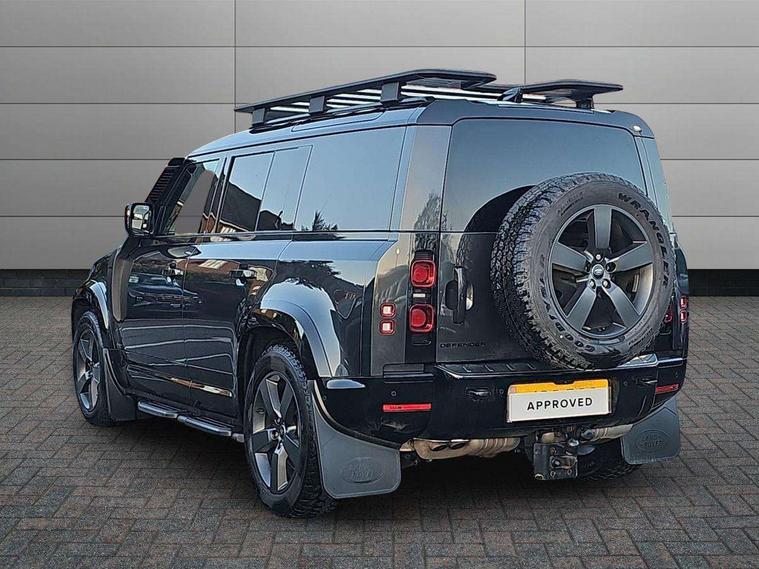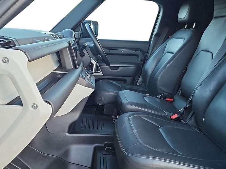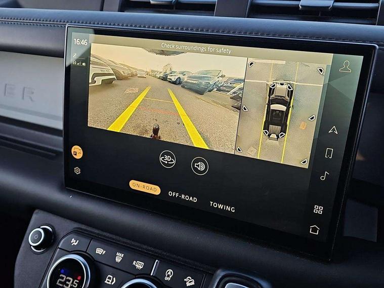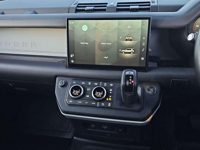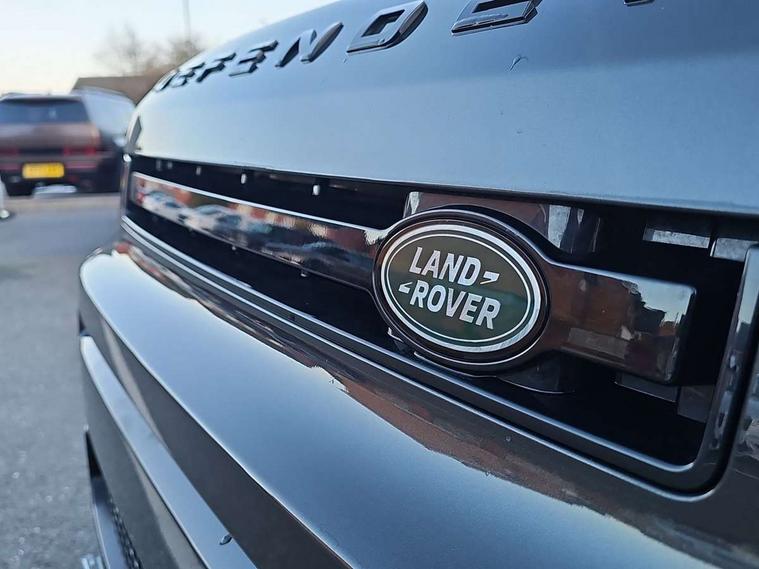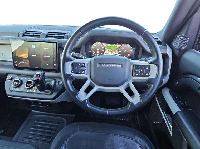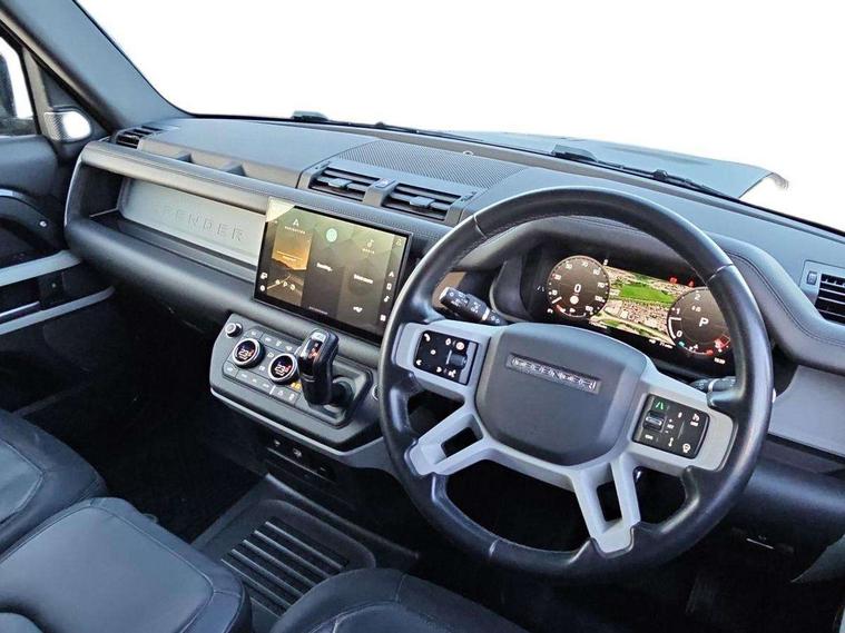 Customer Configurable Autolock, 11.4" touchscreen, 360 parking aid, 3D Surround Camera with 360 View, 180 Rear View, Front Traffic Detection, Forward Vehicle Guidance, Tow Hitch Assist and clear sight Ground View, Adaptive cruise control, Blind spot assist, Brake Hold, Driver condition monitor, Electric power assisted steering (EPAS), Lane keep assist, Low traction launch, Pivi pro connected, Rear collision monitor, Rear traffic monitor, Traffic sign recognition adaptive speed limiter, Trip computer, Tyre pressure monitor, Wade Sensing, Android Auto, Apple CarPlay, DAB Radio (Digital Audio Broadcasting), Meridian 280W sound audio system with 7 speakers with subwoofer, Alpine lights, Assisted tailgate, Auto High Beam Assist, Automatic headlight levelling, Automatic headlights and rain sensitive front wipers, Body coloured exterior Utility Panel, Centre high mounted stop light, ClearSight interior rear view mirror, Electric heated/power fold door mirrors with approach lights and auto dimming driver side, Electric windows with one touch open/close and anti-trap, Follow me home lighting, Front fog lights, Heated rear window with timer, Heated windscreen, LED tail light, Privacy glass, Puddle lights, Rear fog lights, Rear wash wiper, Side-hinged tailgate, Standard roof, X-Dynamic Badge, X-Dynamic Treadplate, 14 way heated and cooled electric adjustable memory front seats with 4 way manual headrests, Additional lashing points, Black exposed rear recovery eyes, Dual zone climate control, Durable rubber cabin flooring, Electric adjustable steering column, Footwell lights, Front jump seat and folding front centre armrest, Front passenger seat ISOFIX points, Full height bulkhead behind row 1 seats, Glovebox storage, High sided rubber mats, Loadspace cover, Loadspace hooks, Loadspace rubber mat, Lockable and illuminated underfloor storage compartment (x1 under boot floor and x1 accessible via rear doors), Overhead stowage for sunglasses, Premium cabin lighting, Rear centre headrest, Rear reading light, Signature graphic, Standard seating configuration, Sunvisors with illuminated vanity mirrors, Twin front cupholders with cover, Upgraded loadspace LED lighting, Online pack - Defender with data plan, Brake pad wear indicator, Electronic traction control, Emergency braking, Front airbags, with passenger seat occupant detector, Power operated child locks, Remote for (e-Call, Optimised assistance call, InControl app, Climate, beep and flash and door), Seat belt reminder, Intrusion sensor, Keyless entry system, Locking wheel nuts, 8 speed automatic transmission, ABS and EBA, All wheel drive, CBC - (Cornering brake control), Dynamic stability control, Electronic brake force distribution, Electronic park brake, Gradient acceleration control, Hill Descent Control, Hill start assist, Particulate filter (DPF), Push button start, Roll stability control, Trailer stability assist, Twin speed transfer box (high/low range), Extended leather upgrade,