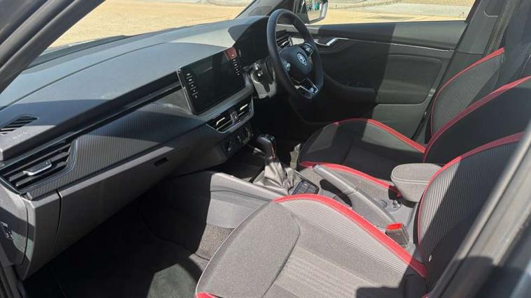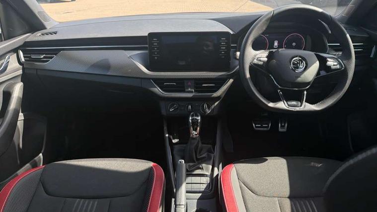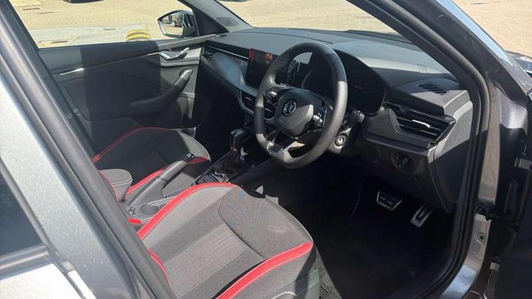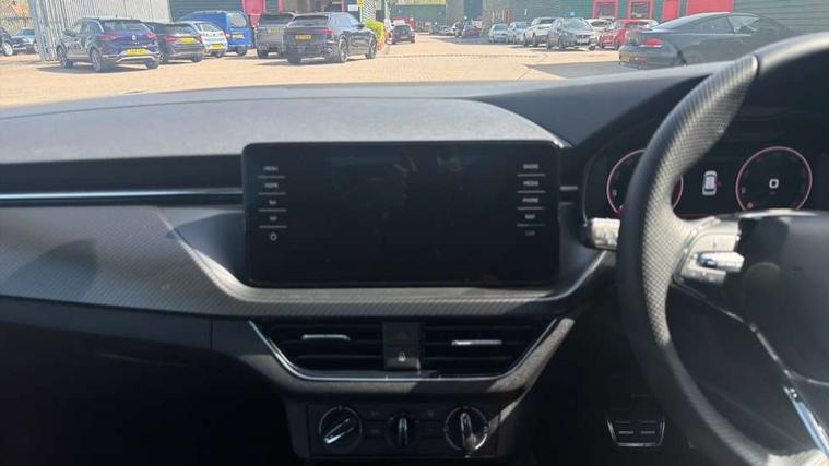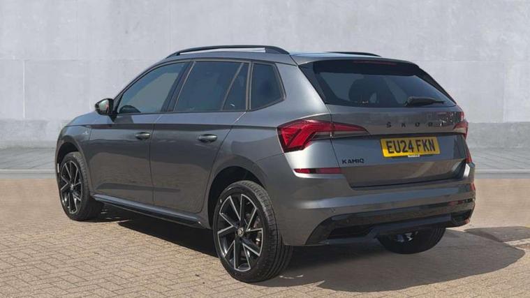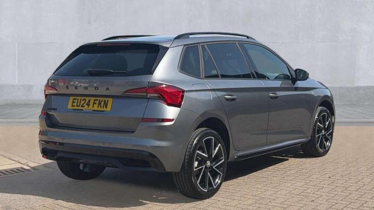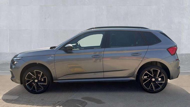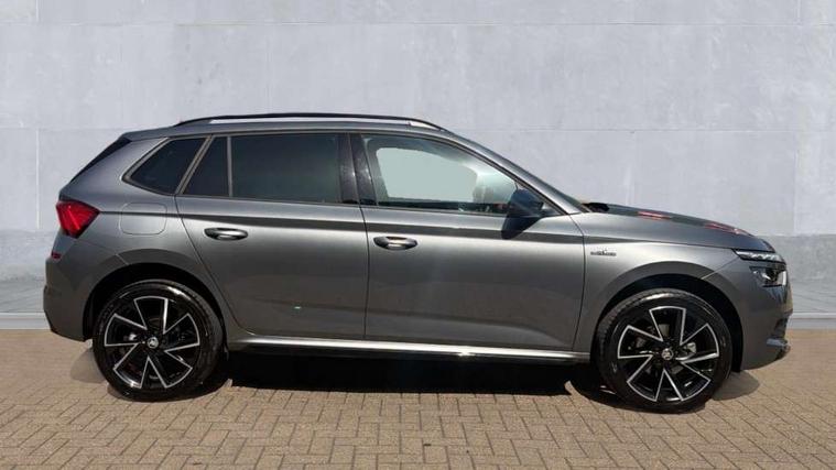 Amundsen satellite navigation with 9.2" glass colour touchscreen display, web radio, voice control and traffic sign recognition, Bluetooth system, E-call, Front assist system, Gesture control, PAS, Service indicator, Speed limiter, Wireless Smartlink for Apple CarPlay (wired for Android Auto), 8 Speakers, Auxiliary input socket, DAB Digital radio, Black door mirrors, Black radiator grille, Black rear diffuser, Body colour bumpers, Body colour door handles, Body colour roof spoiler, Boot lettering in black, Chrome grille surround, Dimming rear view mirror with black surround, Electrically adjustable and heated door mirrors, Fixed panoramic sunroof with black roof rails, Front and rear electric windows, Front sport bumper, Full LED headlights with adaptive front light system, cornering function, fog lights and dynamic indicators, Headlight range control, Heated rear window, High functionality rear led lights with dynamic indicators, KAMIQ Door sills, LED daytime running lights, LED third brake light, Light sensors, Monte carlo plaque, Privacy glass, Rain sensor, Rear fog lights, Rear side wing doors, Rear wiper, 12V Accessory socket in centre console, 3 seat bench in 2nd row, Aluminium pedals, Black ceiling for black/beige interior, Black roof lining, Chrome inner door handles, Cloth upholstery, Front head restraints, Glove compartment with illumination, Ice scraper, Isofix child seat fittings on outer rear seats, ISOFIX on front passenger seat, Leather gear lever, Manual lumbar support for front seats, Rake/reach adjustable steering wheel, Reading lights, Single front passenger seat, Sports seats, Sun visors with illumination on front passenger, Textile floor mats, Third rear headrest, Top tether for front passenger seat, Umbrella in driver's door, 3x3 point rear seatbelts, Airbags - driver and front passenger, ESP, Front passenger airbag deactivation switch, Front side airbags with curtain airbags, Hill hold control, Manual parking brake, Manual rear child locks, One tone horn, Rear disc brakes, Seatbelt reminder for driver an co-driver, Traction control, Tyre pressure monitor, Anti-theft alarm system with interior monitoring, backup horn, towing protection and remote central locking with SAFE system, Anti-theft wheel bolts, Electronic engine immobilizer, Chrome air vent surrounds, 18" Vega alloy wheels in black,