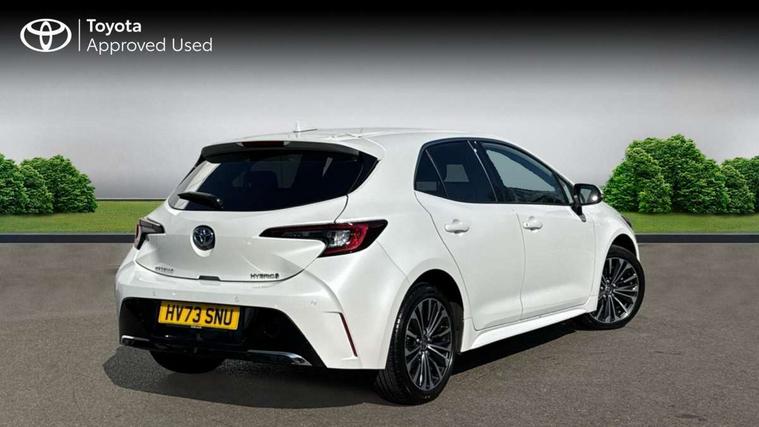 10.5" Multimedia display screen, Attention assist, Bluetooth telephone connectivity, Connected car functionality upgrade, tracker, remote status and e-care, Drive mode select (Eco, Normal), E-call, Electrically assisted power steering, EV drive indicator, Front and rear parking sensors with auto brake, Full Digital 12.3" TFT Digital Combimeter, Key reminder warning, Lane Departure Alert (LDA) switch on steering wheel, Memory on adjustable speed limiter, MyT connected services, Proactive driving assist (PDA), Reversing camera, Smartphone integration with Apple CarPlay and wired android auto, Tailgate, Toyota remote services, Toyota smart connect navigation, Wireless charger, Gasoline particulate filter, Vehicle Stability Control (VSC), 6 speakers, AM/FM radio, DAB Digital radio, Front USB-C in dashboard, Smart voice assist/ Voice recognition, USB and Aux in connectors + 12V front outlet, Anti-jam protection on power windows, Auto up and down function on all power windows, Automatic folding mirrors, Automatic headlights with high beam assist, Black centre and side air vents, Black metallic meshed front grille, Black toyota logo in front, Body coloured bumpers, Body coloured door mirrors, Body coloured front spoiler, Body coloured outside door handles, COROLLA alloy door scuff plates, Electrochromatic mirror, Follow me home headlights, LED daytime running lights, LED dual beam projector headlights, LED front fog lights, LED High mounted stop light, LED multi reflector in headlights, LED rear combi lights with LED lightguide, Manual headlight levelling system, New grille pattern, Noise reduction layer on windscreen, Piano black diffuser, Power adjustable heated door mirrors, Power front windows, Power rear windows, Privacy glass with UV filter, Rain sensing wipers, Rear bumper decoration with chrome plated inserts, Rear side wing doors, Rear under guard with chrome ornament, Rear window defogger, Rear window wiper, Reverse tilting door mirrors, Roof spoiler, Satin chrome insert on front air vents, Satin chrome insert on front door assist grips, Shark fin antenna, Tailgate release with push button, Time adjustment on intermittent wiper, Turning signal integrated indicators in door mirrors, Unique lower skirt, Unique side rocker with black insert, UV-filter on driver and passenger windows, 2 Shopping bag hooks in luggage compartment, 3 rear headrests, 3 seat bench in 2nd row, 3 spoke leather steering wheel with satin insert + gear knob, 4 tie down hooks in luggage compartment, 60/40 split folding rear seat, Adaptive cruise control (ACC) switch on steering wheel, Adjustable speed limiter switch on steering wheel, Audio, multimedia and telephone switches on steering wheel, Black armrest on centre console box, Black gear shift console, Boot light, Centre room light, Driver and front passenger personal light, Driver and passenger assist grip, Driver and passenger sun visor with mirror and light, Dual zone automatic air conditioning with ECO mode switch, Fabric/synthetic leather upholstery, Front and rear cup and bottle holders, Front door pockets, Front head restraints, Front passenger seat, Front sliding synthetic leather armrest, Heated seats, Illuminated entry system in room lamp, ISOFIX seat fixing (2 fixings on rear outer seats), Leather gear shift with satin chrome on gear shift console, Manual height adjustable for driver and front passenger seat, Manually tilt with sliding driver and front passenger seat, Parcel shelf, Passenger seat back pocket, Pollen filter, Power adjustable lumbar support on driver seat, Power window switches with satin chrome inserts, Rear armrest with 2 cupholders, Rear passenger coat hooks (2), Remote air conditioning, Satin chrome inside door handles, Satin chrome surround on heater control panel, Satin chrome surround on speedometer, Sliding armrest on centre console box, Slow opening glovebox with lights, Textile floor mats, Tilt/telescopic steering column, Voice recognition switch on steering wheel, Whiplash Injury Lessening (WIL) feature (active headrest) for seats, White ambient lighting on open tray and front cup holder, Toyota safety sense 3 pack - Corolla, 3x3 point rear seatbelts, Adjustable driver and front passenger seat belt extender to top anchor point, Anti lock braking system + Electronic brake force distribution, Brake assist function, Child locks on rear doors, Downhill Assist Control (DAC), Electronic parking brake, Emergency brake light signal (EBS), Front passenger airbag on/off switch, Front seatbelt reminder, HAC - Hill start assist control, Rear seat belt reminder, Seatbelt pretensioners and force limiters, Supplemental restraint system (SRS) 7 airbags - dual driver, dual side curtain, side impact and driver knee airbags, Traction control, Tyre pressure warning system, Acoustic vehicle alert system (AVAS), Alarm with motion sensor and immobilizer, Power passenger window lock, Remote central locking + deadlocks, Satin chrome dash trim, Soft touch texture on upper dashboard, Stitching on lower dashboard, 17" Black machined face 5 double spoke alloy wheels, Tyre repair kit, Unique wheel finish with red wheel cap,